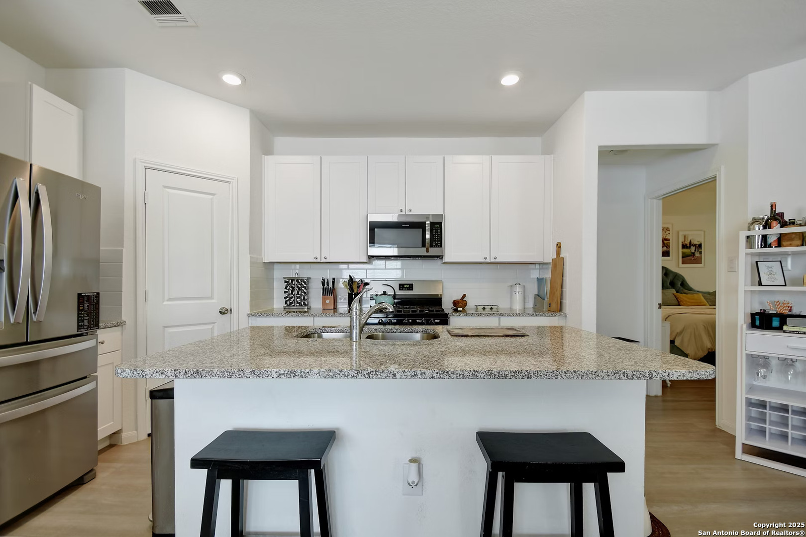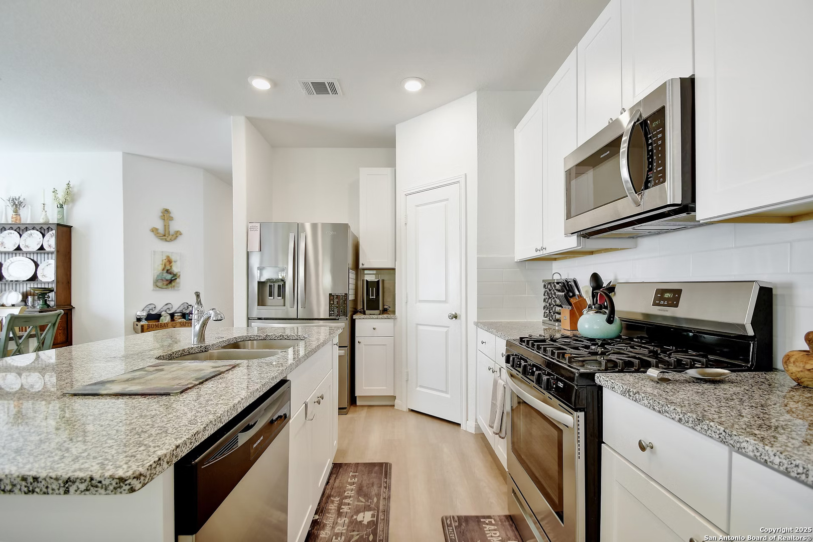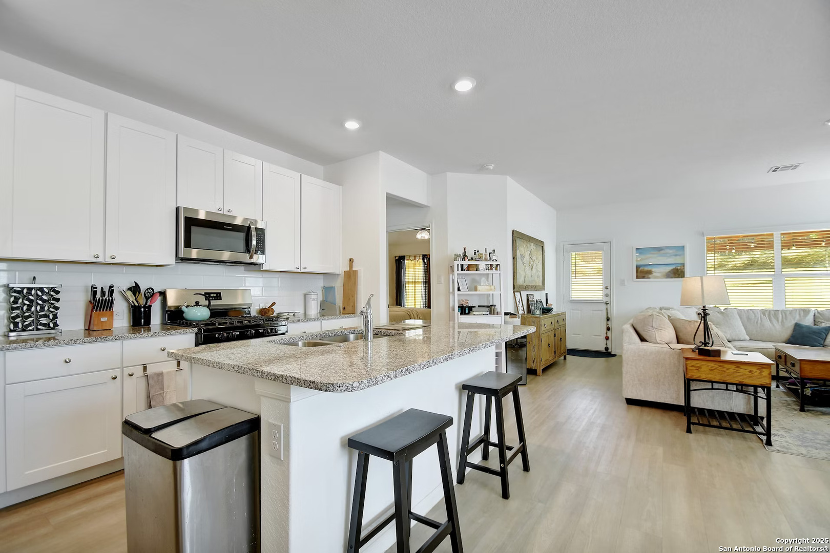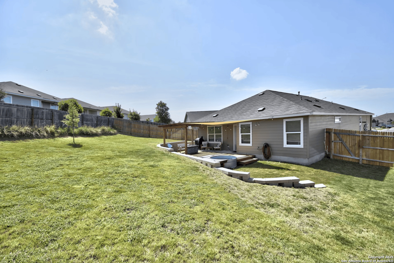 Welcome to this beautiful, move-in ready home in the sought-after Knox Ridge community! Built in 2021, this 3-bedroom, 2-bathroom home offers a smart and spacious single-story layout with modern finishes throughout. Step into an open-concept living space filled with natural light, featuring a spacious family room, a dedicated dining area, and a stylish island kitchen with granite countertops, stainless steel appliances, and ample cabinet space-perfect for hosting and everyday living. The primary suite offers a peaceful retreat with a large walk-in closet and a private ensuite bathroom that includes dual vanities and a walk-in shower. Two additional bedrooms are well-sized and share a full bathroom-ideal for family, guests, or a home office setup. Additional highlights include: Covered patio for outdoor enjoyment. Private, fenced backyard. In-home laundry room. Two-car garage. Energy-efficient construction. Smart home technology. Enjoy access to community amenities such as a park and playground. Conveniently located near Loop 1604, I-10, and Randolph AFB, this home offers quick access to shopping, dining, and schools-just a short drive from downtown San Antonio. Don't miss this incredible opportunity to own a well-maintained home in a growing neighborhood. Schedule your showing today!