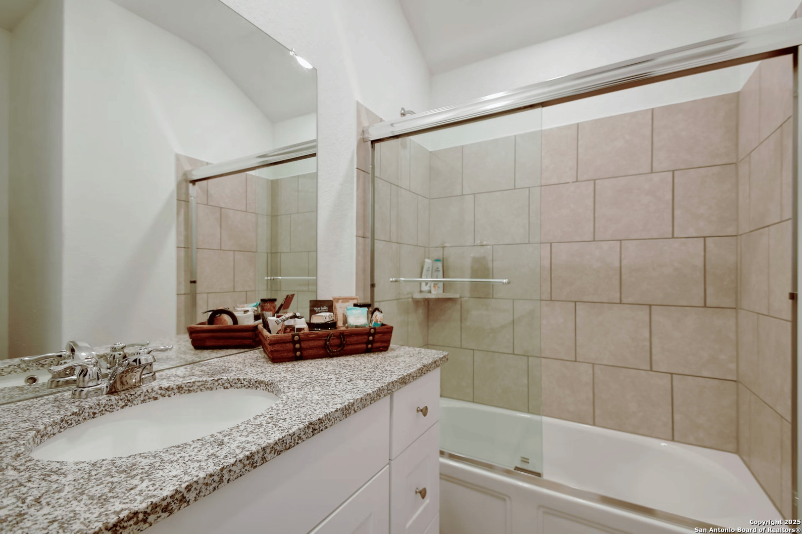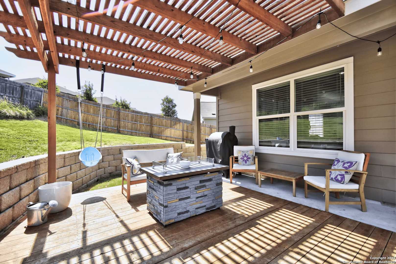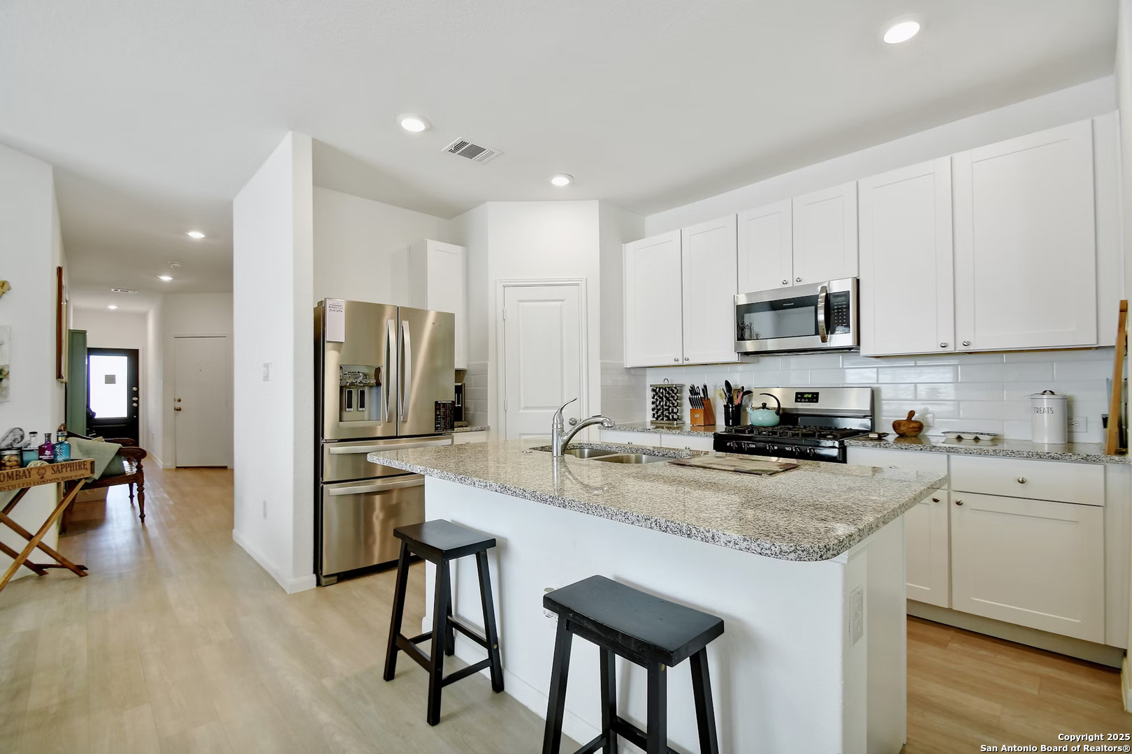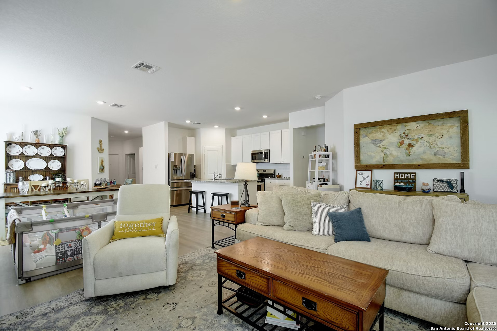 Welcome to this beautiful, move-in ready home in the sought-after Knox Ridge community! Built in 2021, this 3-bedroom, 2-bathroom home offers a smart and spacious single-story layout with modern finishes throughout. Step into an open-concept living space filled with natural light, featuring a spacious family room, a dedicated dining area, and a stylish island kitchen with granite countertops, stainless steel appliances, and ample cabinet space-perfect for hosting and everyday living. The primary suite offers a peaceful retreat with a large walk-in closet and a private ensuite bathroom that includes dual vanities and a walk-in shower. Two additional bedrooms are well-sized and share a full bathroom-ideal for family, guests, or a home office setup. Additional highlights include: Covered patio for outdoor enjoyment. Private, fenced backyard. In-home laundry room. Two-car garage. Energy-efficient construction. Smart home technology. Enjoy access to community amenities such as a park and playground. Conveniently located near Loop 1604, I-10, and Randolph AFB, this home offers quick access to shopping, dining, and schools-just a short drive from downtown San Antonio. Don't miss this incredible opportunity to own a well-maintained home in a growing neighborhood. Schedule your showing today!