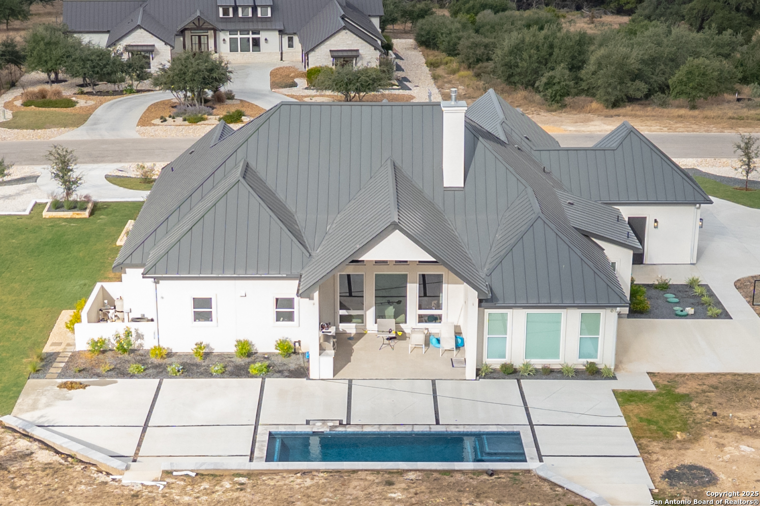 Discover the Hill Country's Hidden Jewel - a stunning, custom-built 3-bedroom, 3.5-bath estate, spanning 3,572 square feet of comfortable luxury living, on a 1.26-acre lot in the prestigious Copper Ridge community. This home's secret? The upgrades! Every inch of this residence radiates sophistication - from the soaring ceilings to the rich oak wood floors that flow effortlessly throughout. The chef-inspired kitchen is a true showpiece, showcasing granite countertops, gas cooking, and a spacious island designed for gatherings and entertainment. Just off the kitchen, a wet bar adds a refined touch for hosting. The open-concept living area is bathed in natural light, creating an inviting yet elegant atmosphere. The primary suite serves as a private sanctuary, complete with a spa-like ensuite featuring a massive walk-in shower and heated floors for year-round comfort. The flex space adds versatility-perfect for a home office, gym, or guest room. Step outside to your private resort-style retreat, featuring a sleek modern pool and a fully equipped outdoor kitchen, ideal for entertaining and relaxation. The three-car garage offers generous room for vehicles and storage. Located behind controlled-access gates, Copper Ridge offers a host of community amenities that complement this home's luxurious lifestyle. Blending elegance, comfort, and craftsmanship, this exceptional property delivers refined Hill Country living at its finest.