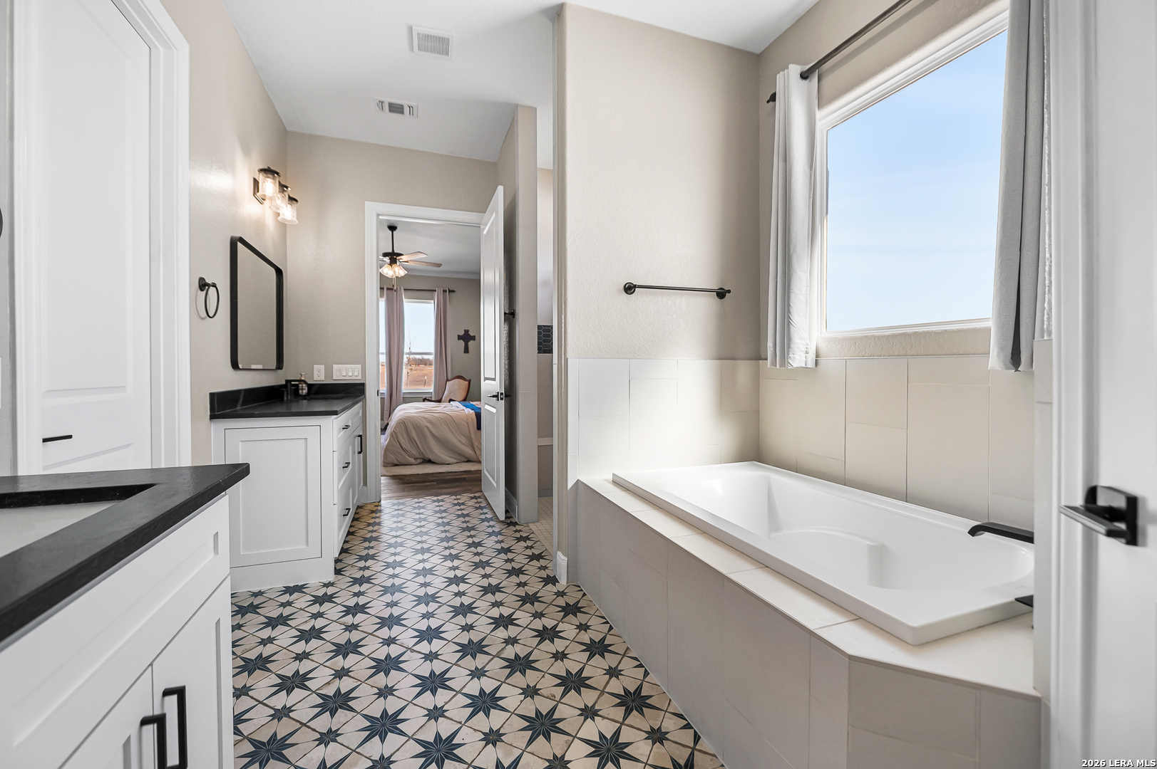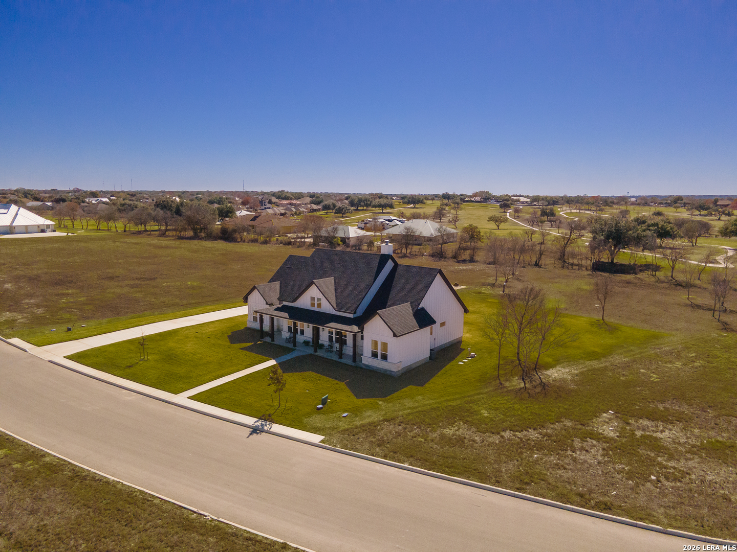 Your dream come true! 2783 sq. ft., full masonry (stucco/rock), farmhouse style home at the 18th tee box of the neighboring Alsatian Golf Course. Located on a 1.16-acre lot in the gated community of Boehme Ranch, this home features 4 bedrooms, 3 full baths, open floor plan, custom features throughout, and great living space inside and out. This beautiful home has leathered granite counters in the kitchen and baths, oversized kitchen island, custom cabinets, wood beams in the living and dining rooms, as well as decorative tile in the kitchen and baths. Guest bedroom has an en suite private bath, and secondary bedrooms are joined by a Jack and Jill bathroom. The beauty of this home is enhanced by high ceilings and lots of natural light. Sitting on the back patio offers seclusion and serenity as it overlooks the large backyard and golf course greenbelt. The Boehme Ranch community has golf cart/walking access to the Clubhouse and Juliana's Restaurant and is located only minutes west of downtown Castroville.