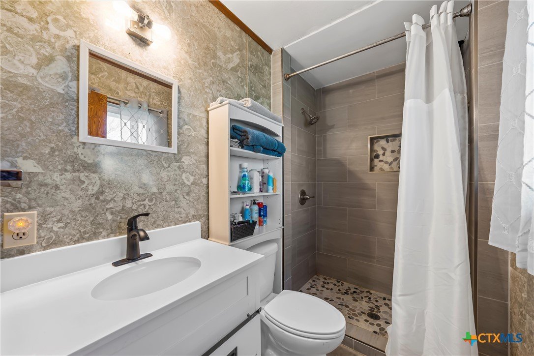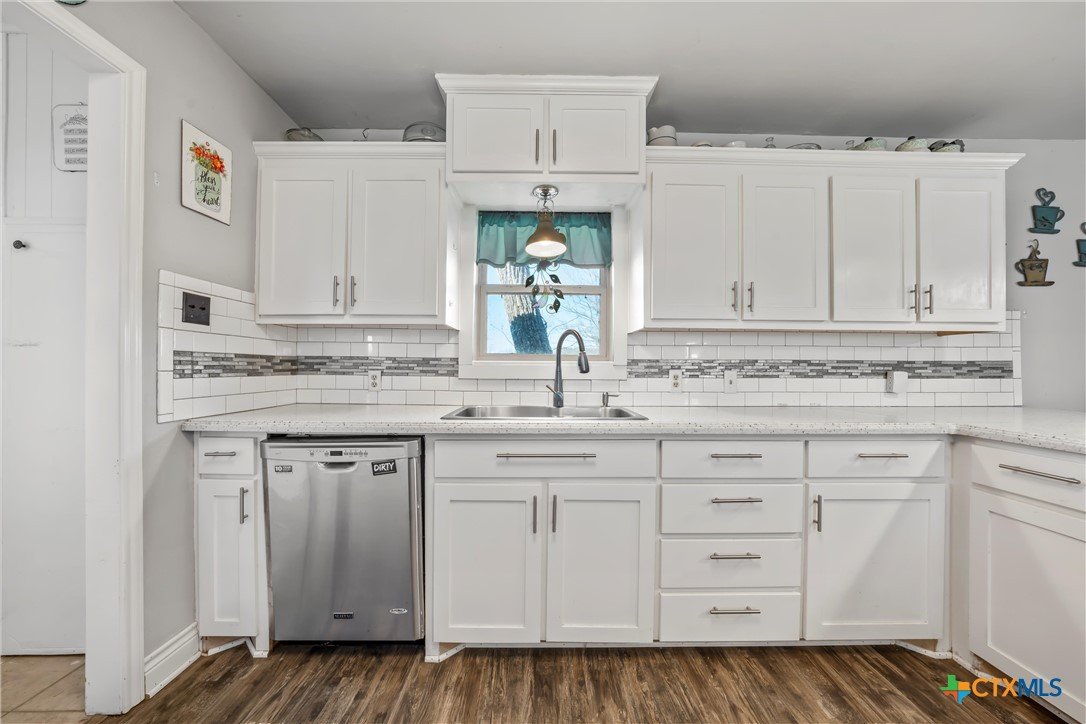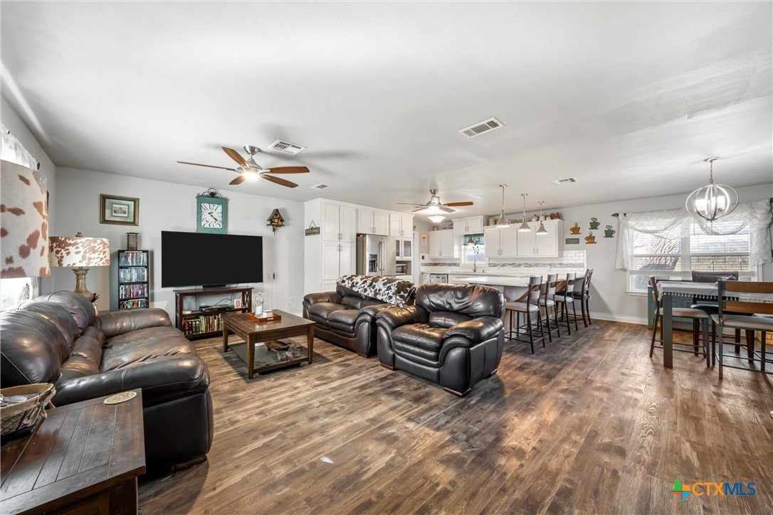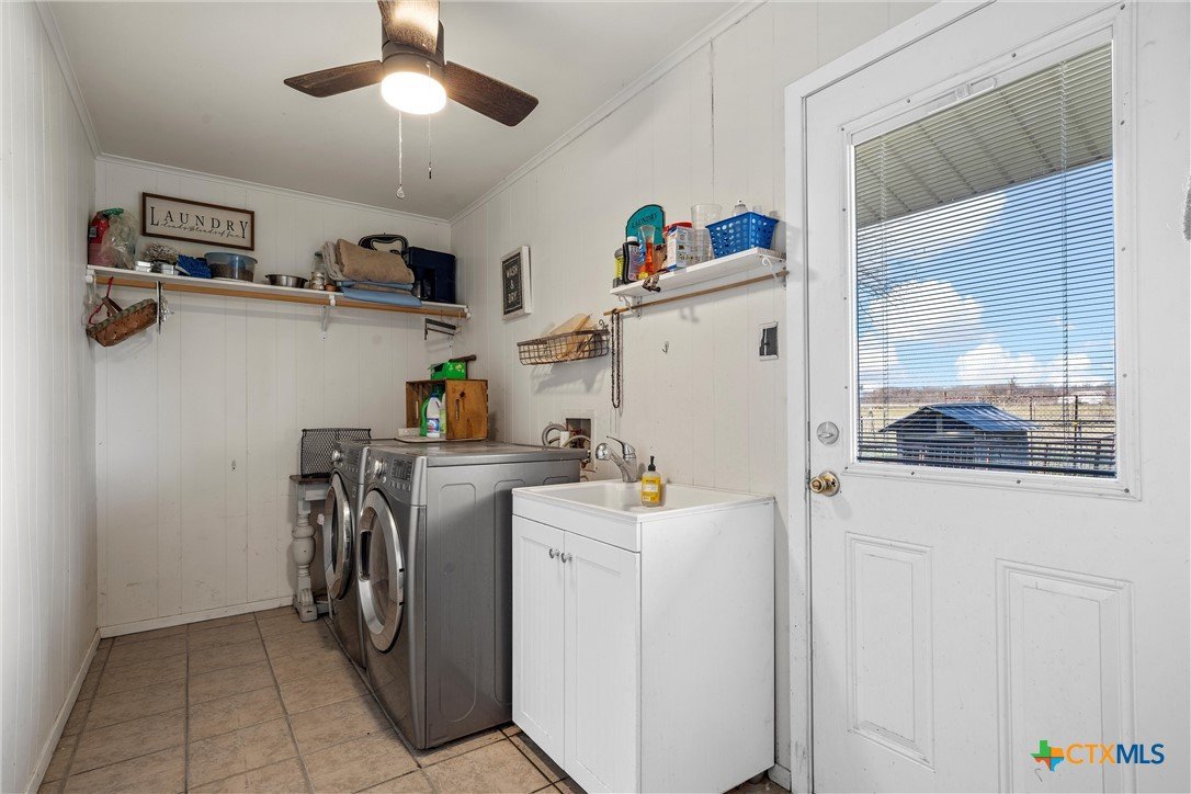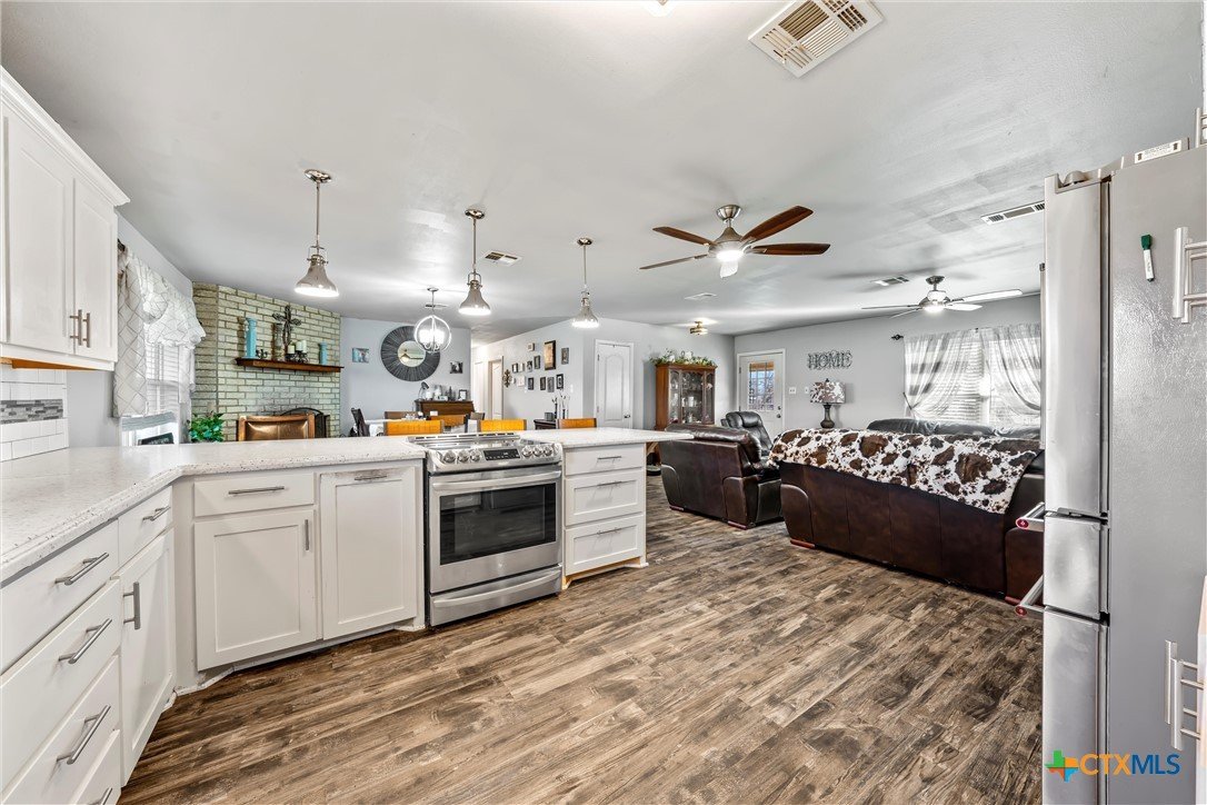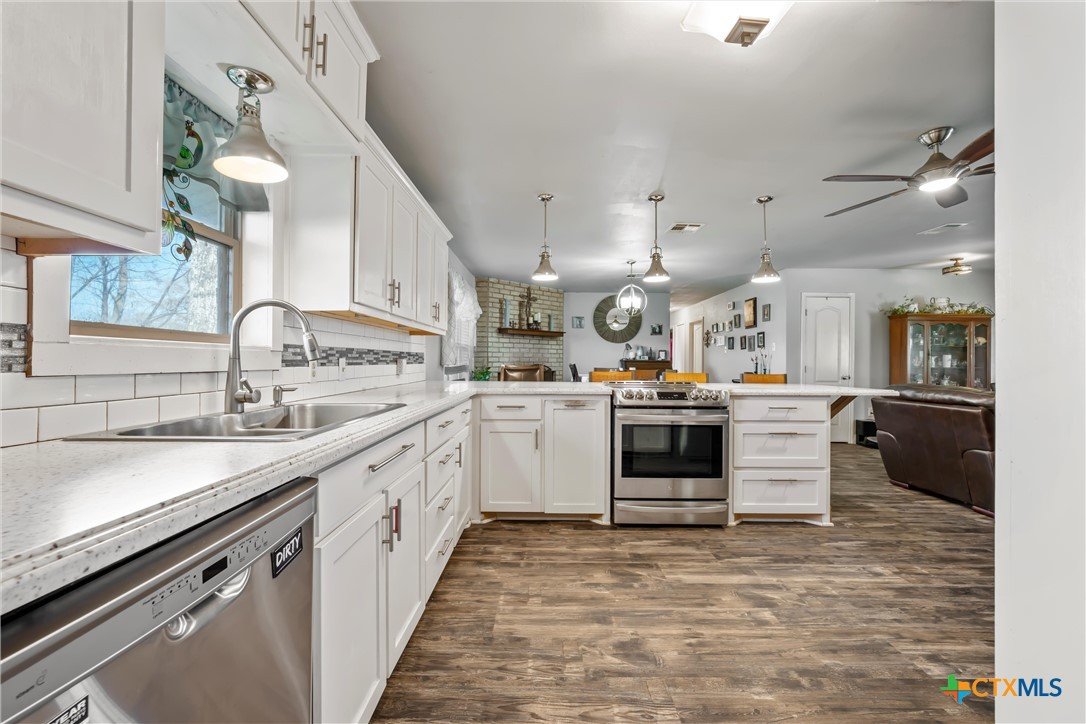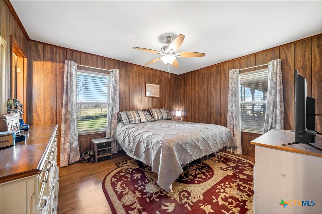 Discover the perfect blend of country charm and modern updates in this three-bedroom, two-bathroom brick home on approximately 7 acres of land in Chilton. This property offers a large barn, stock tank, and full fencing—ideal for those seeking tranquility and a connection to nature. Step into an open-concept living space where the living room, kitchen, and dining area flow seamlessly together, providing an inviting atmosphere for both relaxation and entertaining. The focal point of the living area is a striking corner wood-burning fireplace, offering warmth and character to the home. The kitchen is a true standout with its custom-built wood cabinetry, updated features, and durable vinyl laminate flooring that extends throughout the house for a cohesive and stylish look. The primary suite features a newly installed walk-in tile shower, adding a touch of luxury to your daily routine. Updated windows coupled with foam insulation ensure energy efficiency and comfort all year round, making this home as practical as it is beautiful. The home's exterior is a classic brick facade paired with a durable metal roof, providing both visual appeal and longevity. For outdoor enthusiasts, the property includes a spacious gazebo and a versatile greenhouse, perfect for gardening or simply enjoying the great outdoors. The expansive barn enhances the property's functionality, whether you're managing livestock or need extra storage space. This unique property in Chilton is more than just a home; it's an opportunity to embrace a lifestyle.