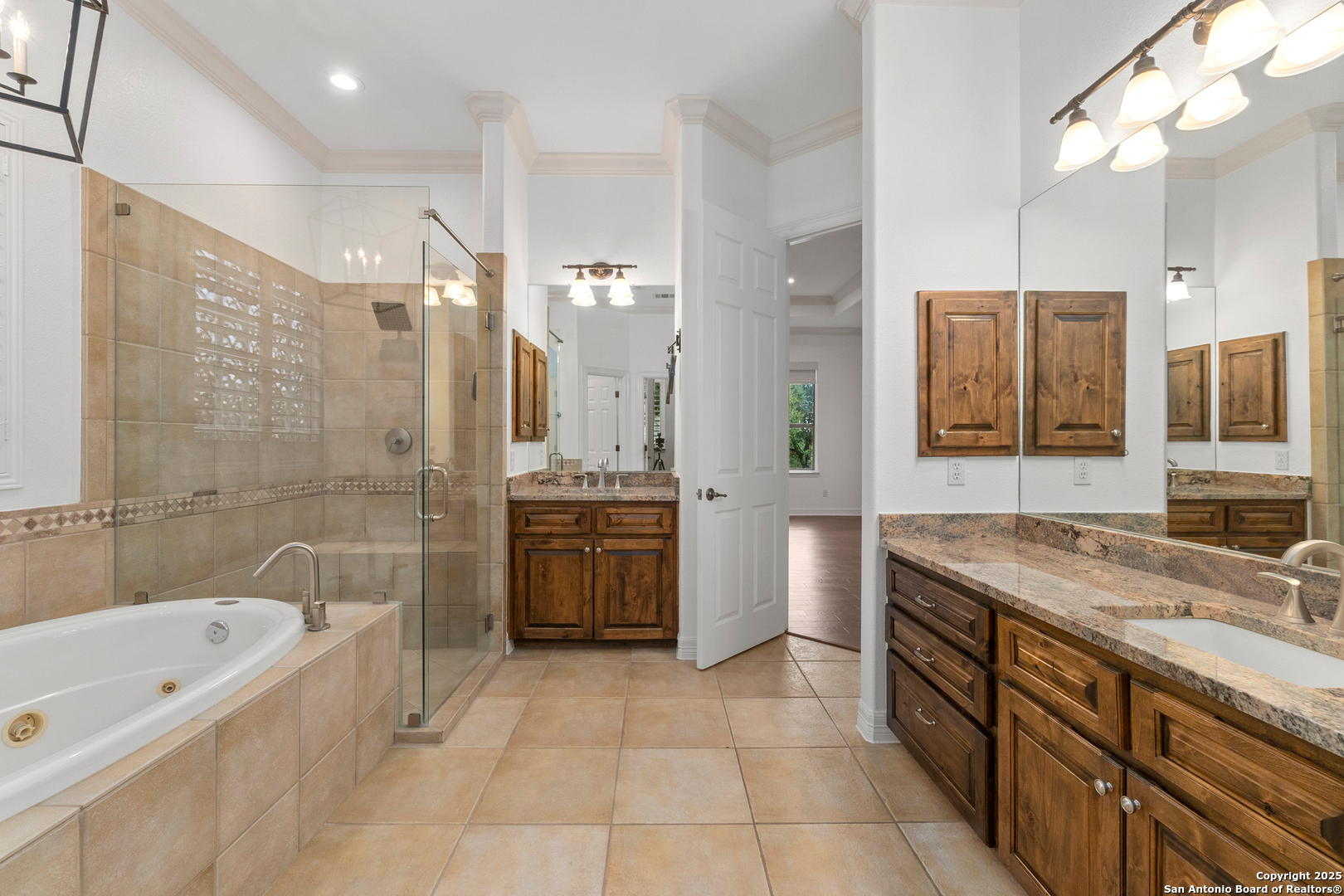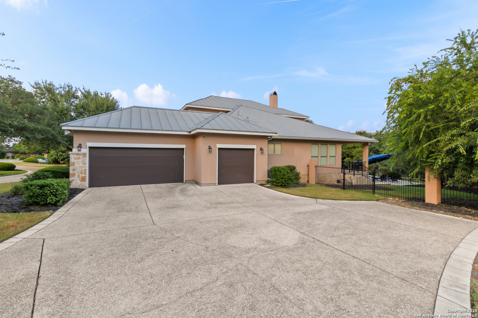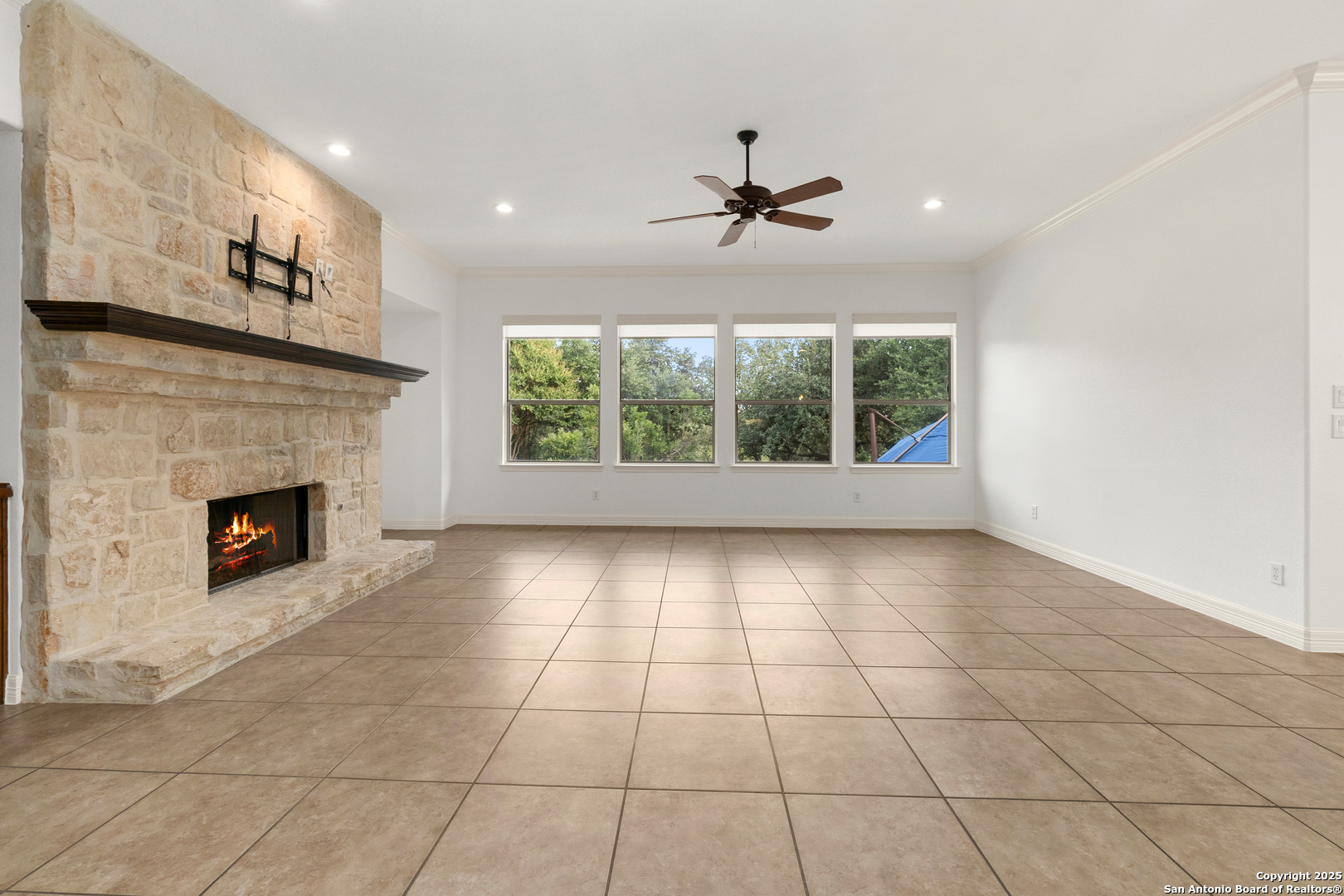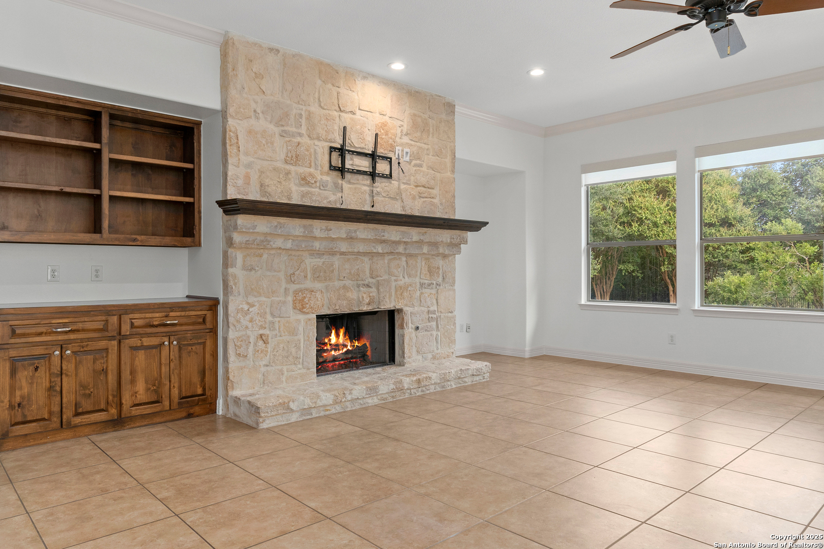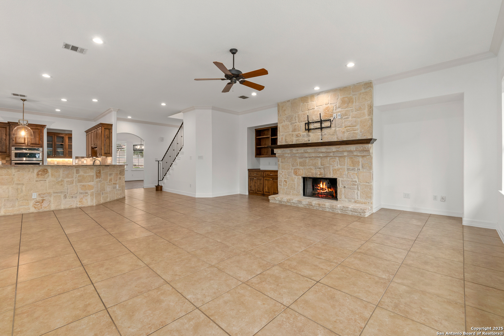 Set behind the gates of prestigious Champions Ridge in the heart of Stone Oak, 6 Champions Way blends timeless design with modern sophistication on a greenbelt lot. Updated with over $100,000 in enhancements since 2022 including a new AC unit 2025 with ten year warranty, new pool pump 2025, new carpet 2025, every detail has been curated for luxury living. Thoughtfully designed outdoor spaces include a pool with spa, covered patios, multiple balconies, and a lushly landscaped yard. Inside, Restoration Hardware lighting adds understated elegance. The gourmet kitchen features custom cabinetry, granite countertops, gas cooking, a butler's pantry, and seamless flow into the formal dining room and spacious family room with stone fireplace and built ins. The primary suite is a true retreat with its own private patio, spa like bathroom, and a generously sized walk in closet. A secondary bedroom or study, completes the first floor. Upstairs, you'll find three expansive bedrooms, a large game room with balcony, and a media room. Kitchen refrigerator, beverage fridge, media room equipment, wine fridge, washer and dryer convey. Recent updates include neutral interior paint, plantation shutters, motorized blinds, and extensive landscaping. Additional features include a circular drive and an oversized three car garage with epoxy flooring. Set within a guard gated community, close to the soon to be developed Mercantile shopping area, and zoned to top rated schools, 6 Champions Way presents an exceptional lifestyle opportunity in one of San Antonio's most sought after neighborhoods.