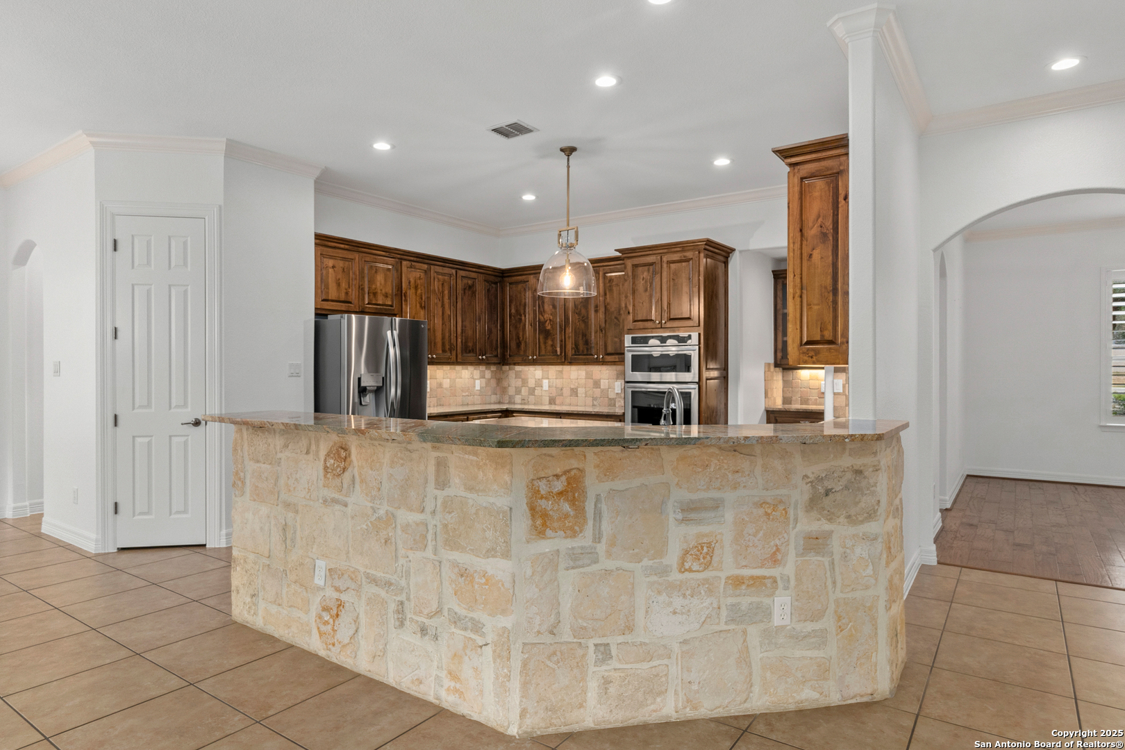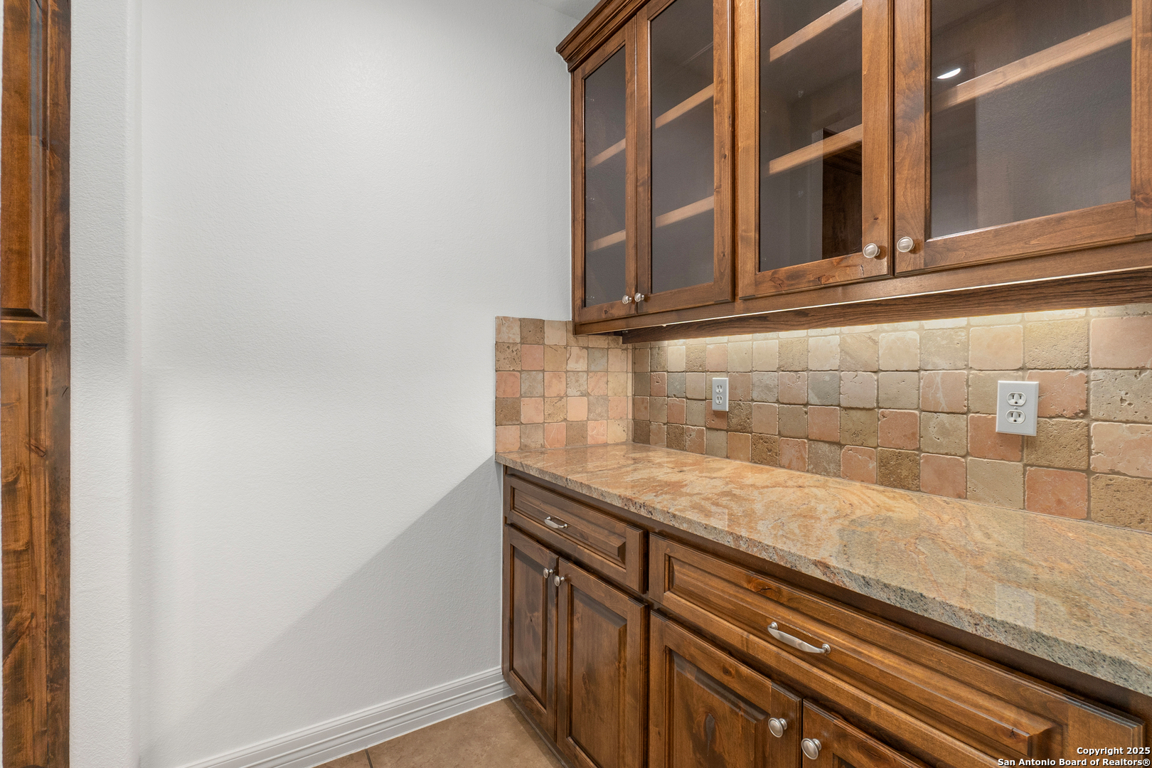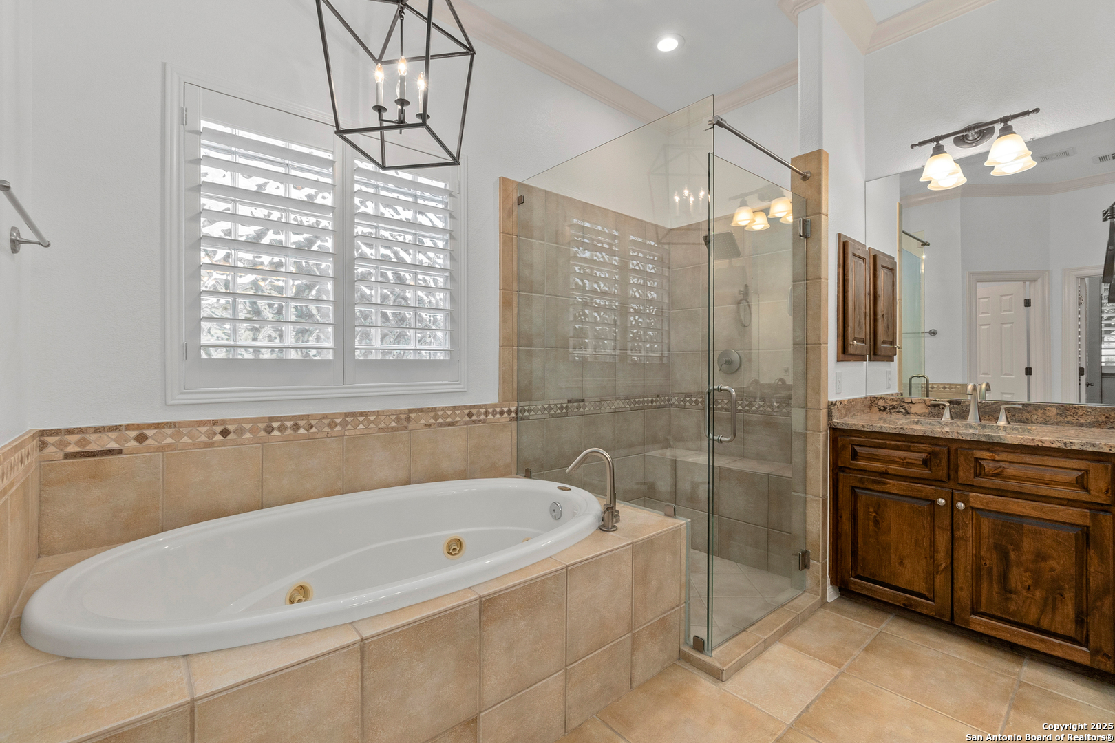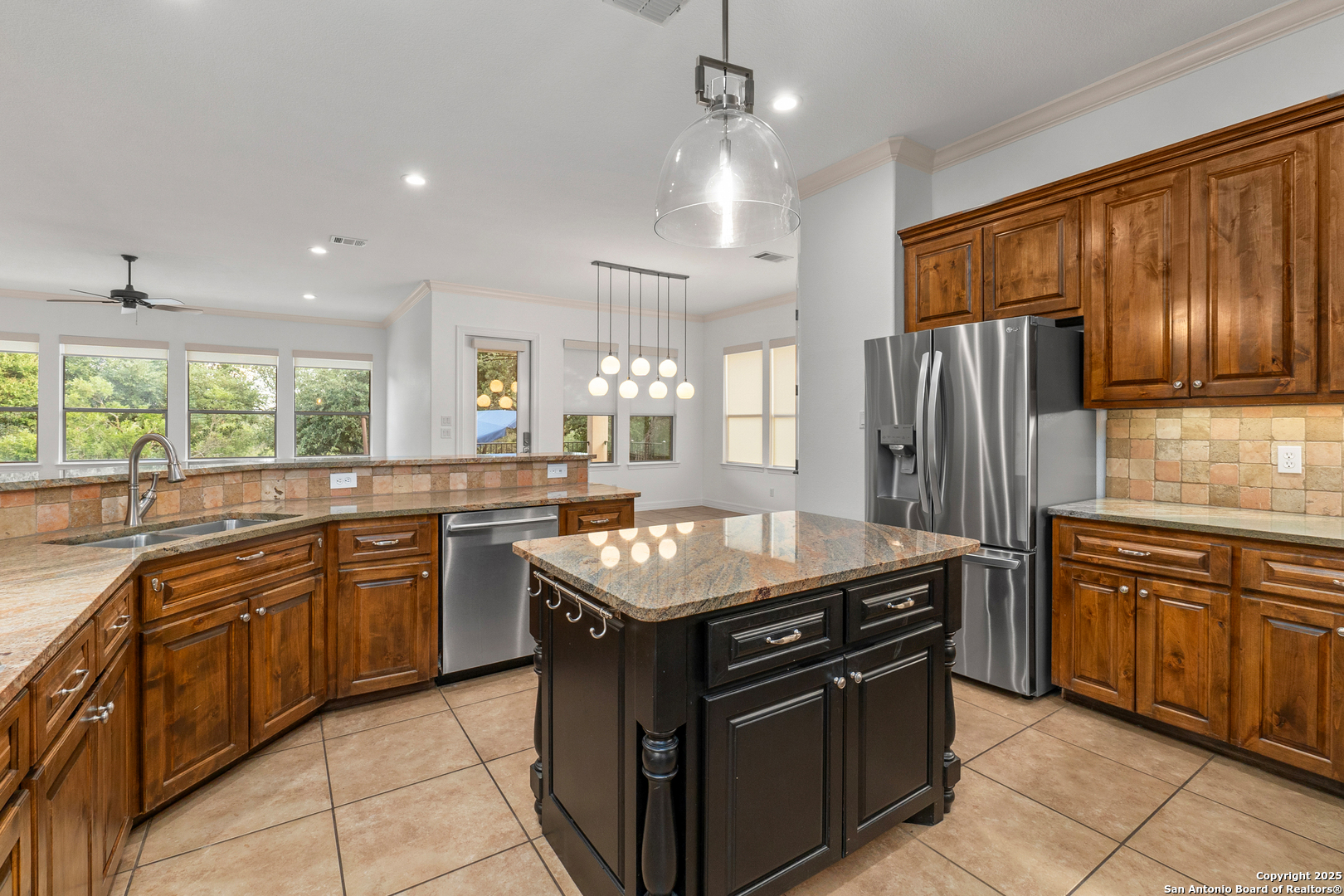 Set behind the gates of prestigious Champions Ridge in the heart of Stone Oak, 6 Champions Way blends timeless design with modern sophistication on a greenbelt lot. Updated with over $100,000 in enhancements since 2022 including a new AC unit 2025 with ten year warranty, new pool pump 2025, new carpet 2025, every detail has been curated for luxury living. Thoughtfully designed outdoor spaces include a pool with spa, covered patios, multiple balconies, and a lushly landscaped yard. Inside, Restoration Hardware lighting adds understated elegance. The gourmet kitchen features custom cabinetry, granite countertops, gas cooking, a butler's pantry, and seamless flow into the formal dining room and spacious family room with stone fireplace and built ins. The primary suite is a true retreat with its own private patio, spa like bathroom, and a generously sized walk in closet. A secondary bedroom or study, completes the first floor. Upstairs, you'll find three expansive bedrooms, a large game room with balcony, and a media room. Kitchen refrigerator, beverage fridge, media room equipment, wine fridge, washer and dryer convey. Recent updates include neutral interior paint, plantation shutters, motorized blinds, and extensive landscaping. Additional features include a circular drive and an oversized three car garage with epoxy flooring. Set within a guard gated community, close to the soon to be developed Mercantile shopping area, and zoned to top rated schools, 6 Champions Way presents an exceptional lifestyle opportunity in one of San Antonio's most sought after neighborhoods.