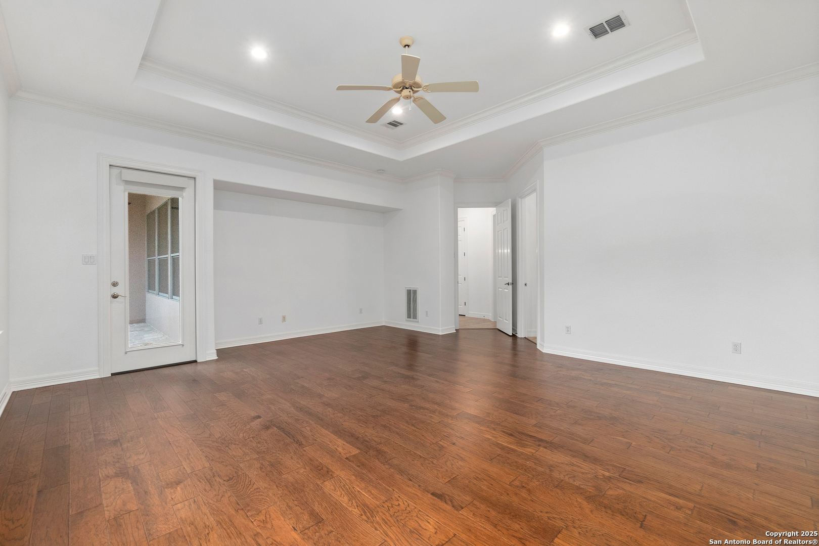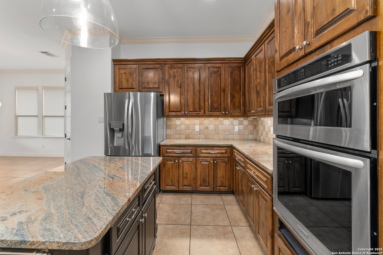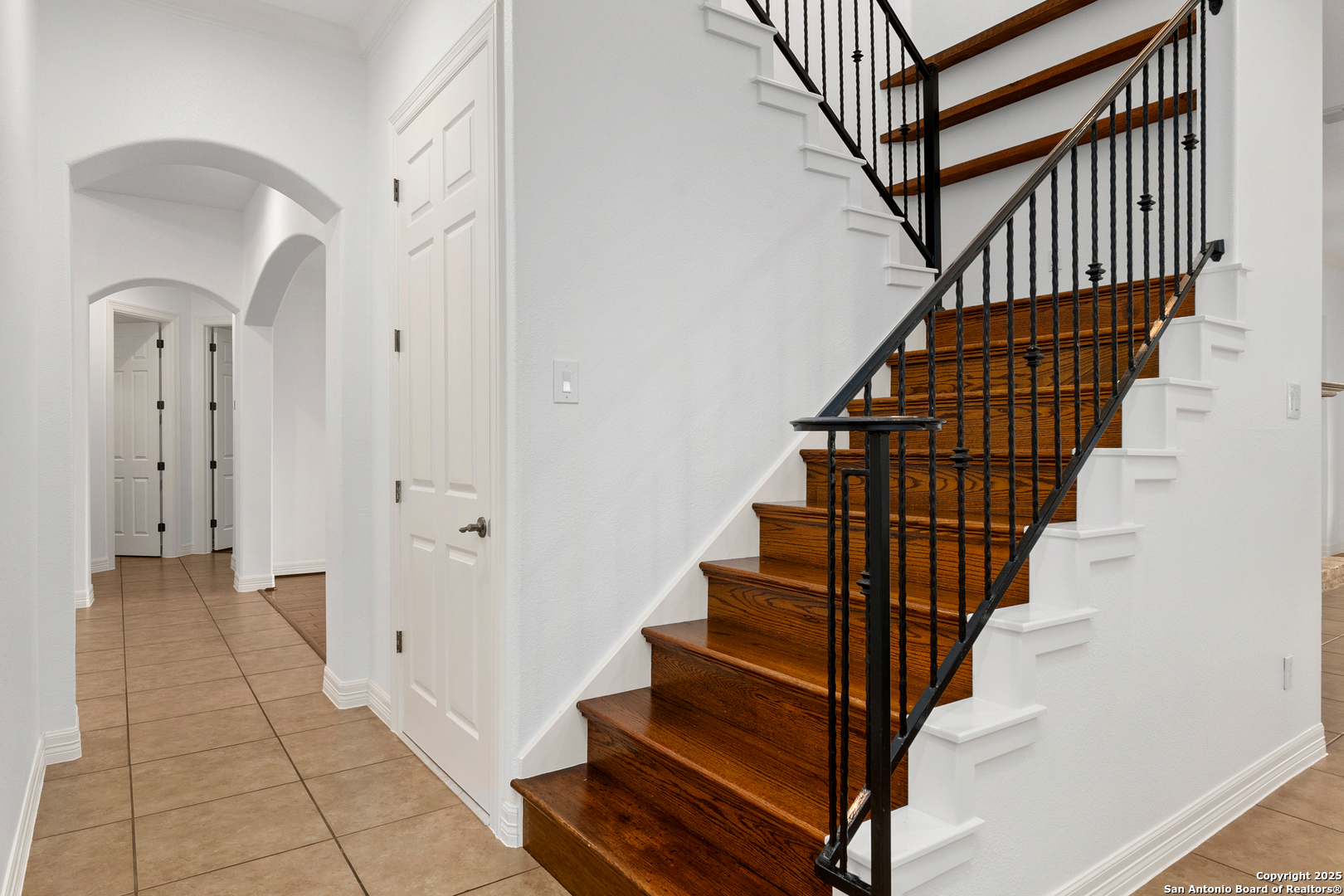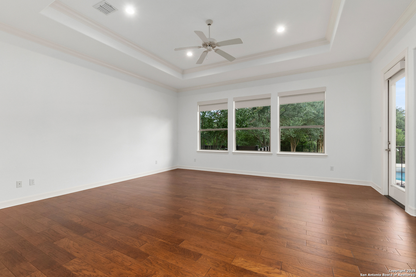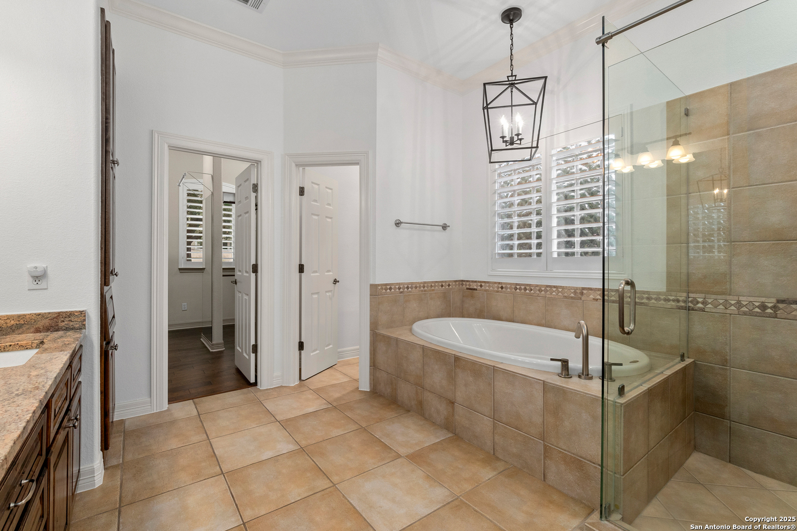 Set behind the gates of prestigious Champions Ridge in the heart of Stone Oak, 6 Champions Way blends timeless design with modern sophistication on a greenbelt lot. Updated with over $100,000 in enhancements since 2022 including a new AC unit 2025 with ten year warranty, new pool pump 2025, new carpet 2025, every detail has been curated for luxury living. Thoughtfully designed outdoor spaces include a pool with spa, covered patios, multiple balconies, and a lushly landscaped yard. Inside, Restoration Hardware lighting adds understated elegance. The gourmet kitchen features custom cabinetry, granite countertops, gas cooking, a butler's pantry, and seamless flow into the formal dining room and spacious family room with stone fireplace and built ins. The primary suite is a true retreat with its own private patio, spa like bathroom, and a generously sized walk in closet. A secondary bedroom or study, completes the first floor. Upstairs, you'll find three expansive bedrooms, a large game room with balcony, and a media room. Kitchen refrigerator, beverage fridge, media room equipment, wine fridge, washer and dryer convey. Recent updates include neutral interior paint, plantation shutters, motorized blinds, and extensive landscaping. Additional features include a circular drive and an oversized three car garage with epoxy flooring. Set within a guard gated community, close to the soon to be developed Mercantile shopping area, and zoned to top rated schools, 6 Champions Way presents an exceptional lifestyle opportunity in one of San Antonio's most sought after neighborhoods.