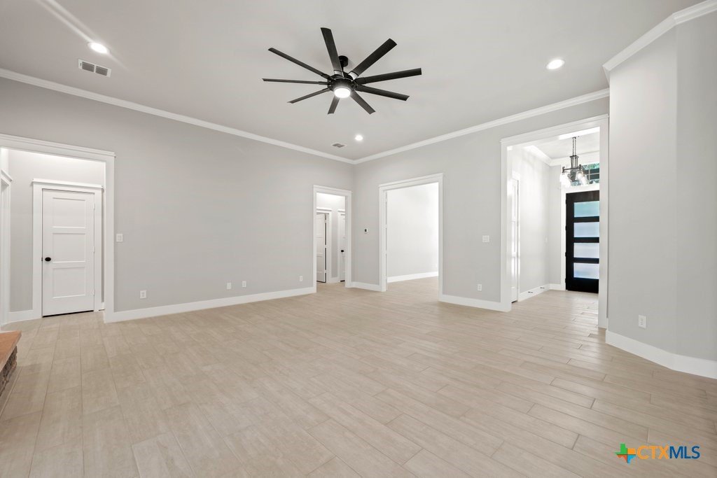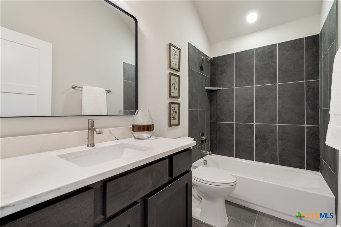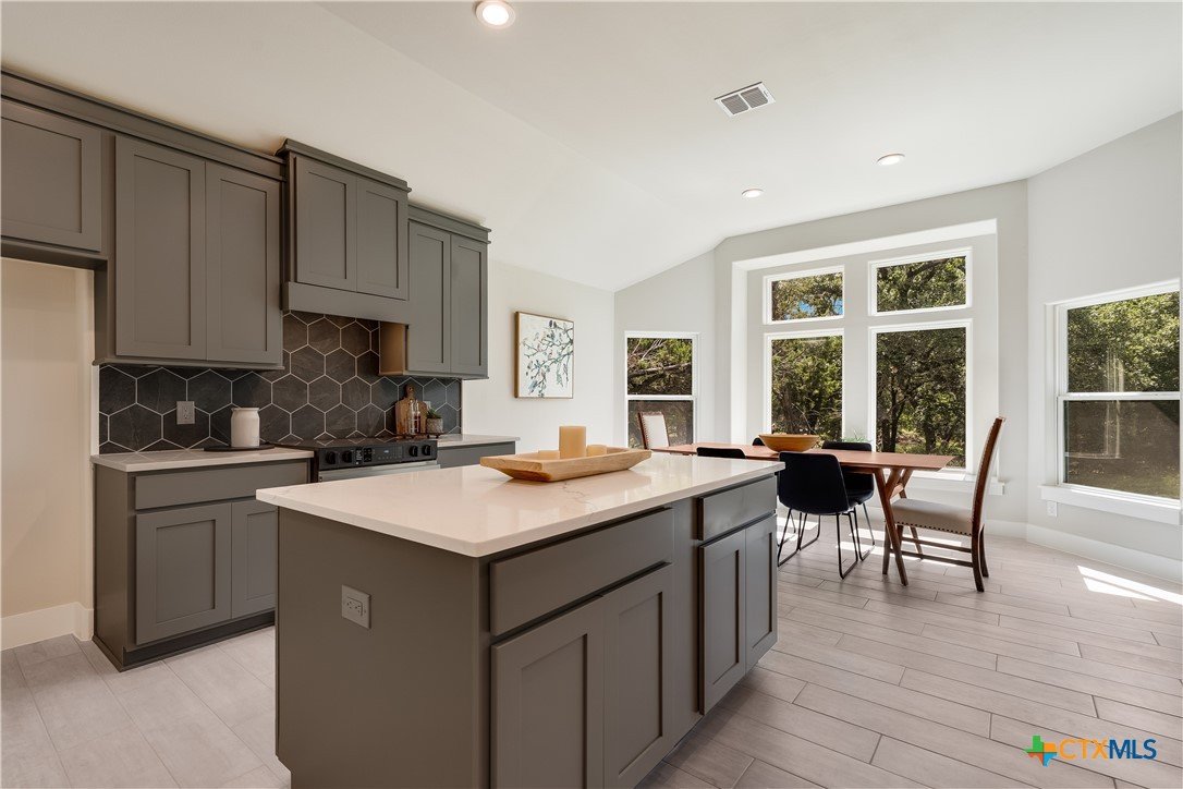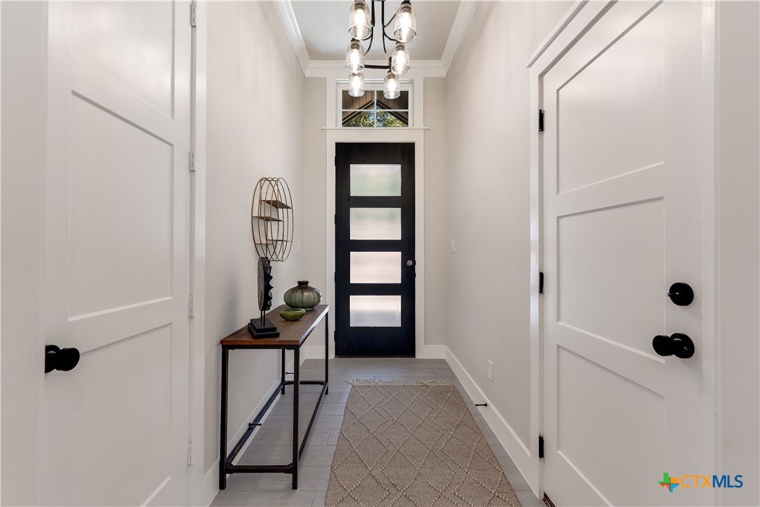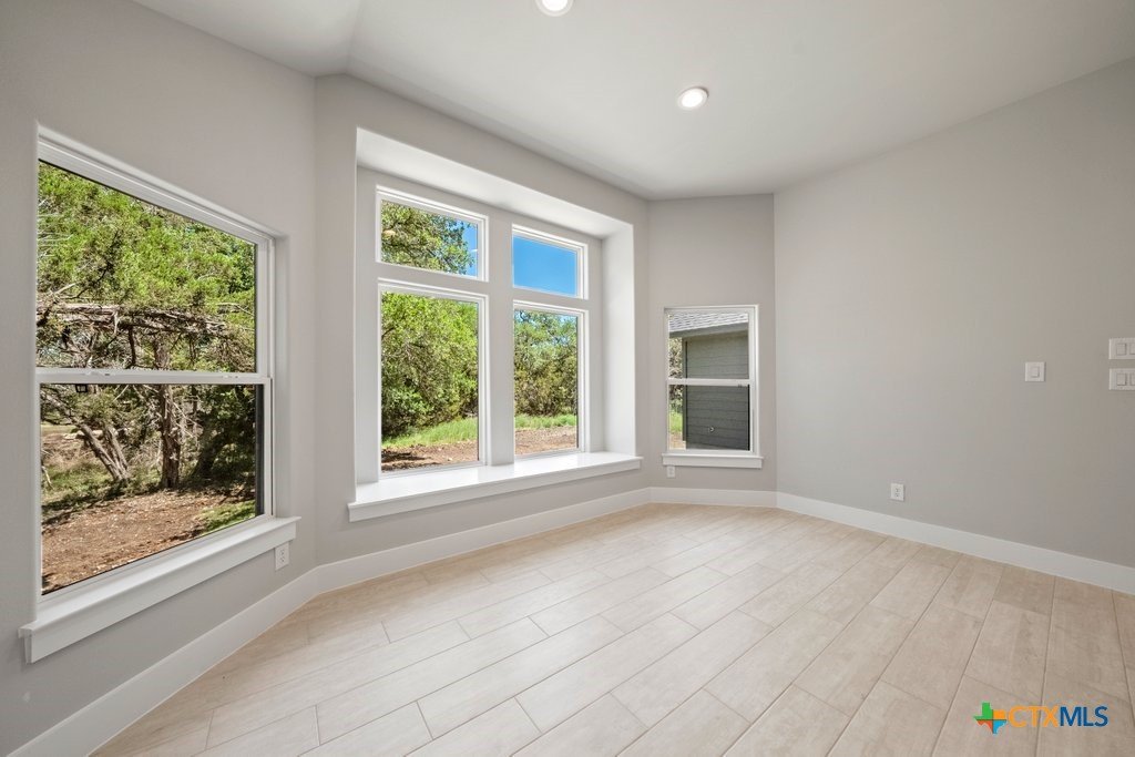 Welcome to another beautiful offering from Somerset Homes, nestled on a quiet cul-de-sac street just minutes from downtown Wimberley. This thoughtfully designed 3-bedroom, 2-bath home includes a versatile flex room—perfect for a home office, playroom, or guest space—and a spacious covered back porch ideal for relaxing or entertaining. Step inside to an open-concept floor plan with high ceilings and stylish finishes throughout. The kitchen boasts granite countertops, a large center island, stainless steel range, walk-in pantry, and a designer tile backsplash—perfect for both everyday living and hosting. Durable tile flooring runs through the main living areas and bathrooms, while plush carpet adds comfort in the bedrooms. The inviting living room features a masonry wood-burning fireplace, creating a cozy focal point for gatherings. The private primary suite offers a double vanity with granite counters, a luxurious jacuzzi tub, and a separate shower. Two secondary bedrooms are tucked away off their own hallway for added privacy. Additional highlights include front yard landscaping, high-speed Spectrum internet, solid core doors and a 2-car attached garage. Don't miss the chance to live in this serene, well-appointed home just moments from Wimberley’s charming downtown shops, dining, and natural beauty. Schedule your tour today!