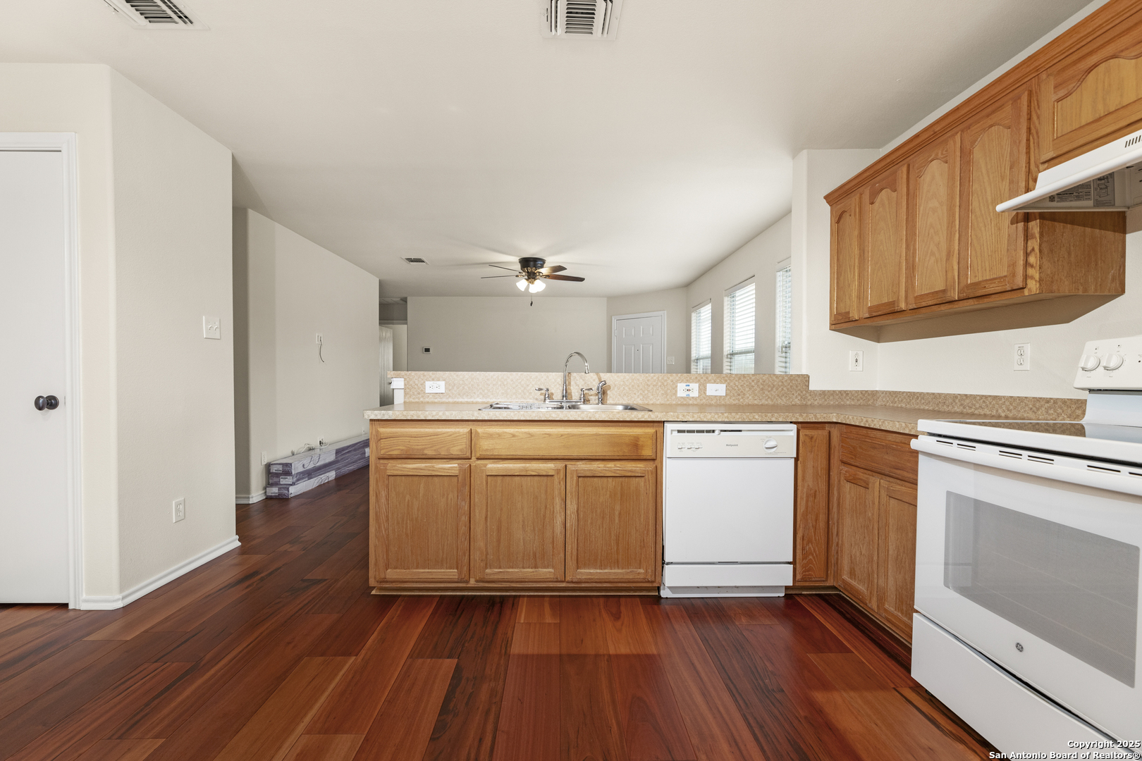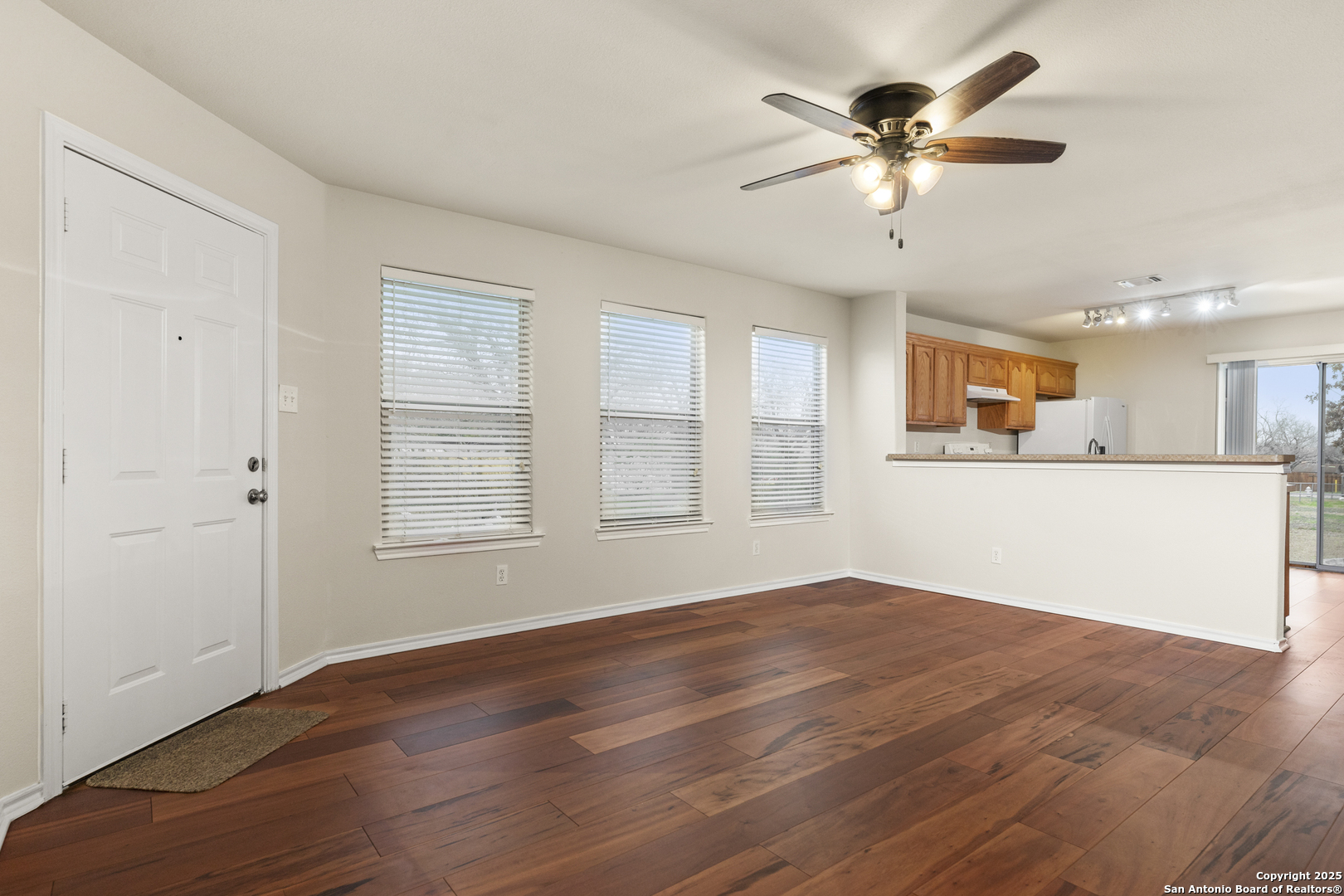 Welcoming, affordable and move-in ready! Fresh interior paint just weeks ago compliments the new flooring installed in 2024. Open and versatile floorplan inside with primary bedroom on the other side of the home from the secondary ones. Brick and cement fiber exterior with 30 year heavy composition roof keep maintenance costs low. Plenty of room to roam outside too, with yards, not feet of separation from your neighbors and no thru traffic or HOA rules to worry about. Enjoy 26.5 acres of nearby city lakes stocked with fish and 277.2 acres of city parks with several sports fields, play grounds, even a 3.0 mile loop trail for fitness and site seeing, pavilions and an Olympic sized swimming pool. Minutes to JBSA Randolph, Ft. Sam and SAMMC or plenty of dining, entertainment and shopping options at The Forum.