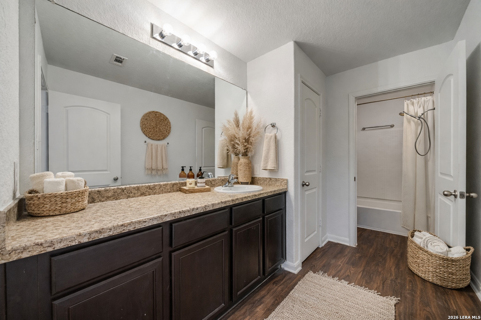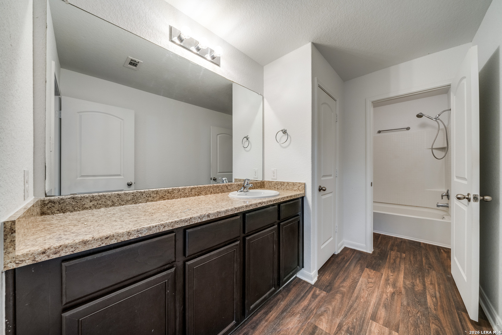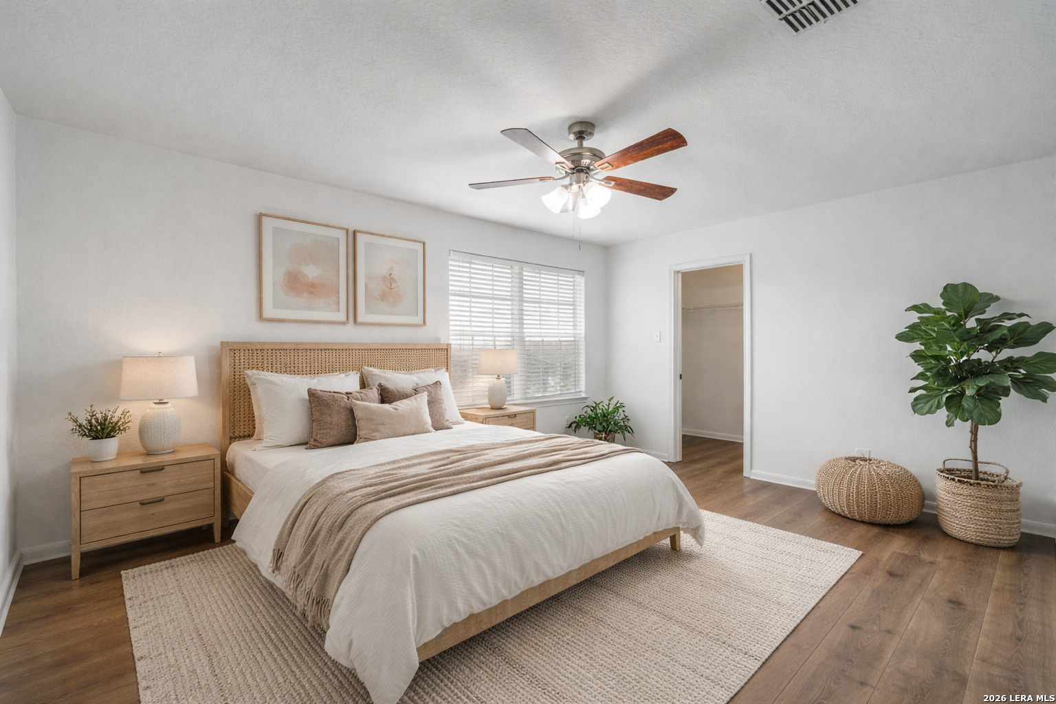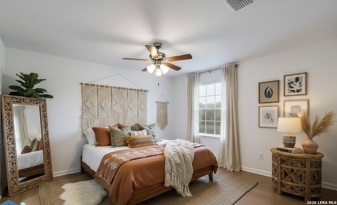 Welcome home to this beautifully maintained, light-filled home located in a peaceful, pet-friendly neighborhood with a nearby veterinary clinic for added convenience. Ideally situated with quick access to Hwy 410 and Hwy 87, this home offers both tranquility and connectivity and great convenience to Fort Sam and Randolph. Step inside to discover brand new laminate flooring throughout, enhancing the fresh, modern feel of the space. The spacious and functional layout features multiple walk-in closets, generously sized bedrooms, and stylish bathrooms complete with double sinks and a relaxing soaking tub. Open living areas flow seamlessly into a well-appointed kitchen, perfect for everyday living or entertaining guests. Outside, enjoy a sizable yard ready for gardening, play, or quiet evenings under the Texas sky. This move-in-ready home combines comfort, convenience, and charm-come see it today and imagine making it your own.