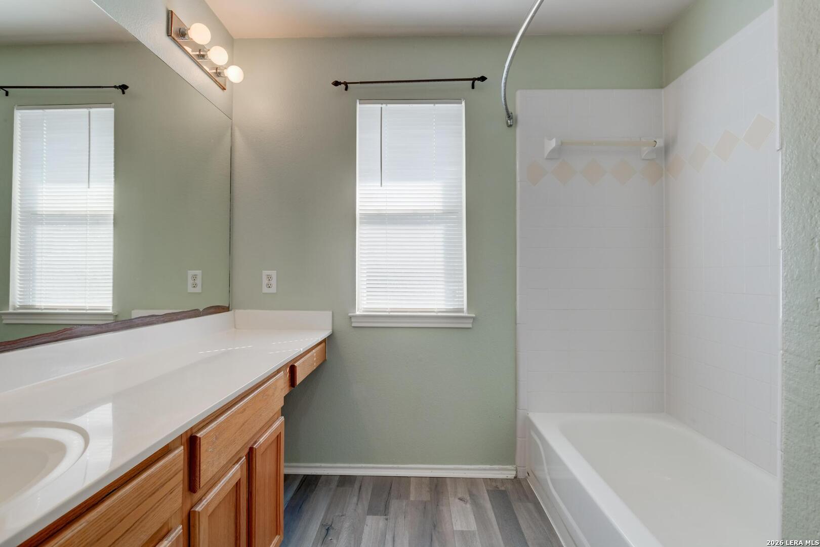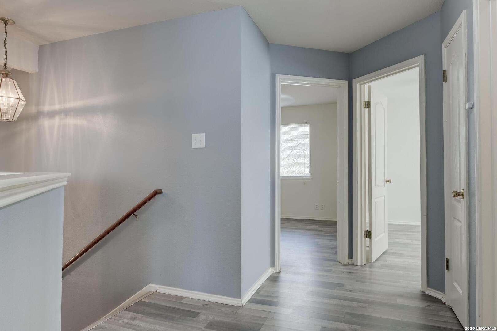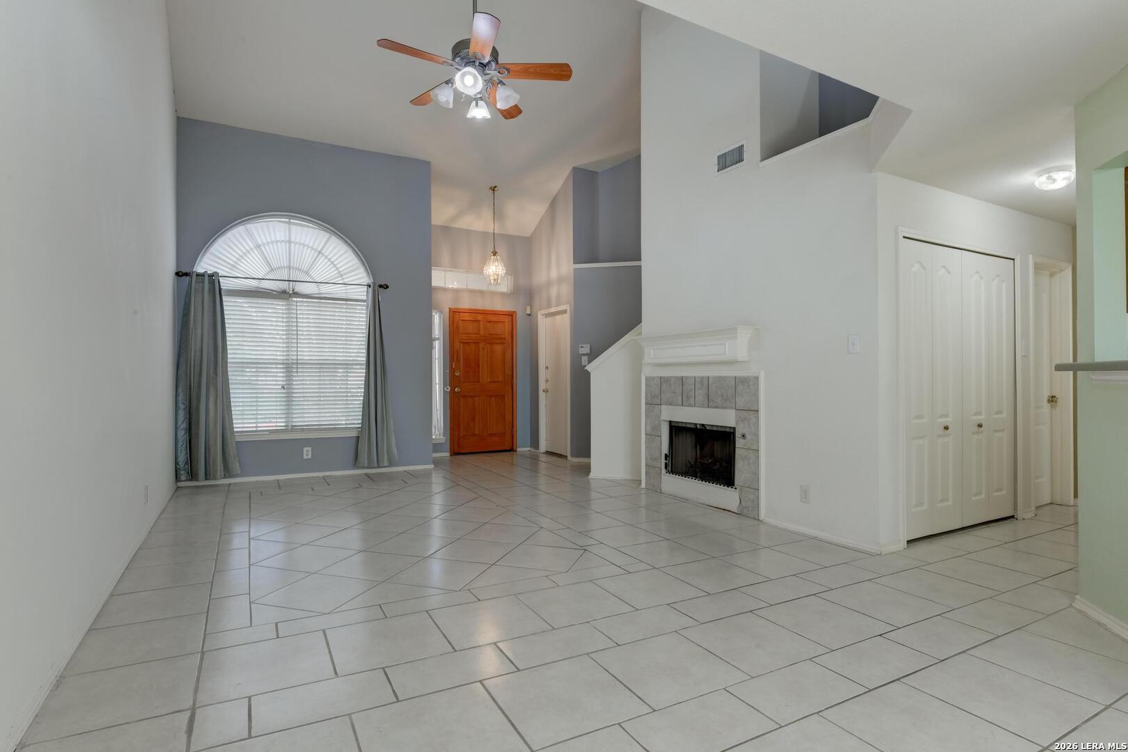 Welcome home to this 3-bedroom, 2.5-bathroom home. When you step inside, you'll be greeted by a spacious main living area with high vaulted ceilings. On cold winter days, you can stay warm while sitting next to the fire. The first floor offers a convenient layout with a nicely sized primary suite and a cozy kitchen. You'll find no carpet, just sleek tile flooring throughout the first floor, while the upstairs features wood laminate. Located at the end of a cul-de-sac, the home experiences minimal traffic. The neighborhood park is just a short distance away, all within the community gate. Running errands or shopping is easy, with HEB, The Rim, and La Cantera just minutes away. Today is the day to make this house your home.