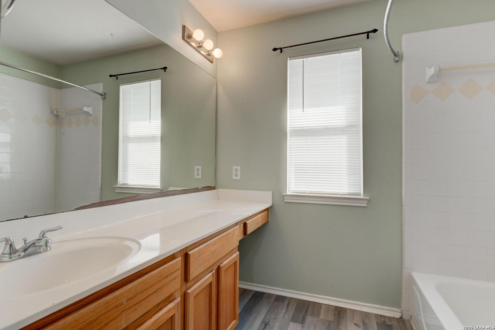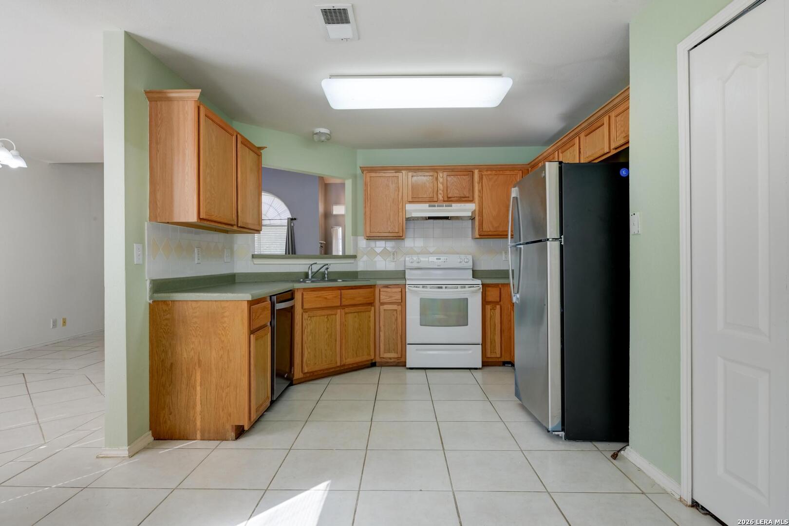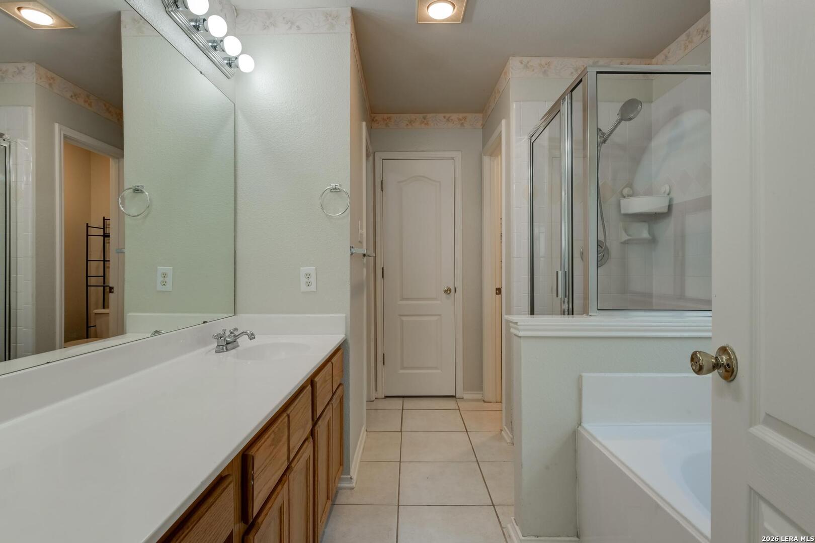Welcome home to this 3-bedroom, 2.5-bathroom home. When you step inside, you'll be greeted by a spacious main living area with high vaulted ceilings. On cold winter days, you can stay warm while sitting next to the fire. The first floor offers a convenient layout with a nicely sized primary suite and a cozy kitchen. You'll find no carpet, just sleek tile flooring throughout the first floor, while the upstairs features wood laminate. Located at the end of a cul-de-sac, the home experiences minimal traffic. The neighborhood park is just a short distance away, all within the community gate. Running errands or shopping is easy, with HEB, The Rim, and La Cantera just minutes away. Today is the day to make this house your home.
