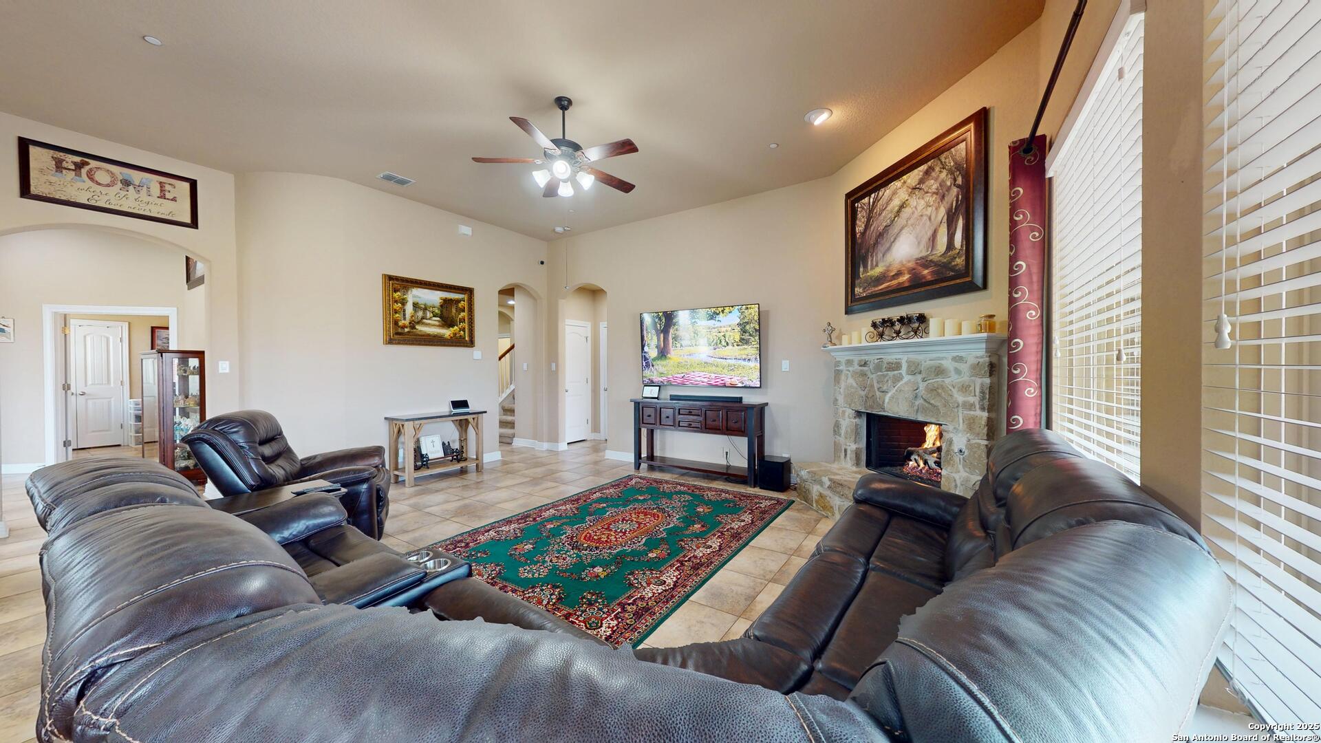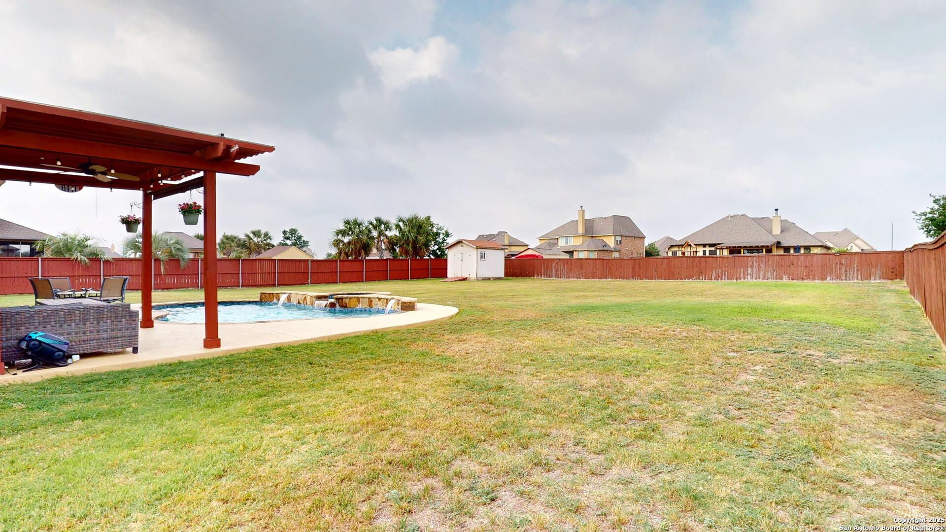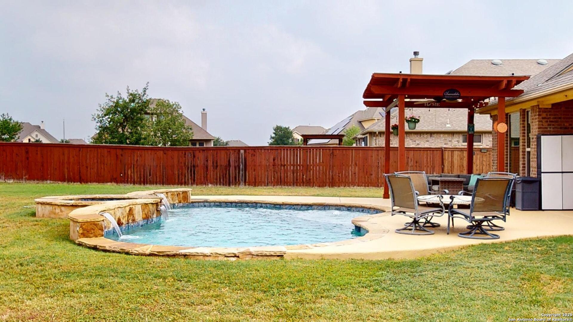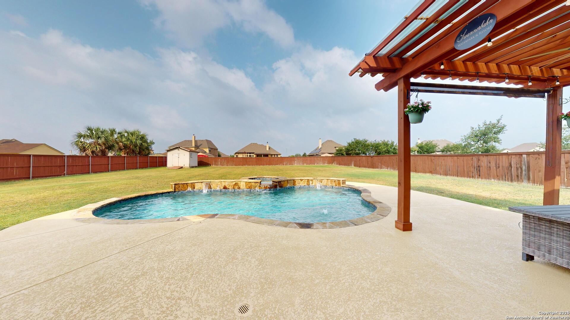 Safari Stone, Curved Architecture and GIANT Game Room, OH MY! Stunning home located just 25 short minutes from Downtown San Antonio. 'OPEN CONCEPT' everyone's looking for! Incredible floor plan with OUTRAGEOUS UPGRADES-- Huge luxury island, stone accents, high ceilings, and tons of natural lighting! Master Suite fit for a KING, KING SIZED furniture that is! Texas summers are hot, did you see the AMAZING POOL? Set up a showing today and START LIVING!!