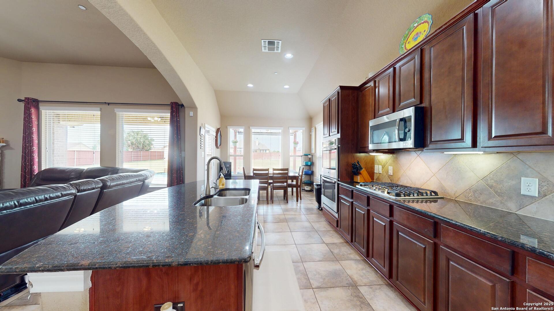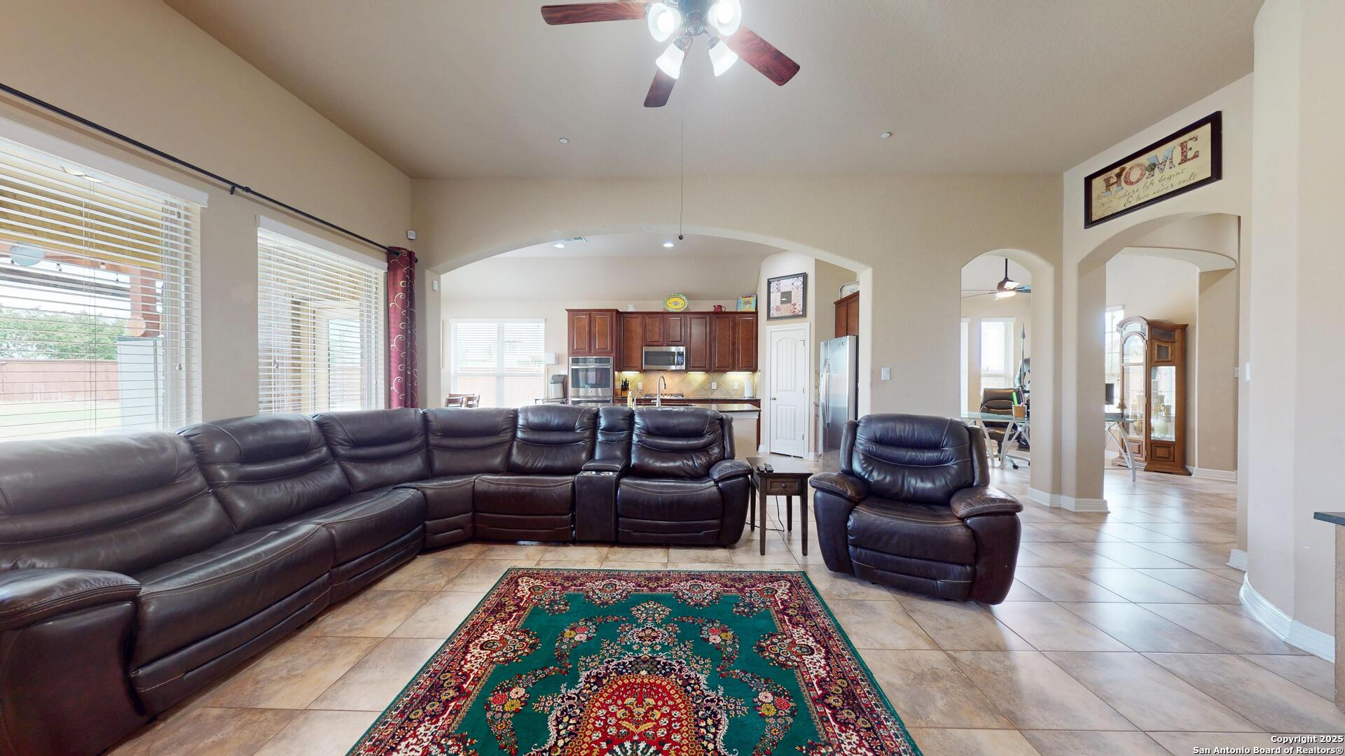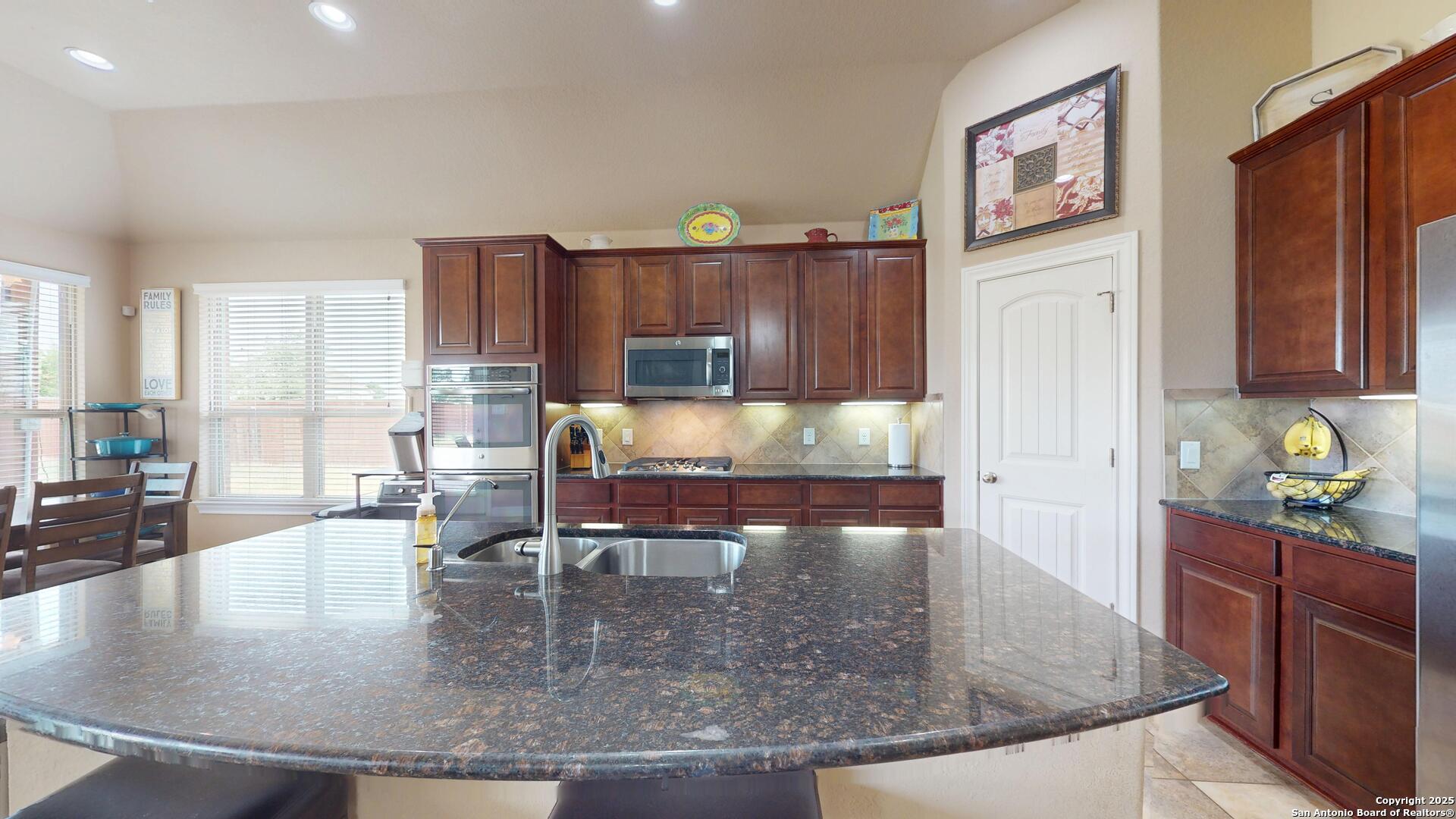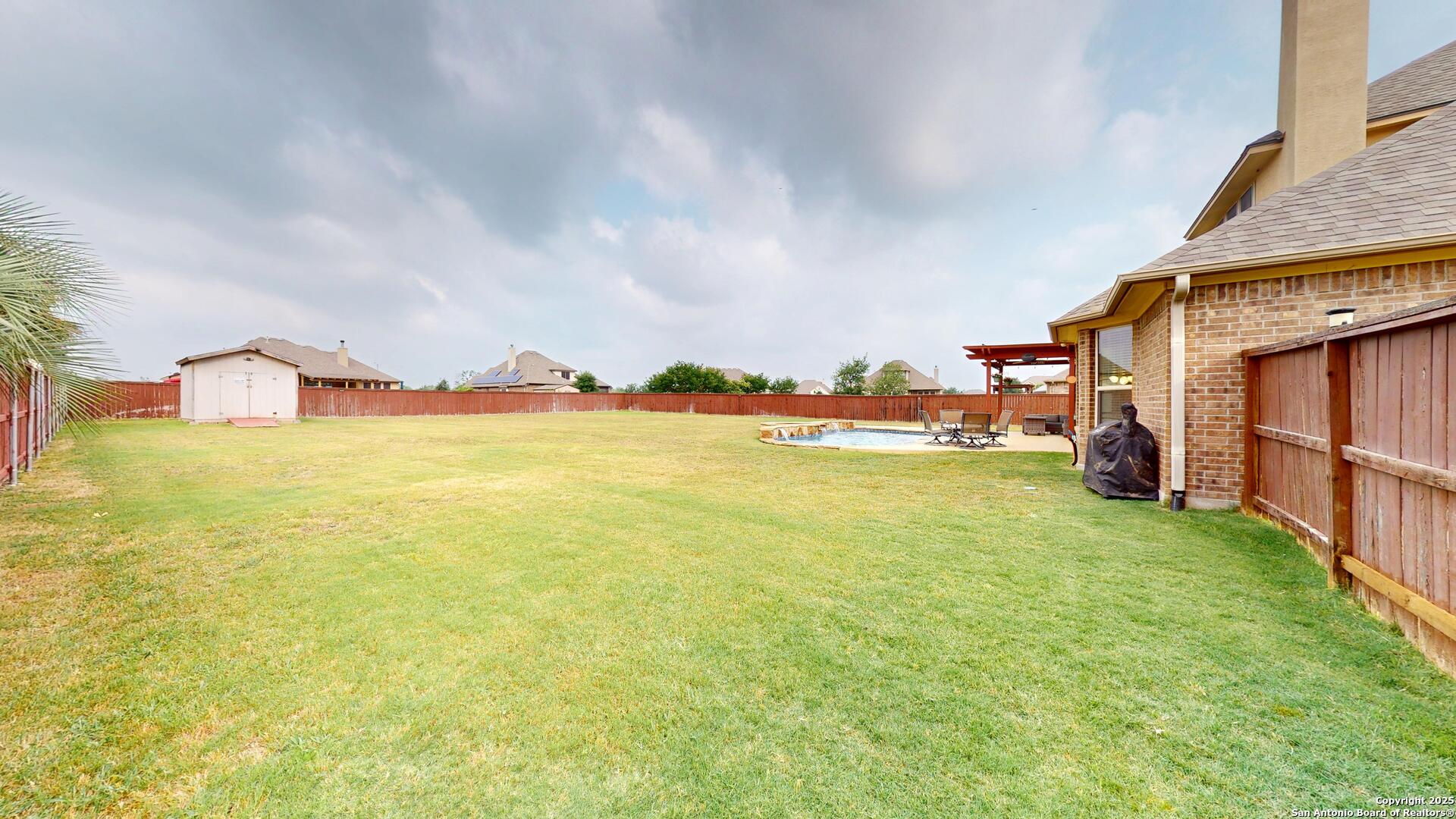Safari Stone, Curved Architecture and GIANT Game Room, OH MY! Stunning home located just 25 short minutes from Downtown San Antonio. 'OPEN CONCEPT' everyone's looking for! Incredible floor plan with OUTRAGEOUS UPGRADES-- Huge luxury island, stone accents, high ceilings, and tons of natural lighting! Master Suite fit for a KING, KING SIZED furniture that is! Texas summers are hot, did you see the AMAZING POOL? Set up a showing today and START LIVING!!