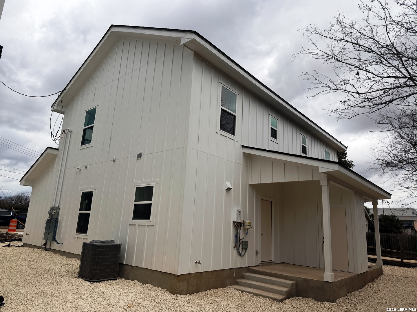 Great new construction duplex's in Bandera, just off the main street. Easy walk to the courthouse and all the shops and restaurants. Directly across the street from Bandera Middle School. This duplex has separate water and electric meters. The units have all stainless steel kitchen appliances packages and include a refrigerator in addition to the stove, microwave, and dishwasher. Nice granite countertops in kitchen and baths, large living area, both bedrooms upstairs Each unit has a two spaces parking pad in front. Floor Plan in Documents