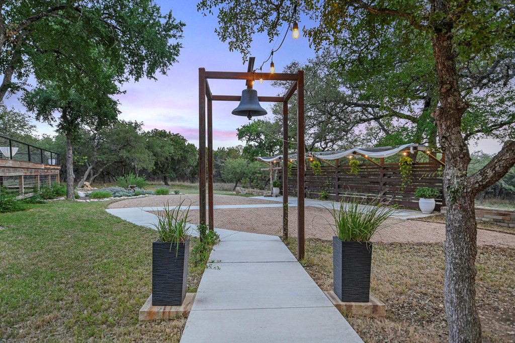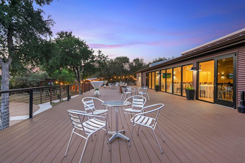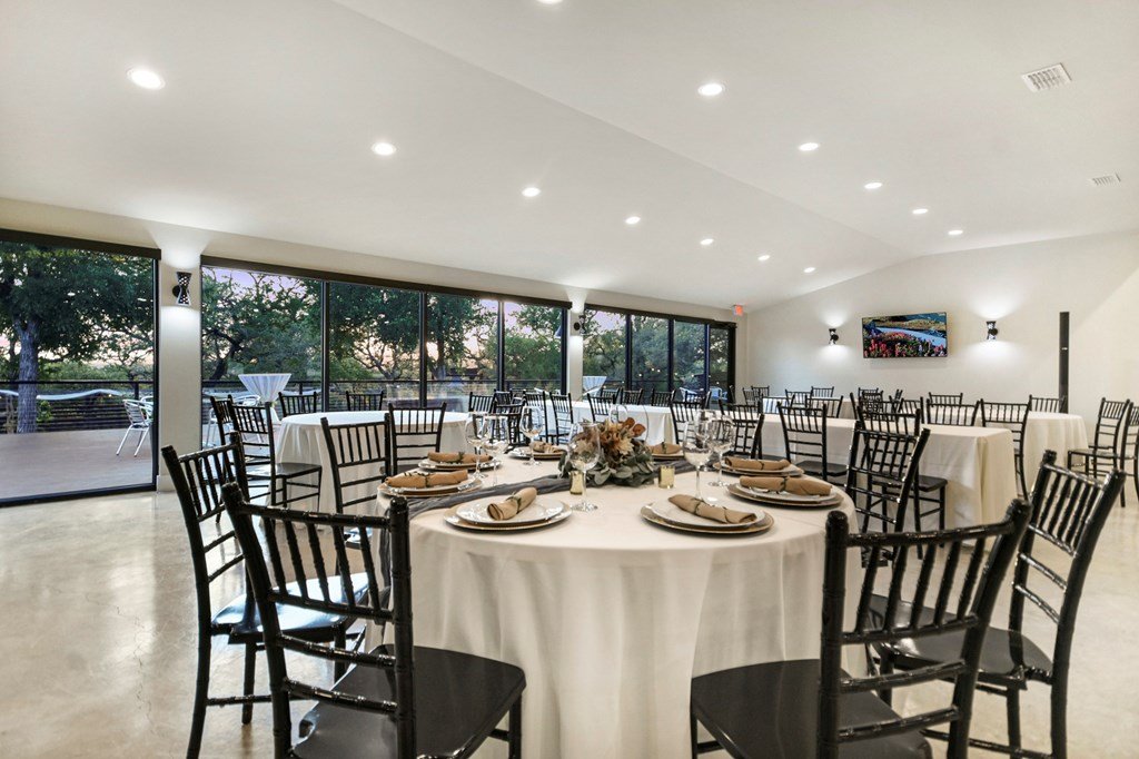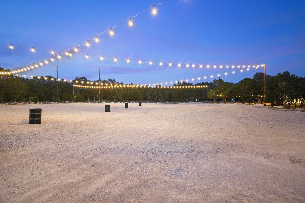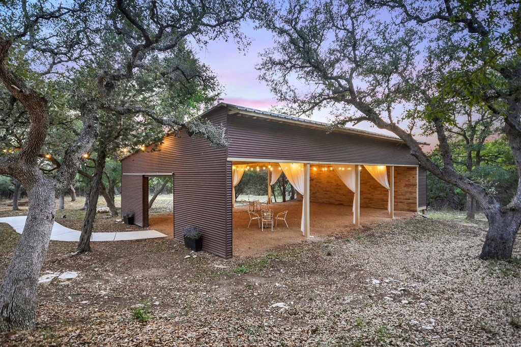 Discover Prima Vista, a premier event venue offering modern luxury & natural beauty on 11+ picturesque acres just minutes from Wimberley Square. Designed with versatility in mind, this turnkey property provides a midcentury modern ballroom featuring a striking Sputnik chandelier & an expansive 3,000-sqft outdoor deck with a custom fire pit for unforgettable events. The venue also includes a scenic ceremony site adorned with a 120-year-old bell, perfect for celebrating life's milestones, & additional outdoor amenities such as games, cocktail tables, & a well-lit parking area with accessible spaces. Indoor highlights include a fireplace, an elegant salon equipped with a beauty bar & private restroom, a classic lounge featuring a pool table, big-screen TV, & private bar, & a professional bar setup where clients can provide their own alcohol. The caterer's prep area is fully equipped with commercial-grade appliances, ensuring seamless event execution. Other thoughtful additions include wheelchair-accessible facilities, & a backup generator. Perfect for event destination or to operate a business catering to weddings, corporate gatherings, and reunions.