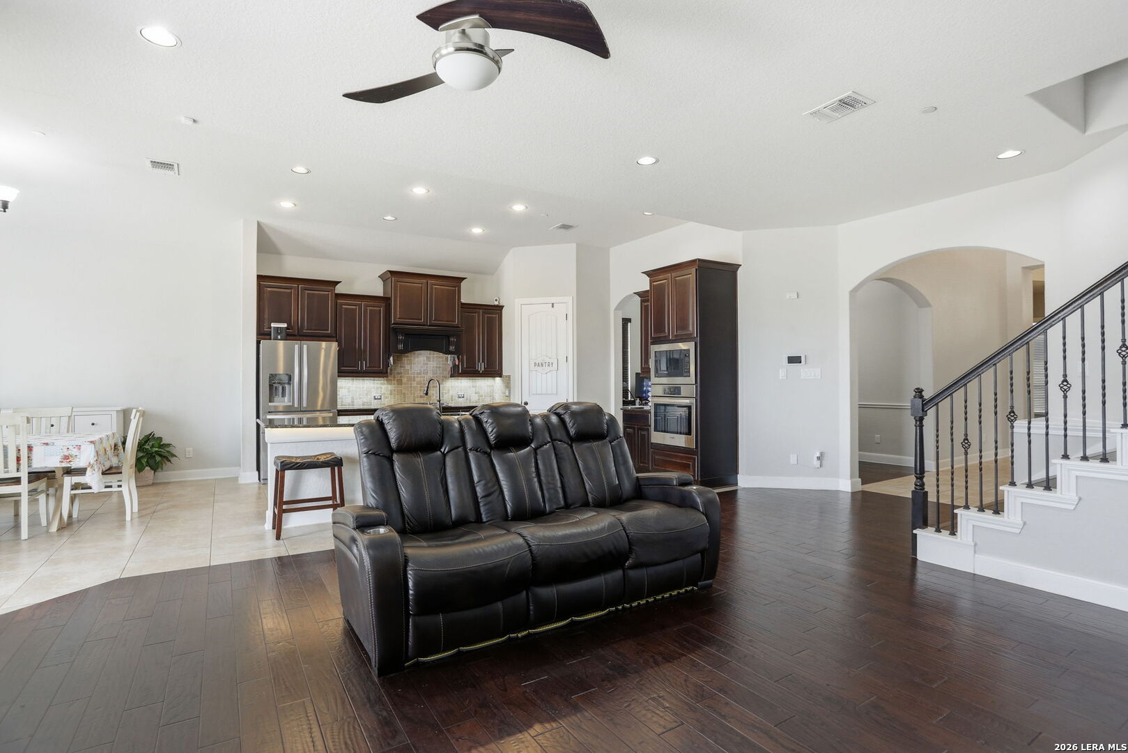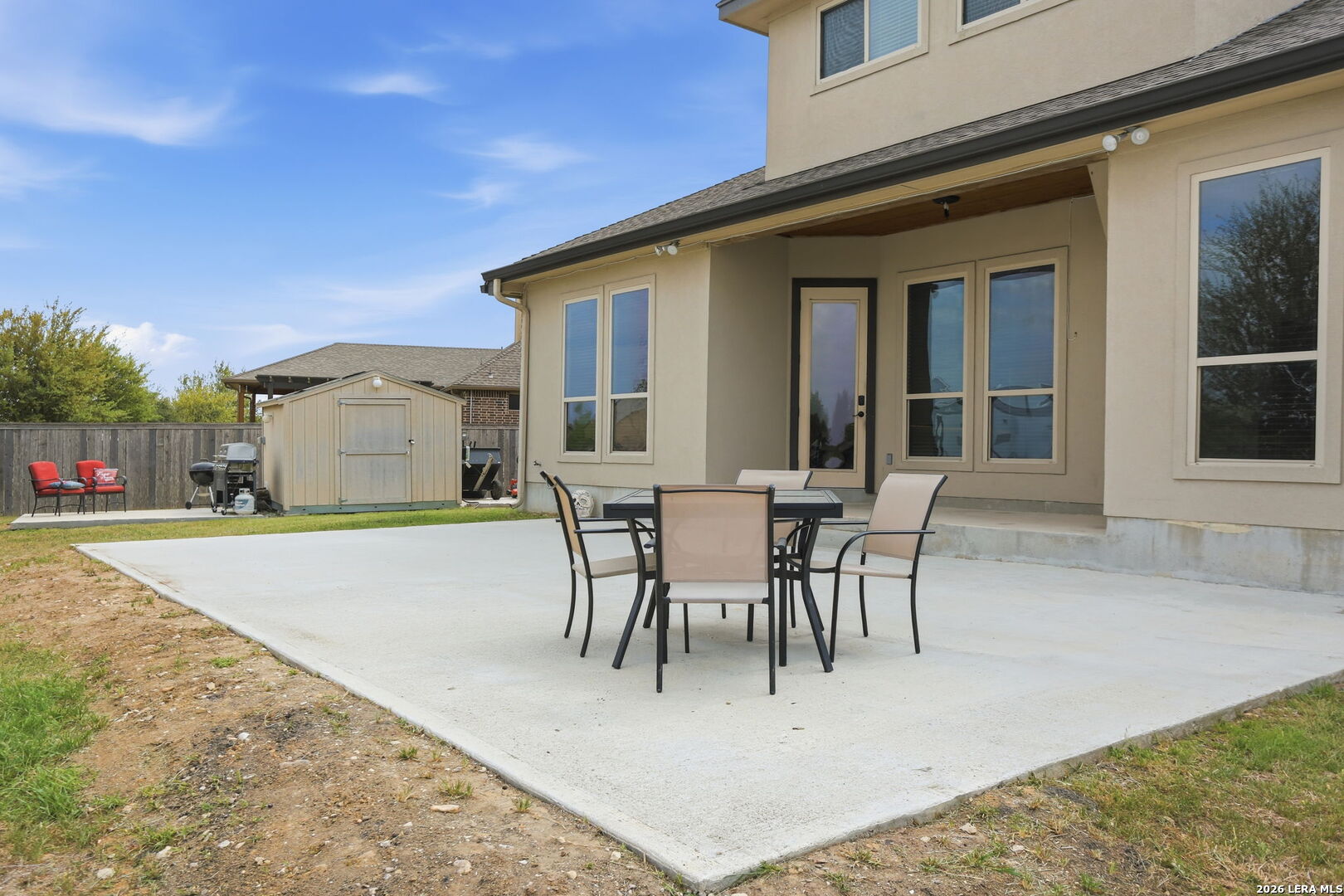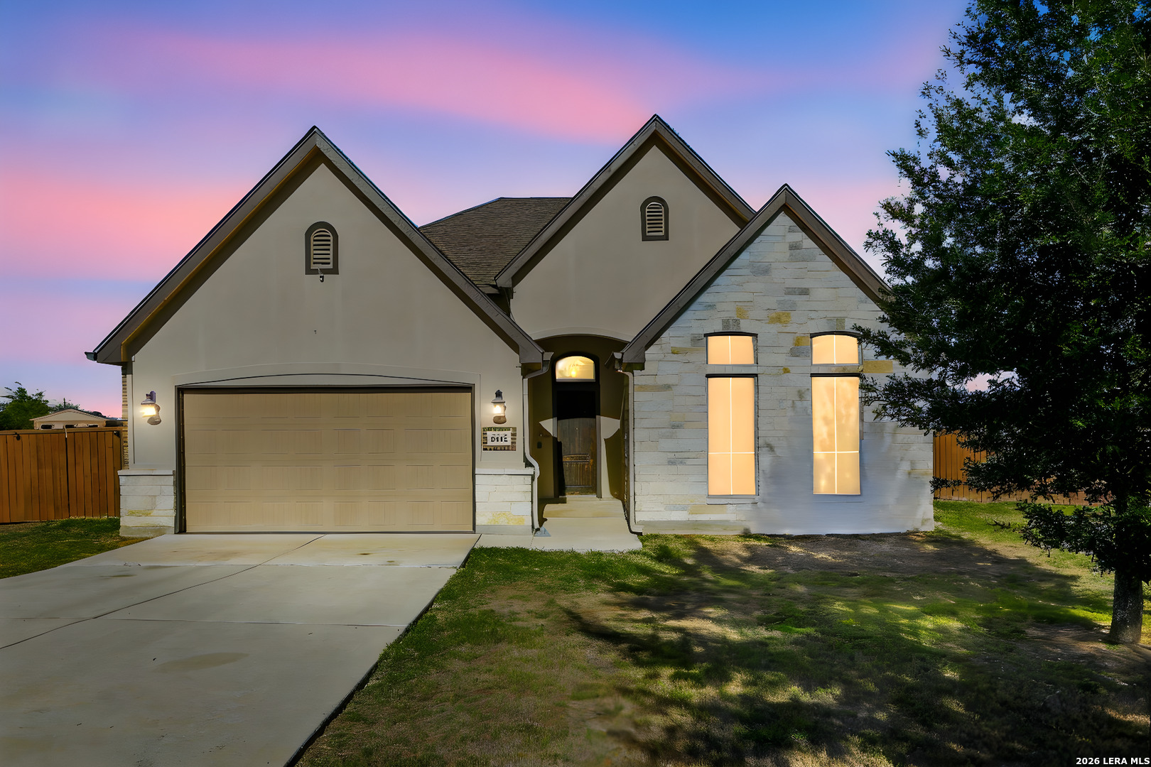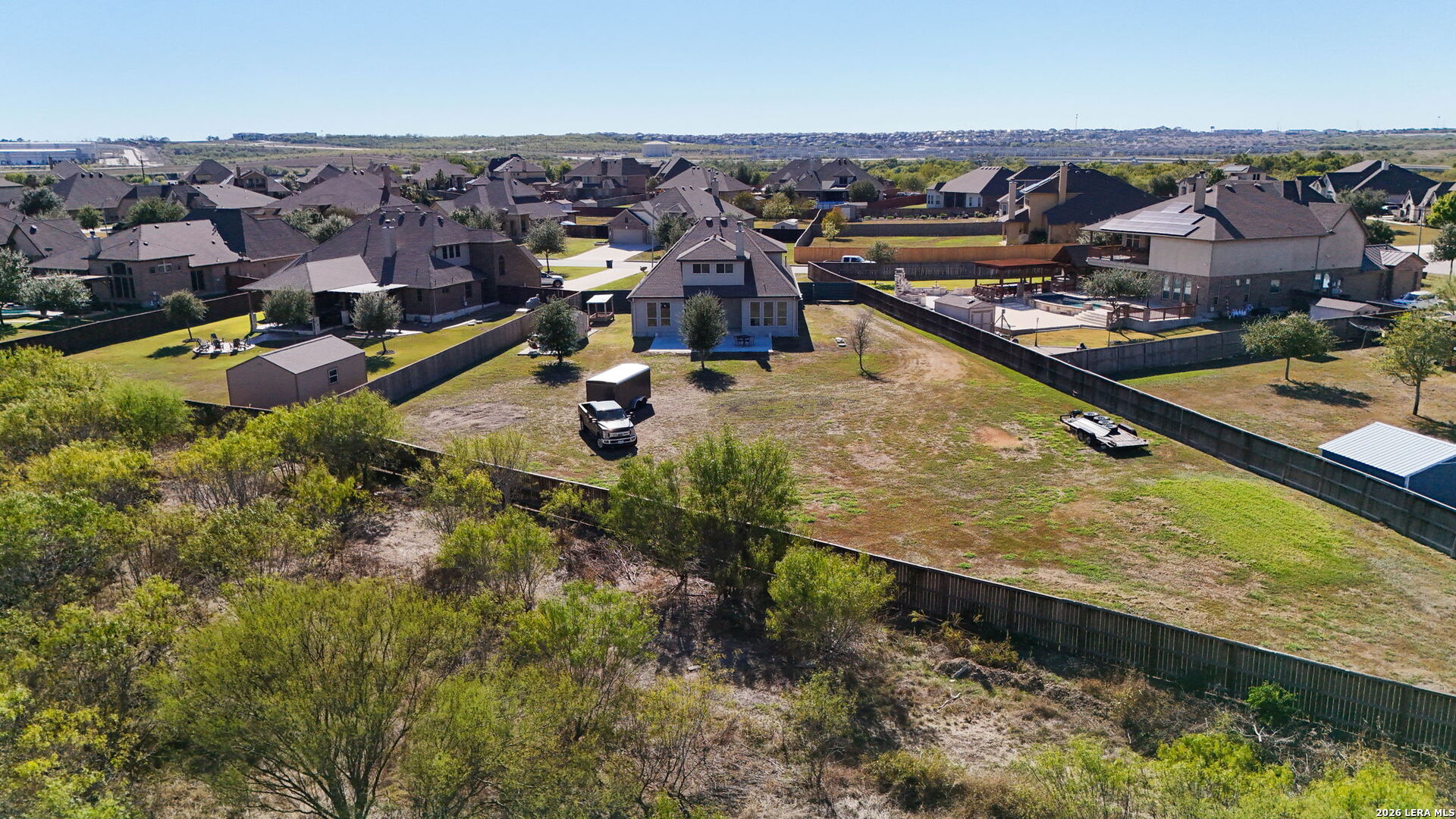 Welcome to this stunning 1.5-story home in San Antonio, a rare opportunity to own a spacious property on .83 acres with PAID-OFF solar panels, delivering energy efficiency and long-term savings from day one. With 5 bedrooms, 4 full bathrooms, and a large game room, this home offers the space and flexibility today's buyers are searching for. Step inside to an inviting entry with soaring ceilings and a formal dining room featuring elegant tray ceilings and abundant natural light. The open-concept living area is designed for both comfort and entertaining, showcasing beautiful wood flooring, a cozy corner fireplace, and seamless flow into the kitchen. You'll love the kitchen's granite countertops, oversized breakfast bar, recessed lighting, and eat-in dining area with views of your expansive backyard. The primary suite is a true retreat with tray ceilings, dual vanities, a soaking garden tub, separate shower, and a huge walk-in closet. Step outside and experience what truly sets this home apart, nearly an acre of private land. Whether you're dreaming of a pool, workshop, outdoor kitchen, or just wide-open space to relax and entertain, this property gives you the freedom to create it. The oversized patio is perfect for gatherings, and the custom JellyFish lighting adds year-round ambiance and standout curb appeal. Super clean and loaded with upgrades, this home combines space, efficiency, and lifestyle in one incredible package, all conveniently located near Randolph AFB, shopping, and dining. Schedule your showing today and be sure to ask about the assumable VA loan opportunity.