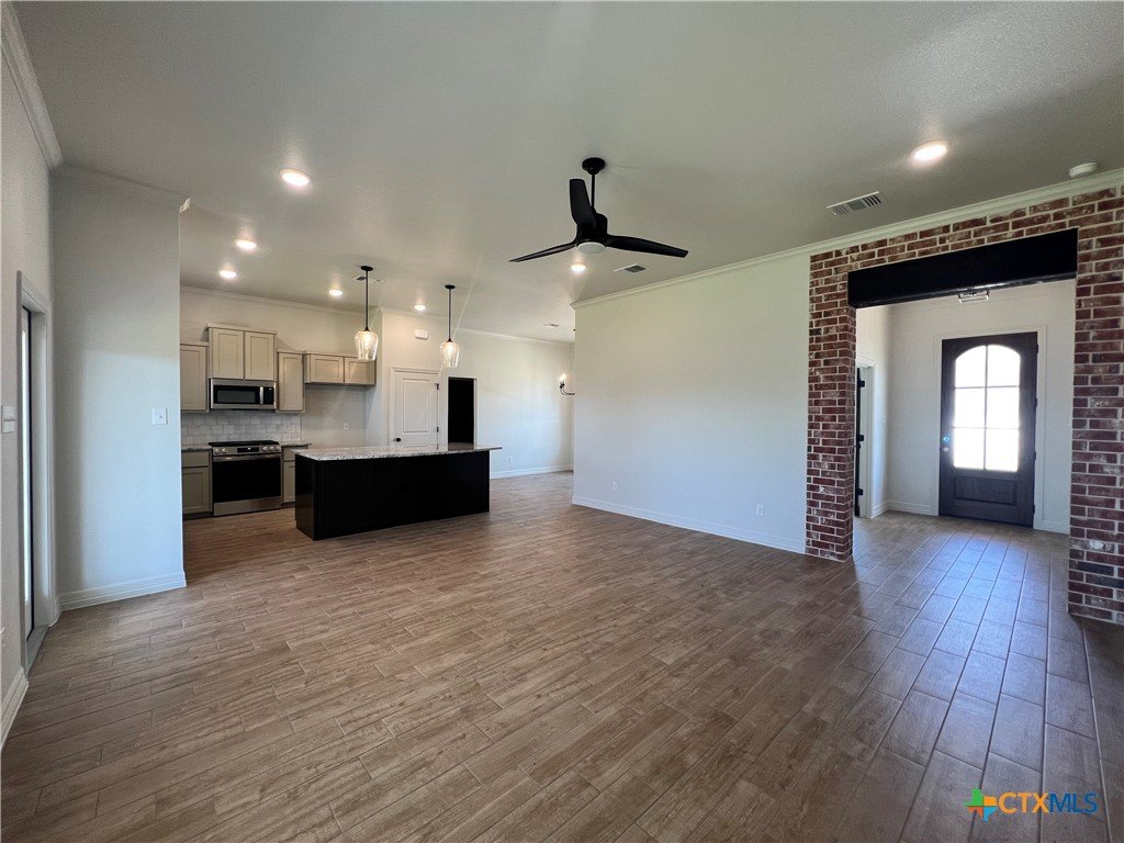 New 3Bd/2Ba home plus study by Hodges Eagle Ridge Builders, Inc. in Bella Terra. Master suite has double vanities, large tiled shower and a spacious walk-in closet. Home has crown molding, 3 cm granite, island in kitchen with breakfast bar, pantry, and a gas range. Other amenities include foamed insulation, low maintenance brick/stone/fiber-cement exterior, covered back porch, 2 car attached garage, full sod/sprinkler, and a privacy fence. Subdivision has park area and pool.