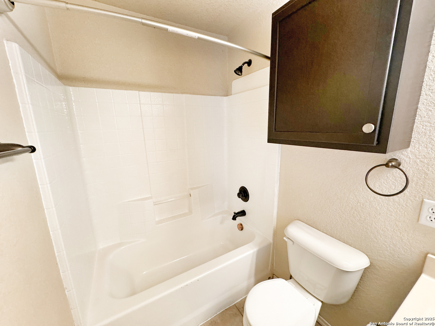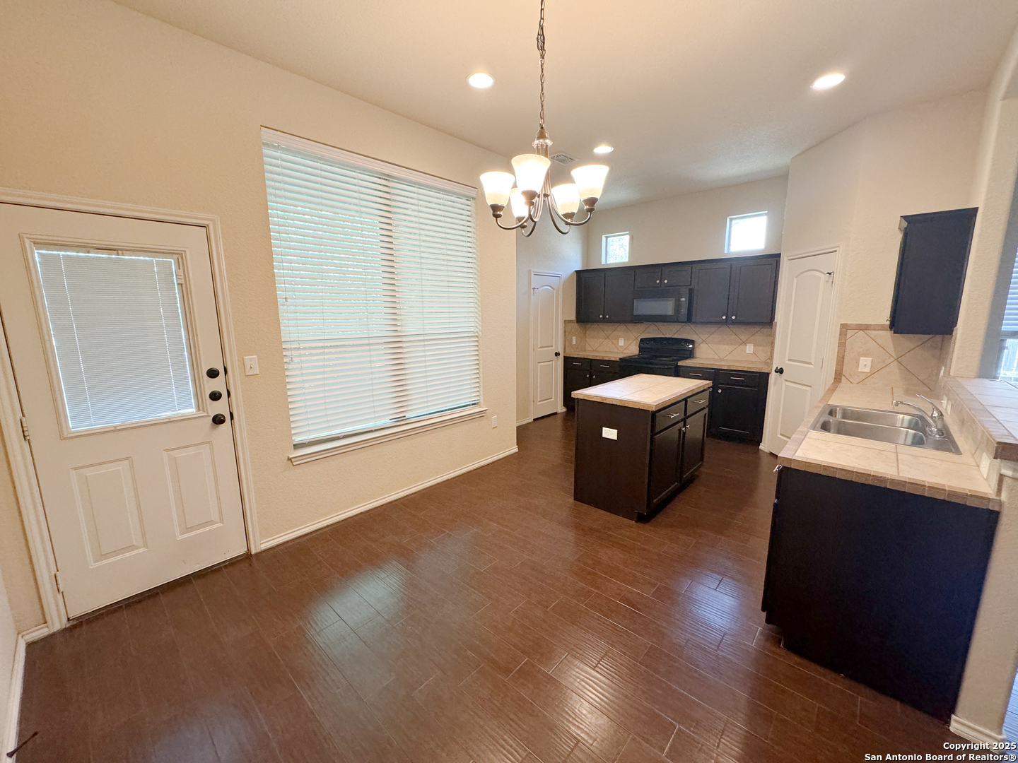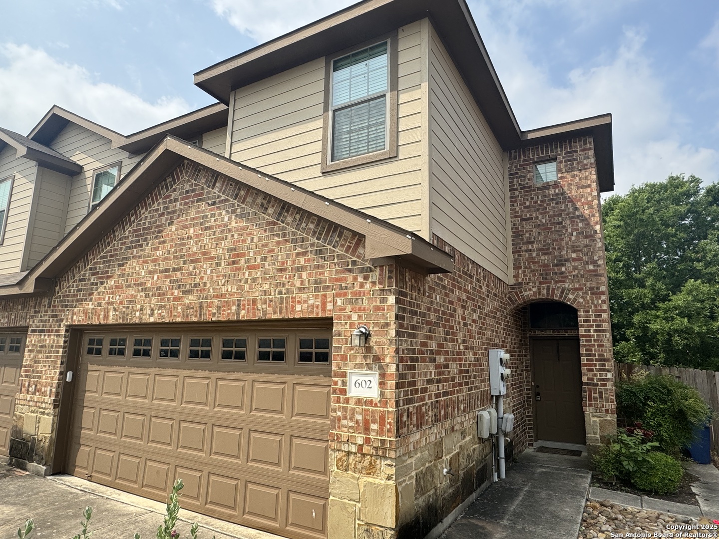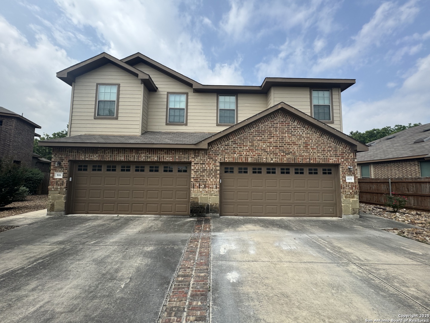 Move-In incentive of $400 off 2nd month's rent. This charming two-story duplex on Creekside Circle offers a blend of modern amenities and convenient location. The front yard is thoughtfully designed with xeriscaping. Inside, the downstairs features stylish wood like tile flooring throughout, creating a cohesive and stylish look. The eat-in kitchen is a highlight, equipped with black appliances, an island and tiled countertops, all overlooking a spacious living room-ideal for both everyday living and entertaining. Upstairs, you'll find the primary bedroom complete with walk-in closet, and a full bath featuring a tub/shower combo and double vanity. The secondary bedrooms are generously sized, accompanied by a full bath and a convenient laundry room closet. The covered back porch provides a relaxing outdoor space, and the private backyard is the perfect size for easy maintenance. Additional amenities include a two-car garage with garage door opener, ensuring secure and convenient parking. Located with easy access to Creekside Shopping, you're minutes away from a variety of shops, Buc-ee's, entertainment options, and restaurants. The proximity to IH-35 make commuting and traveling straightforward and hassle-free. **Fridge will be furnished upon request**