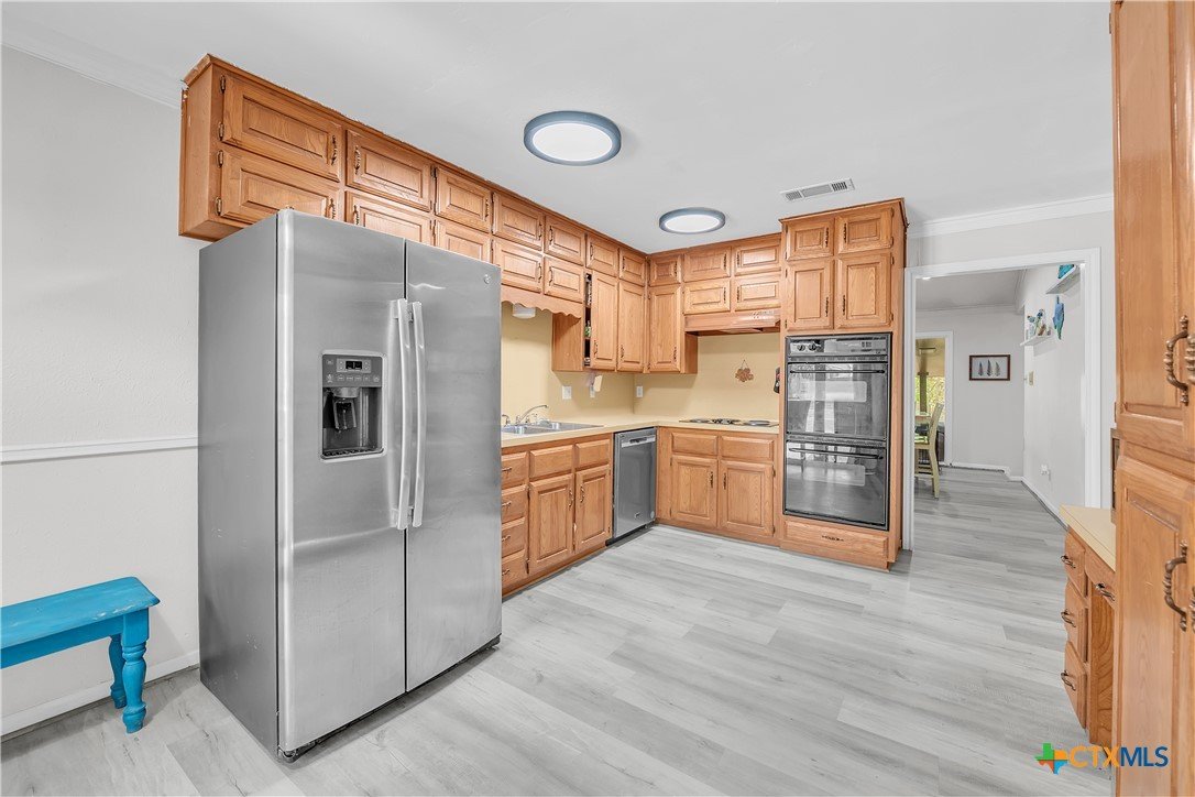 Unique home located in Harker Heights. Close to golf course. Easy access for shopping, Located just minutes from Harker Heights center where entertainment, dining, and shopping await. Easy access for travel to work and recreation. Home was built for enjoying off time. Large rooms, complete with a cook's kitchen , enclosed patio, and spacious dining room and family area. Two fireplaces , one in the family room and a fireplace in master. It offers so many opportunities for getting together with family and friends but built in such a way that self care alone time is easy with all of the space provided. New laminate flooring in many areas of home. Landscaped, trees, and more.