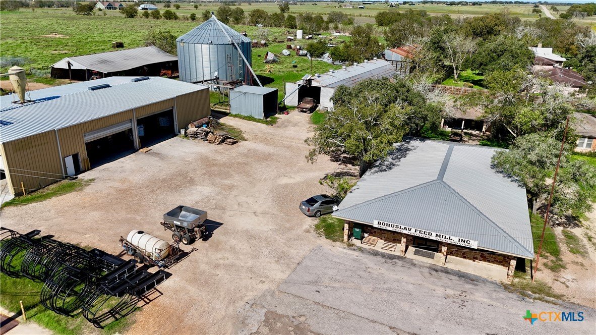 The Bohuslav Feed Mill has been manufacturing and producing agricultural products and feed since 1947. Originally founded in 1946 as a General Store and Gas Station, the Bohuslav Family purchased it in 1947 and expanded it to include a cotton gin and corn mill. It operated in that capacity until the late 1980s, and the Feed Mill and Store are still in operation today, providing all of your agricultural needs. Ideally located at the intersection of FM 532 and FM 1295 in Lavaca County, this area is rich in the cattle and farming industry, and agriculture has been and continues to be a large part of the way of life for the surrounding communities and the local economy. The mainstay of the property is the feed mill building which is approximately 6,000 SF under roof with concrete floors and includes a Fords feed mill manufactured by Myers Sherman Co. in Streator, Illinois 1956. The mill has been overhauled and is well maintained. The Mill building also includes 7-2019 hopper bottom bins/tanks (3-2000 Bushel & 4-1000 Bushel with leg spouting and dust collection.) and is also connected to a 50,000 bushel (48 ft, 8 ring) corrugated steel grain bin by overhead auger. The other 2 significant assets to the property are the liquid fertilizer station and the 3000 sq ft store, originally the start of the landmark operation back in 1946. The sale includes the full-time business, working inventory and commodities in storage. Additional Information: • 30x120 Quonset building for storage with overhead auger system • 40X90 warehouse for storage of grain • 45x90 equipment storage shop • 40x35 shop building • 30x30 equipment storage shop • Liquid fertilizer station with 5 fiberglass storage tanks with load out system • Tank 1-150,000 gal • Tank 2- 22,000 gal • Tank 3- 55,500 gal • Scale house (150 sq ft) with 2018 scale (serviced by Bastrop Scale in 2018) • Water well and private septic • Sale includes all working inventory and commodities in storage (upon request)