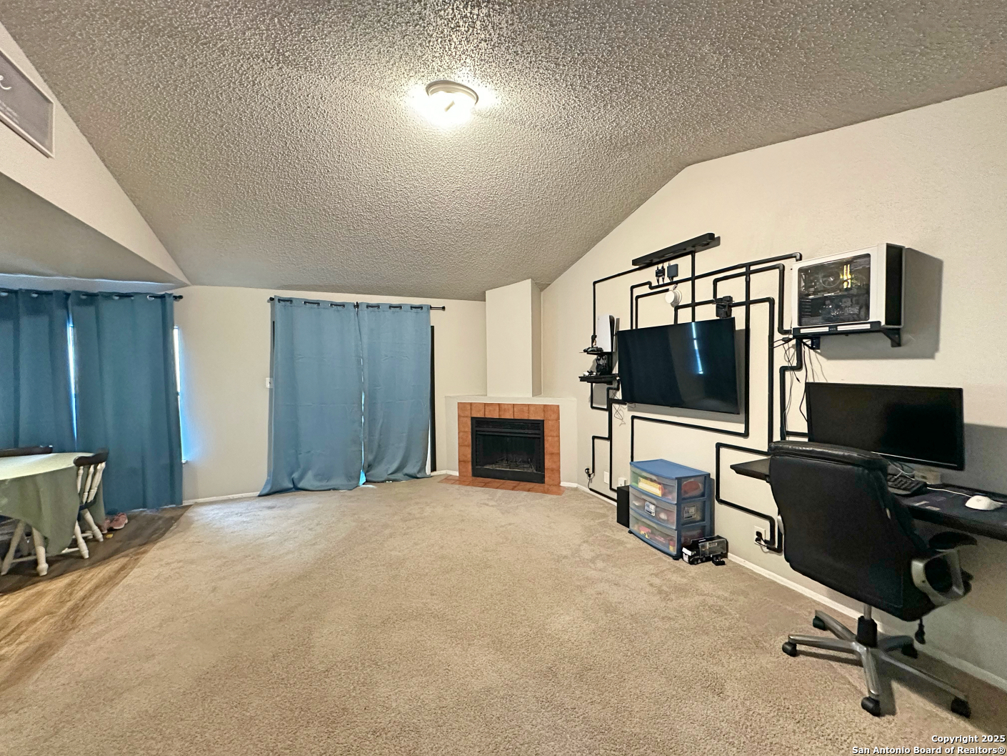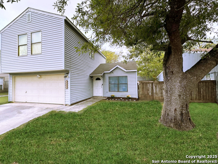 This charming two-story home is move-in ready and offers a comfortable living space. Step inside the living room featuring a cozy fireplace perfect for cool evenings. A convenient pass-through connects the kitchen to the separate dining room, making mealtime effortless. Upstairs, you will find a convenient loft, three comfortable bedrooms, and two bathrooms. Outside, the backyard boasts a spacious lawn and a covered patio, offering plenty of room for relaxation or outdoor activities. The front yard also provides plenty of space for relaxation under the large shade tree and features a partial fence for security. Don't miss the opportunity to make it yours.