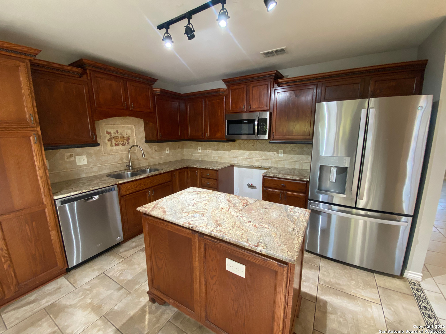 Nestled under mature trees this fabulous home proudly features gourmet kitchen well equipped with wine chiller, island, granite and appliances. Master Suite down and a big yard with shade and park-like setting. Cozy terrace off second floor study. The Best Hart Ranch has to offer. Won't last!