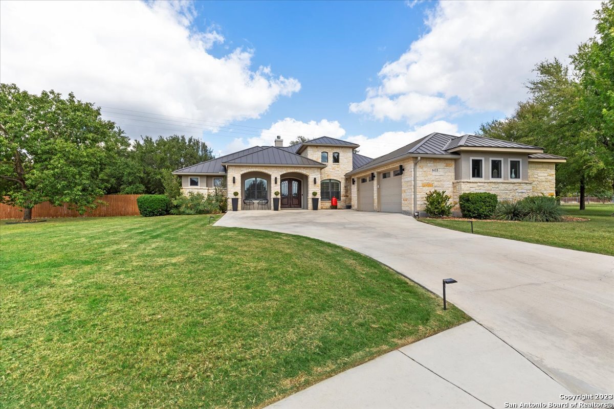 WELCOME HOME! This custom home in the gated community of Oak Creek Estates is loaded with upgrades! This open floor plan has high ceilings with gorgeous beams spanning the living room. The kitchen is stocked with granite countertops, custom cabinets and vent hood, two sinks, and stainless appliances. The owners suite, living room, and guest room all open up to the covered patio. Sit back and relax with the mature trees on over a half acre of land. The oversized, double garage with workbench is perfect for those Texas sized vehicles! Call for a showing today!