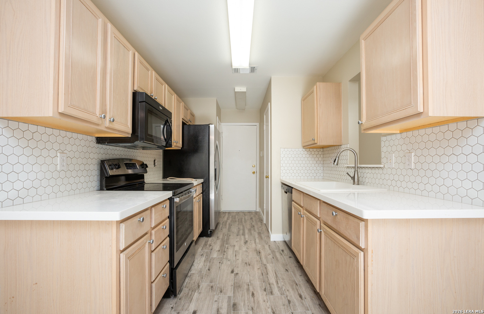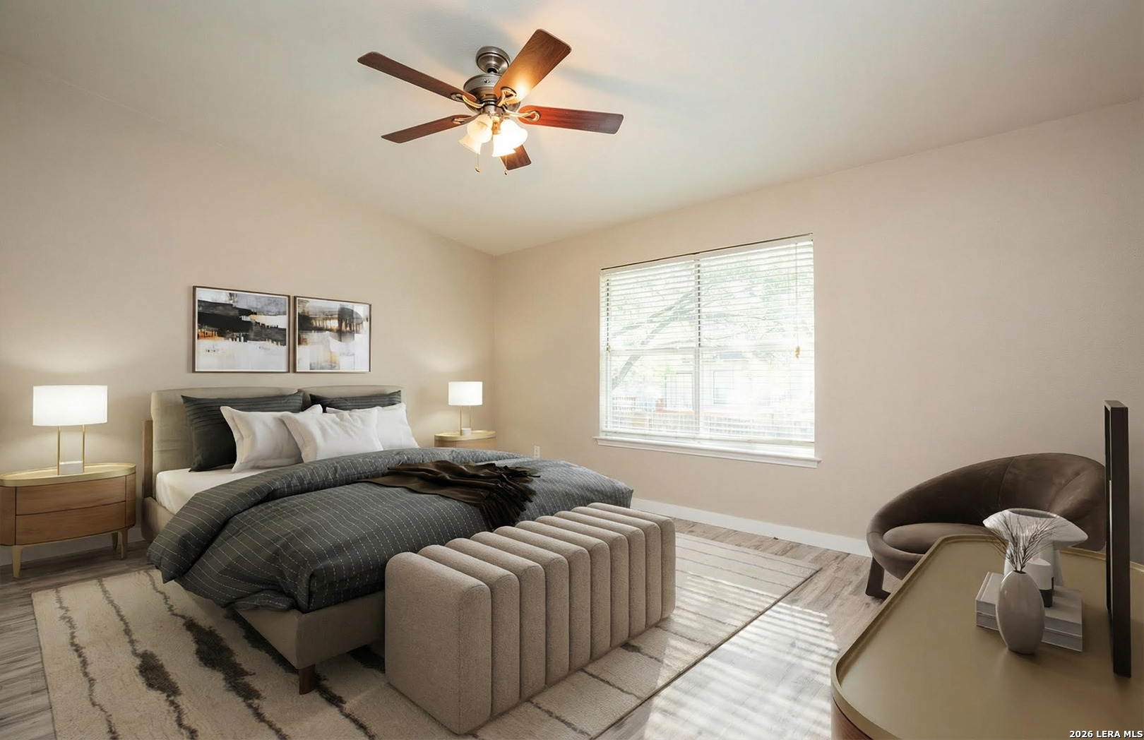Beautifully 3BR/2.5BA townhome in gated community near the Medical Center. Approx. 1,348 sq ft with functional layout featuring secondary bedroom downstairs, ideal for guests or office. Tile flooring throughout main living areas and cozy fireplace. Updated kitchen with quartz countertops, stainless steel appliances, and ample cabinet space. Spacious primary suite upstairs with additional bedroom for added privacy. Private backyard with patio, 1-car attached garage, and driveway parking. Convenient access to I-10, Loop 410, Loop 1604, USAA, UTSA, shopping, and dining. Minimum 12-month lease. Pets subject to approval.