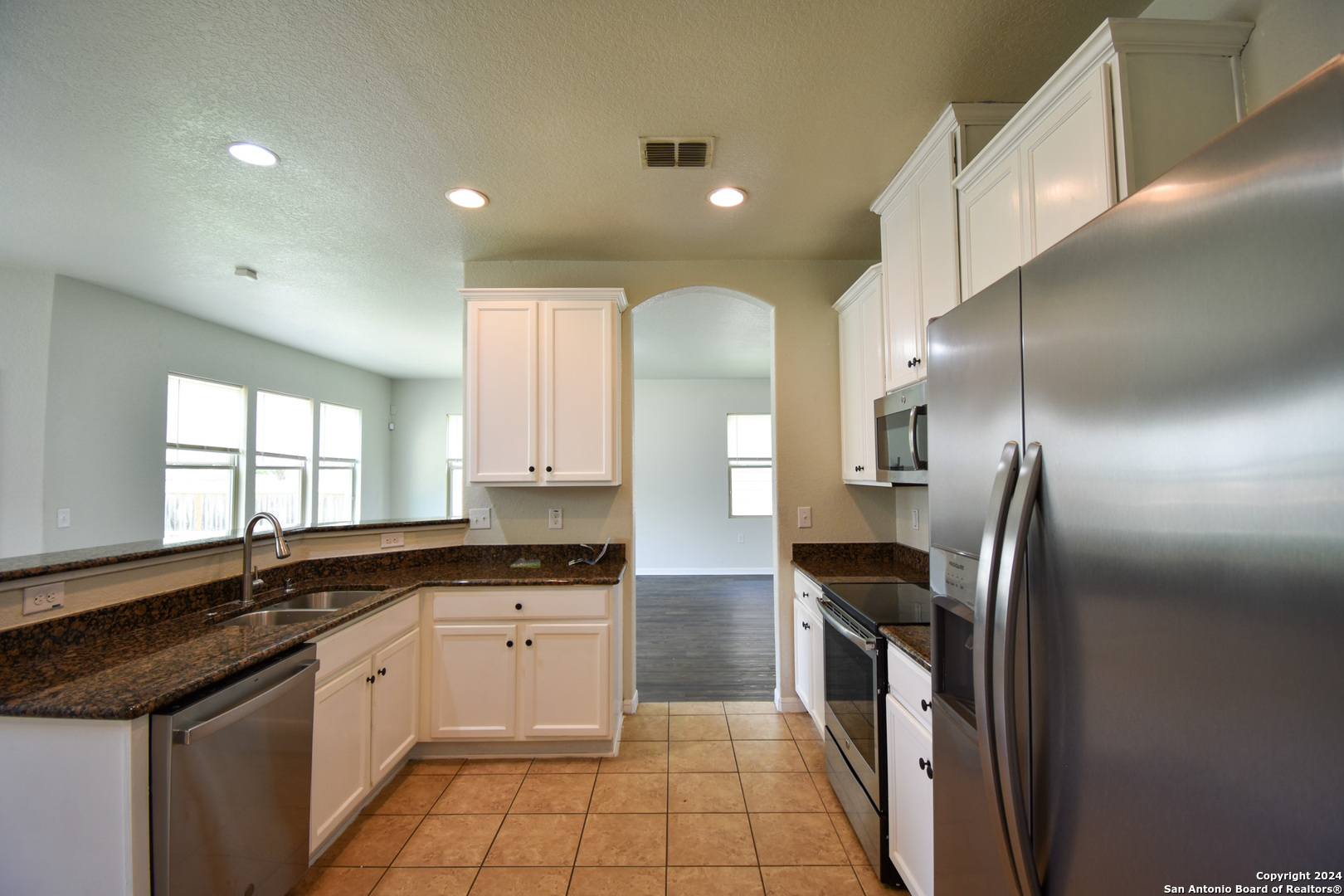 Easy application and approval. owner-managed. Solar panels = low utility bills. Step into the welcoming embrace of 6035 Enchantment, where charm meets modern elegance. This MI home greets you with a picturesque front porch and a timeless brick exterior, setting the stage for what lies within. Discover 2233 square feet of thoughtfully designed living space, where every detail has been meticulously crafted. The freshly painted interior exudes a sense of warmth and sophistication, complemented by gleaming stainless steel appliances, including a generously sized double-wide refrigerator. Indulge in the luxury of the upstairs retreat, where the expansive primary bedroom awaits. Pamper yourself in the spa-like ensuite bathroom, complete with a separate garden tub and shower, and revel in the convenience of the large walk-in closet. Outside, the sprawling lot beckons with its beautifully landscaped, expansive backyard, offering the perfect backdrop for outdoor gatherings and relaxation. And the delights of the community extend beyond your doorstep, with amenities such as a playground and scenic walking trails, catering to outdoor enthusiasts of all ages. Convenience is key in the North East Crossing community, where easy access to Interstate 35 and 410 ensures seamless commuting. Situated just a stone's throw away from Randolph Air Force Base and Fort Sam Houston, this ADA-compliant community strikes the perfect balance between accessibility and comfort.
