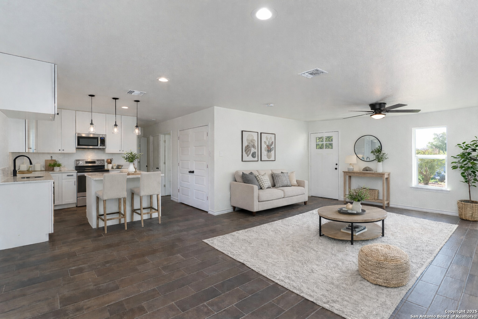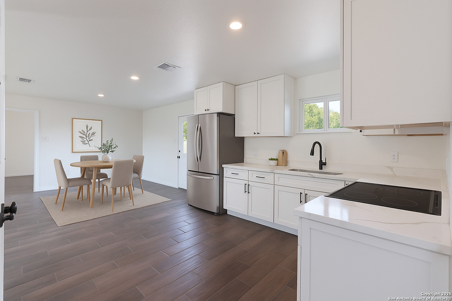 (Seller is offering up to $7,500 credit towards closing costs and covering up to $6,599.97 of the down payment which totals up to [$14,099.97] when using preferred lender). Seller is also offering Seller Finance, DUENO a DUENO. Welcome to your beautifully newly renovated 4-bedroom, 2-bath home tucked away on a quiet cul-de-sac just in time before the holidays! Offering 1,256 sq. ft. of modern living space, this home has brand new everything! (Along with a new stainless steel stove, microwave and front sod which will be installed prior to closing!) Arrive through the custom walkway and wooden front door, framed by striking stone masonry that gives the home standout curb appeal. Inside, you'll find an open layout with tile flooring throughout, a spacious living area, and a dedicated laundry room. The kitchen features all-new cabinetry and modern finishes like this beautiful marble like veining quartz countertops. The kitchen seamlessly connecting to the dining and living spaces. The primary suite is thoughtfully separated from the secondary bedrooms and offers a walk-in closet with a second mirrored space, creating a private dressing area. The spacious backyard provides plenty of room for gatherings, gardening, or relaxation. Renovated by Velar Homes, a builder known for attention to detail and quality that lasts, this property offers peace of mind along with style. Don't miss this move-in ready home with charm, thoughtful upgrades, and lasting quality!
