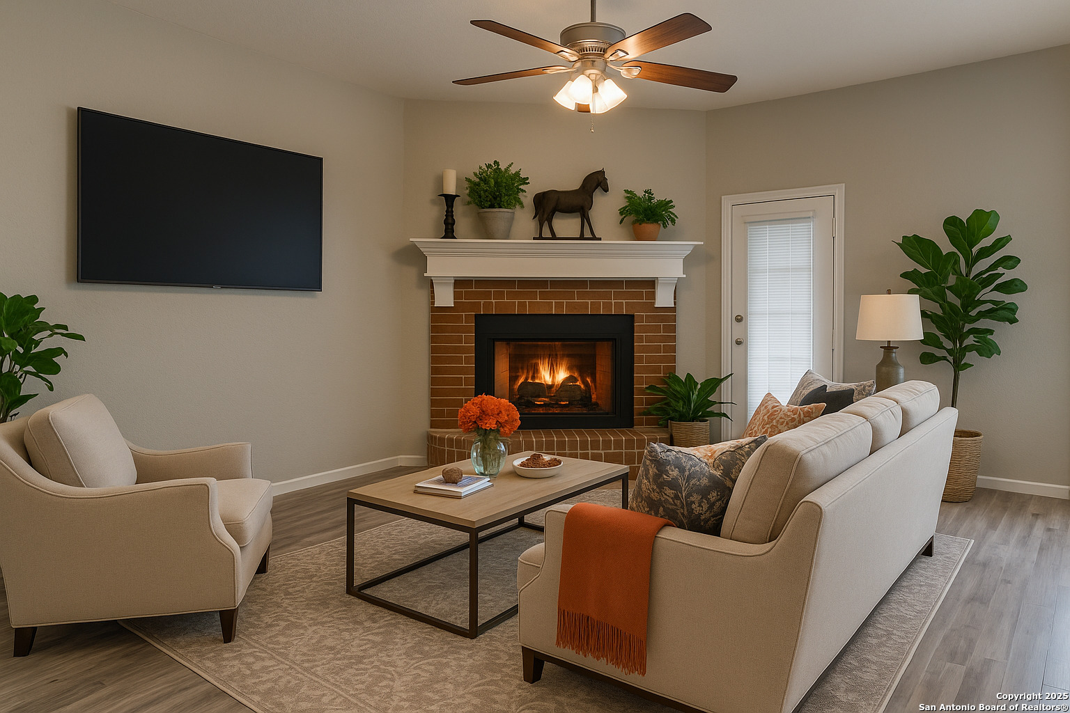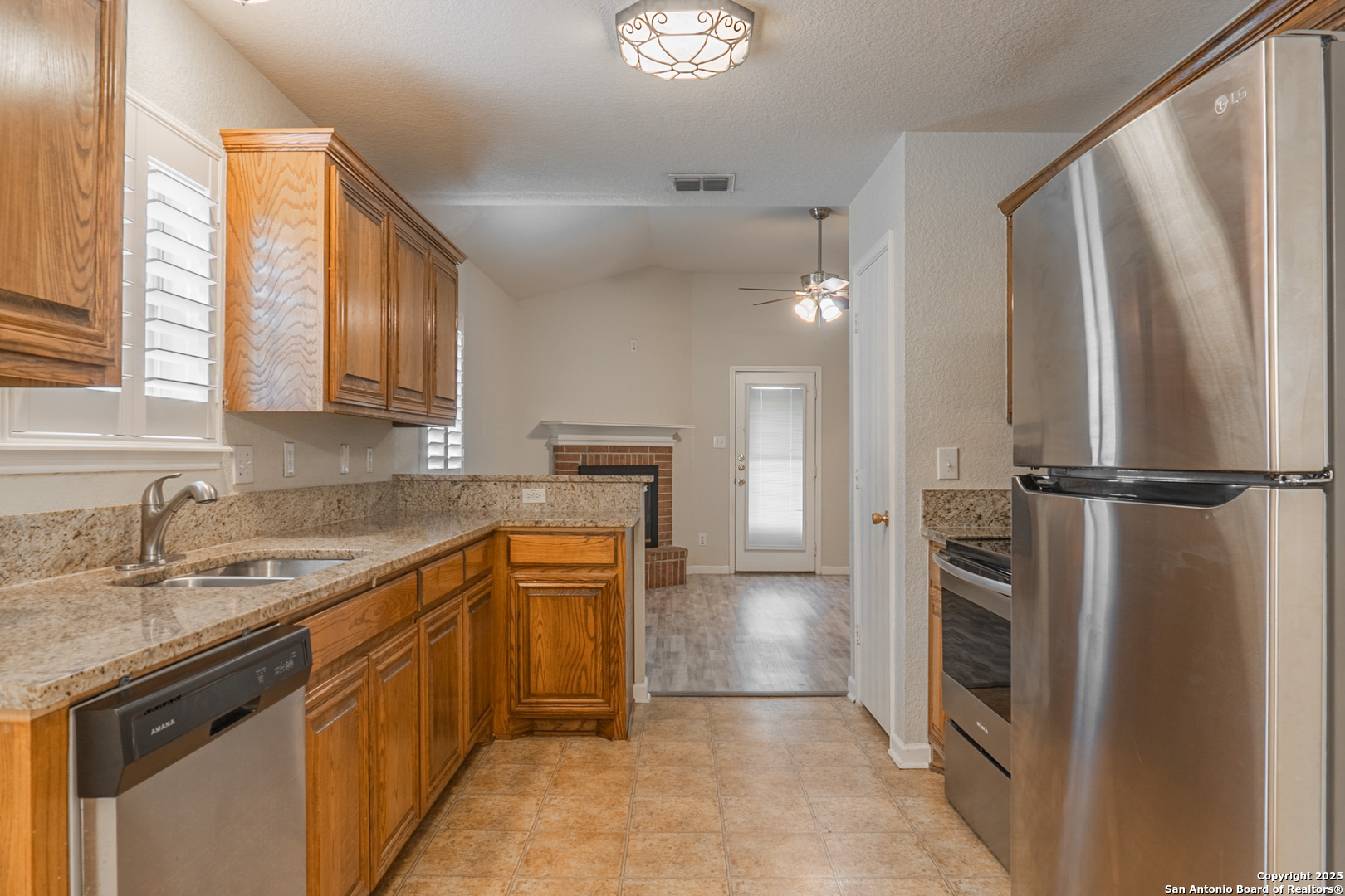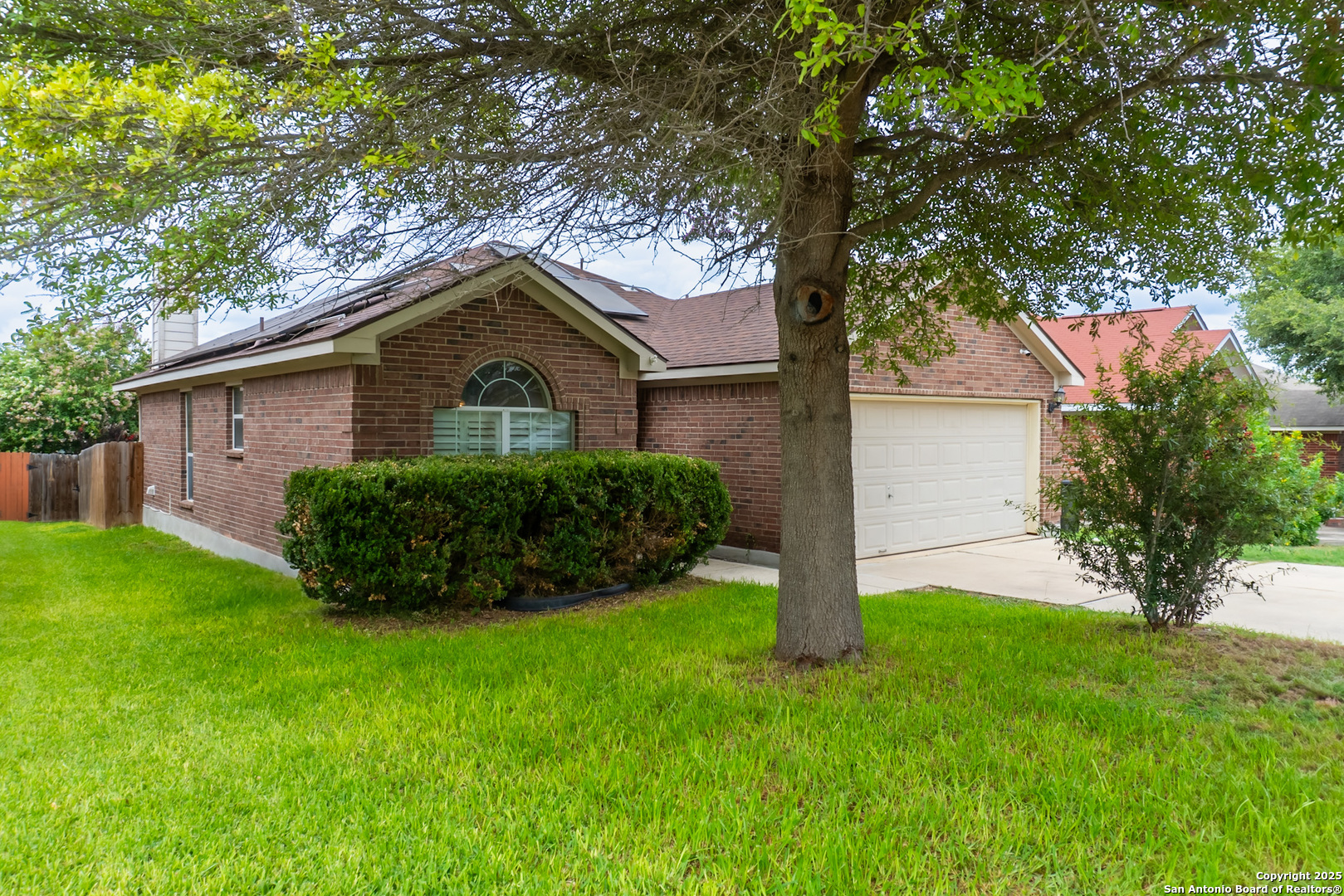 HOLIDAY MOVE-IN SPECIAL! This unbeatable deal in Foster Meadows is the perfect opportunity to secure a beautiful home before the new year. This charming single-story 3-bedroom, 2-bathroom home offers exceptional comfort, energy efficiency, and convenience. Enjoy incredibly low electric bills thanks to solar panels, along with an open and inviting floor plan featuring high ceilings, plantation shutters, no carpet, and a cozy fireplace in the living room. The spacious kitchen boasts granite countertops, stainless steel appliances, and comes fully equipped with a refrigerator, washer, dryer, and water softener making this home truly move-in ready. Each bedroom includes a ceiling fan and walk-in closet, and the primary suite offers a comfortable retreat with double vanities and a shower/tub combo. Additional highlights include a two-car garage with a garage door opener and a backyard patio with outdoor furniture, perfect for enjoying morning coffee or unwinding in the evenings. The community provides wonderful amenities such as two parks, a pavilion, picnic areas, a splash pad, and a soccer field. With easy access to major highways, and just minutes from Joint Base San Antonio (JBSA), shopping, restaurants, and schools, this home delivers both convenience and comfort. Holiday Incentive: Lease in December and receive 50% off your first full month's rent, making this an incredible opportunity to start the new year in your new home. Don't miss out, this one will go fast!