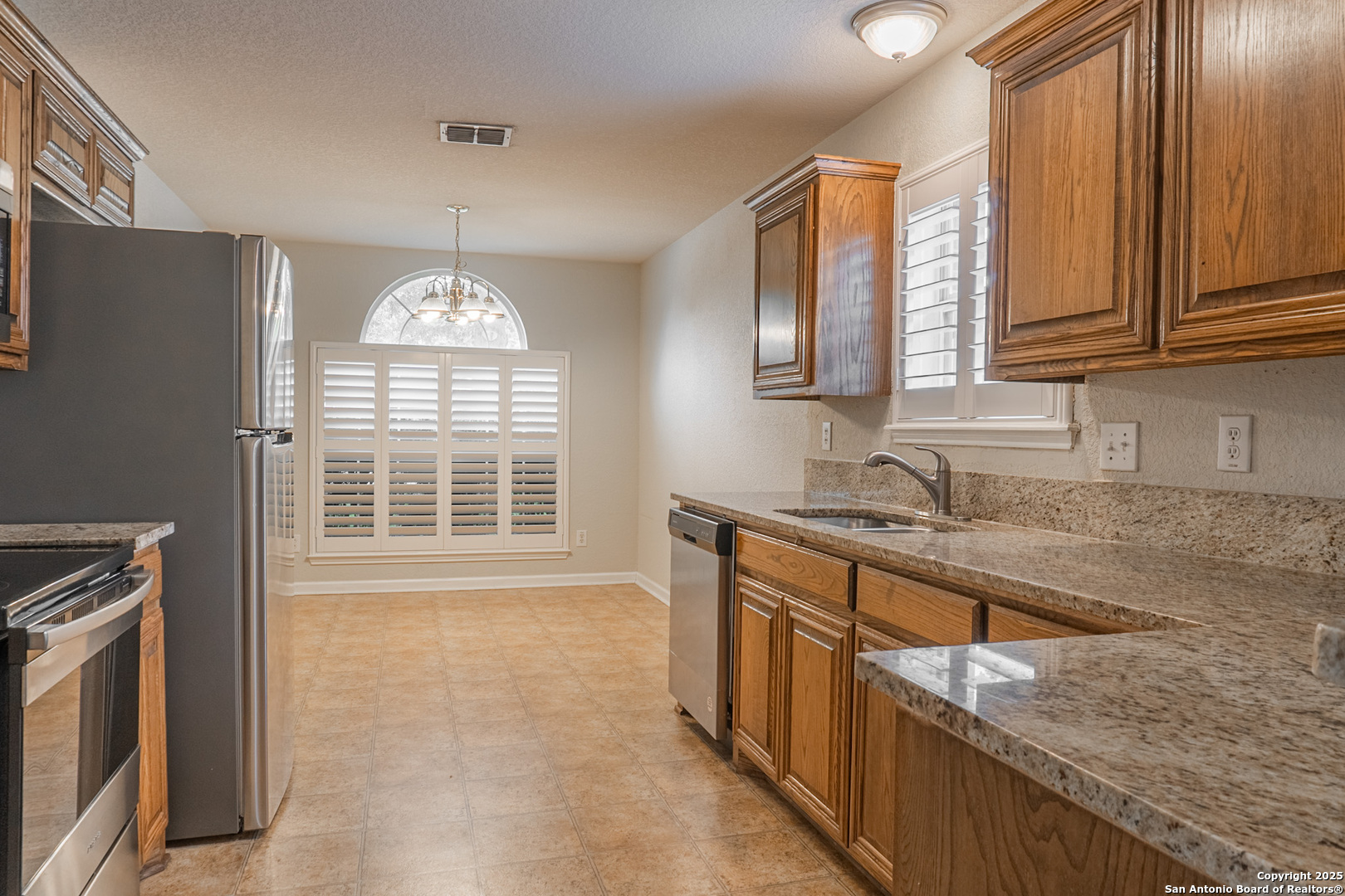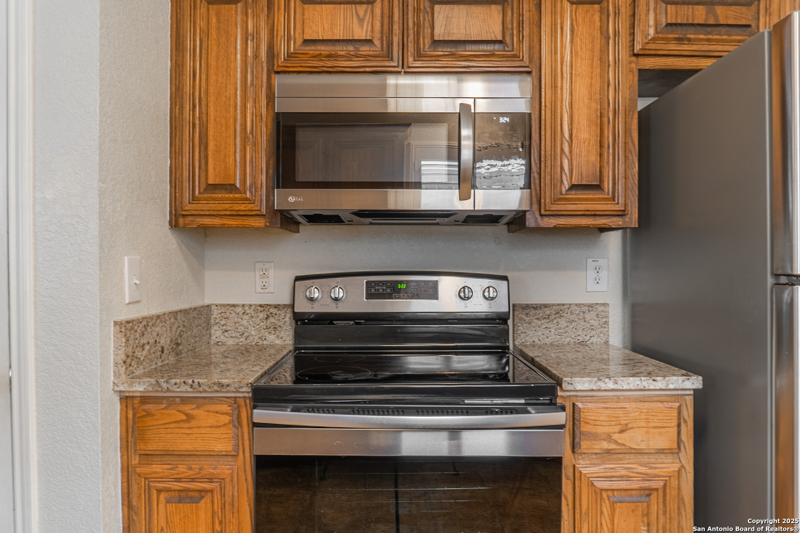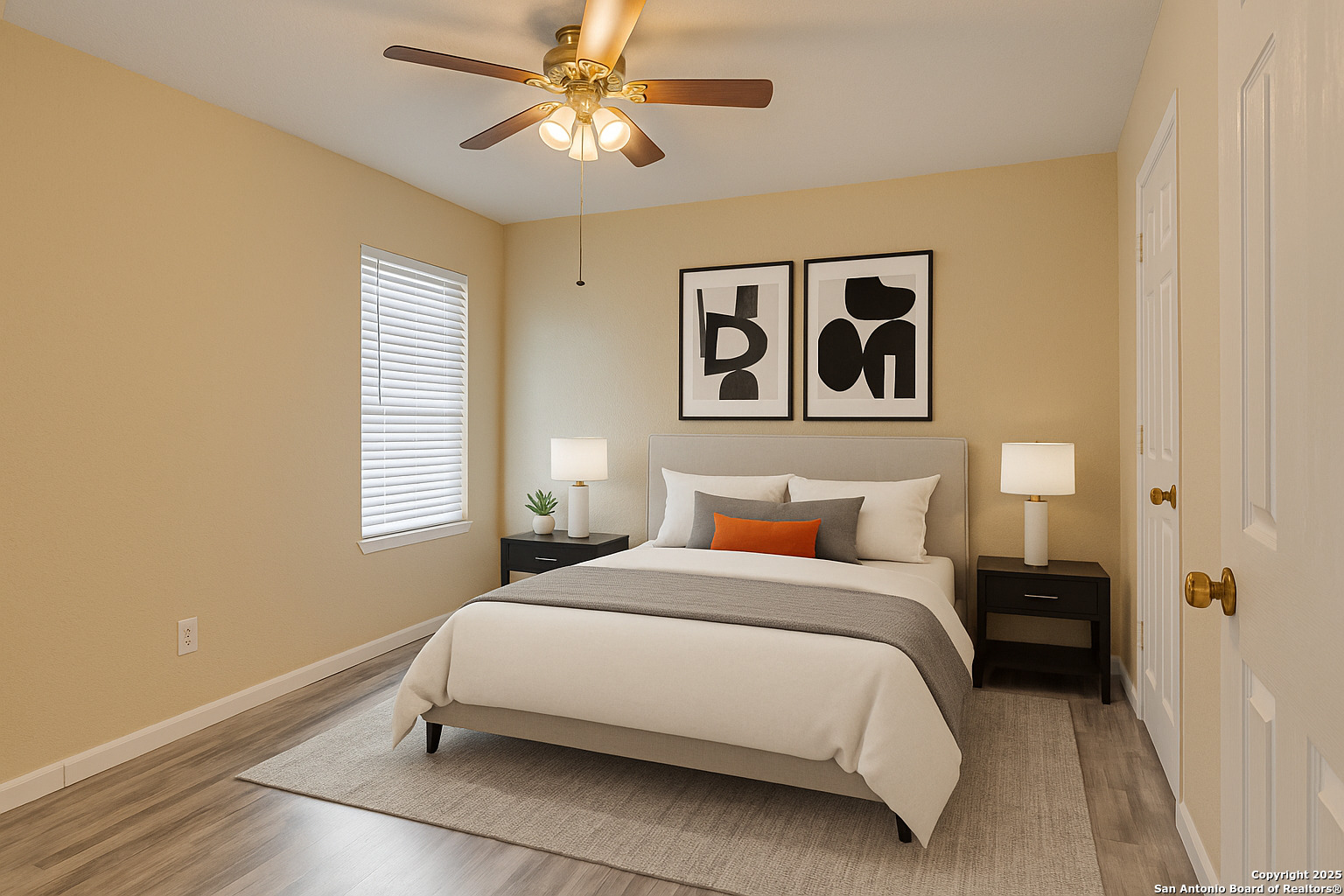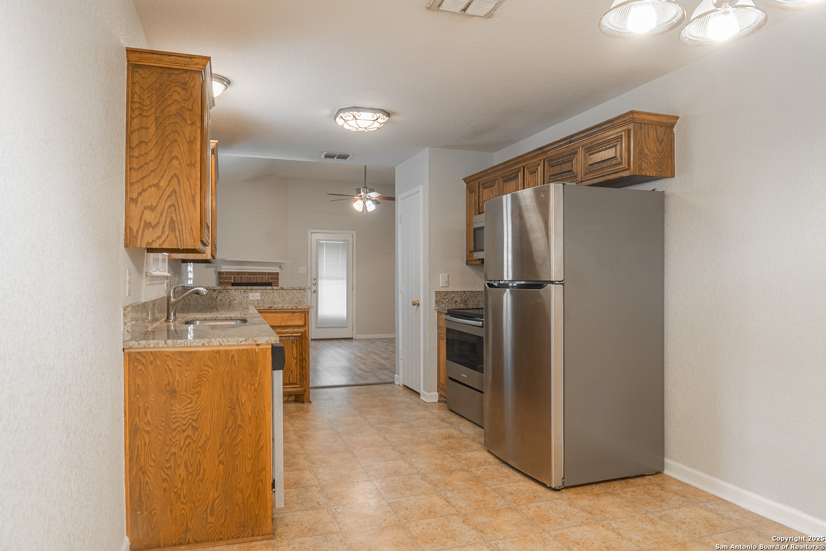 HOLIDAY MOVE-IN SPECIAL! This unbeatable deal in Foster Meadows is the perfect opportunity to secure a beautiful home before the new year. This charming single-story 3-bedroom, 2-bathroom home offers exceptional comfort, energy efficiency, and convenience. Enjoy incredibly low electric bills thanks to solar panels, along with an open and inviting floor plan featuring high ceilings, plantation shutters, no carpet, and a cozy fireplace in the living room. The spacious kitchen boasts granite countertops, stainless steel appliances, and comes fully equipped with a refrigerator, washer, dryer, and water softener making this home truly move-in ready. Each bedroom includes a ceiling fan and walk-in closet, and the primary suite offers a comfortable retreat with double vanities and a shower/tub combo. Additional highlights include a two-car garage with a garage door opener and a backyard patio with outdoor furniture, perfect for enjoying morning coffee or unwinding in the evenings. The community provides wonderful amenities such as two parks, a pavilion, picnic areas, a splash pad, and a soccer field. With easy access to major highways, and just minutes from Joint Base San Antonio (JBSA), shopping, restaurants, and schools, this home delivers both convenience and comfort. Holiday Incentive: Lease in December and receive 50% off your first full month's rent, making this an incredible opportunity to start the new year in your new home. Don't miss out, this one will go fast!