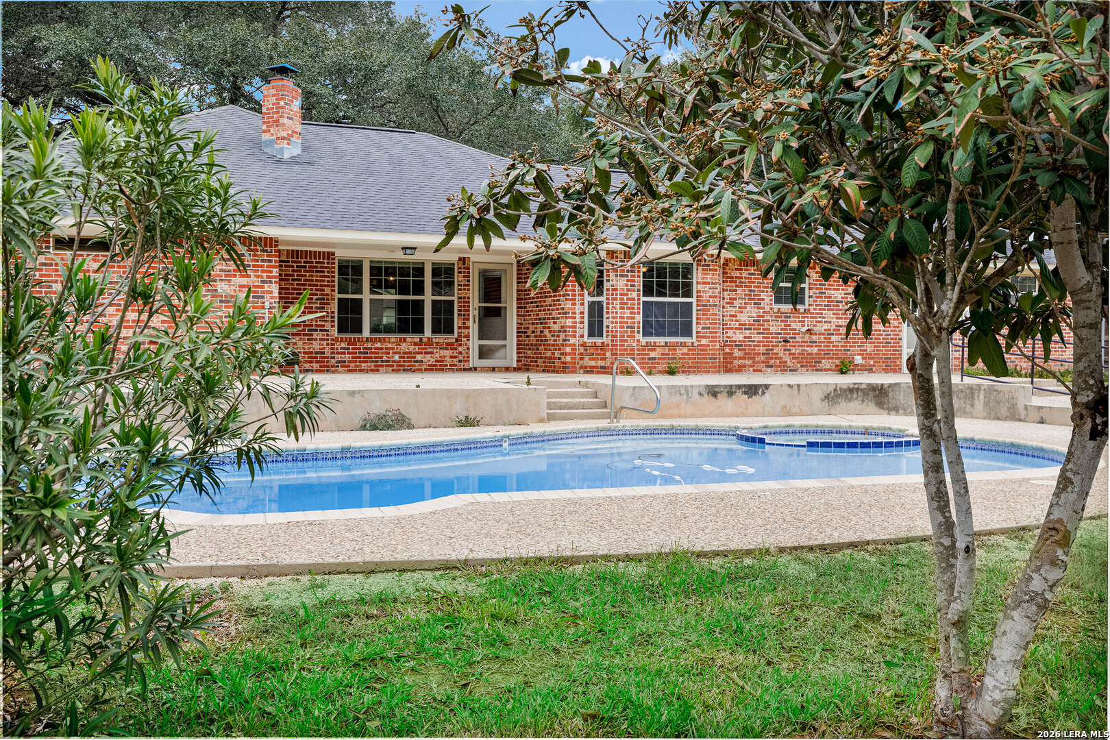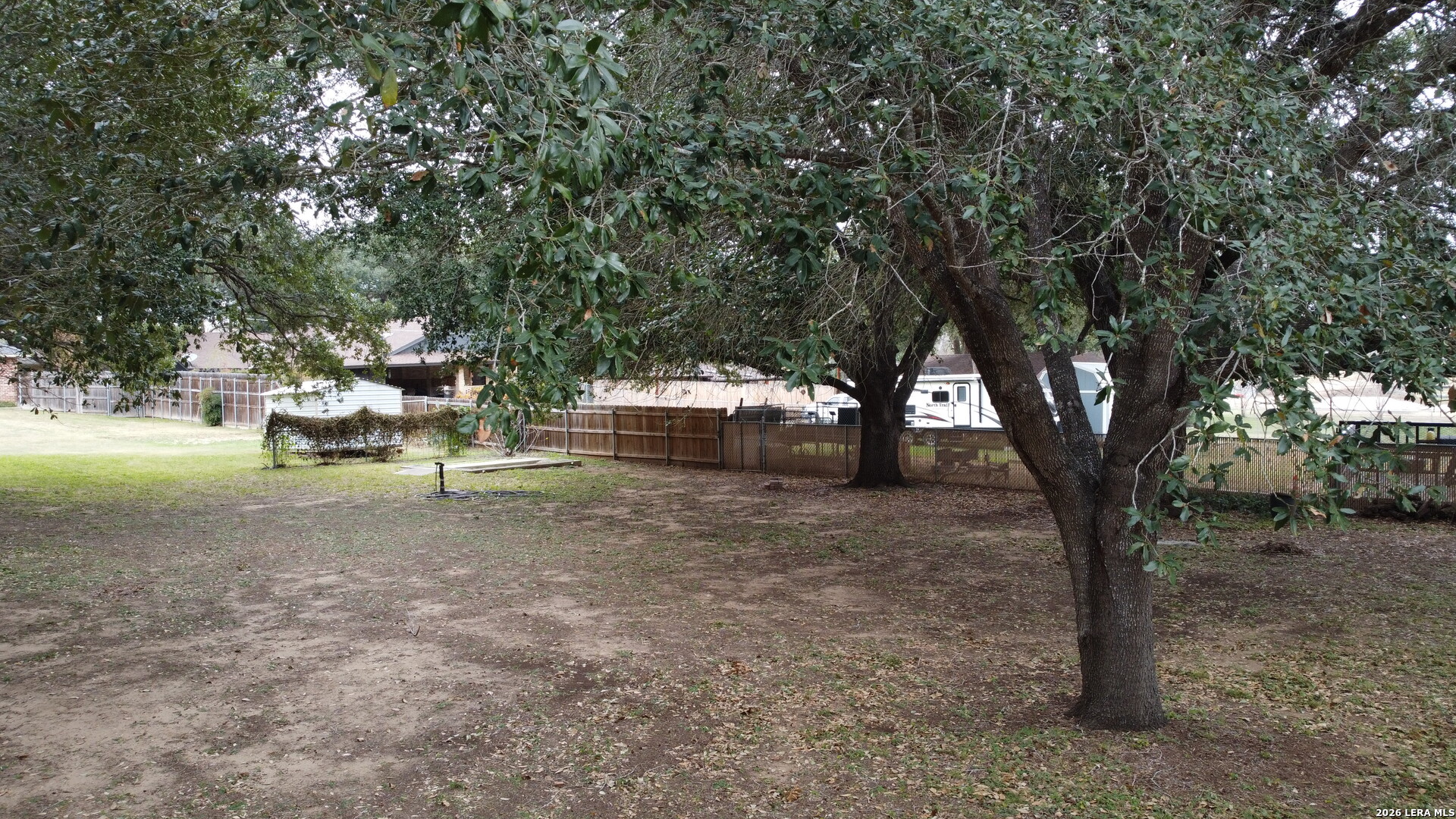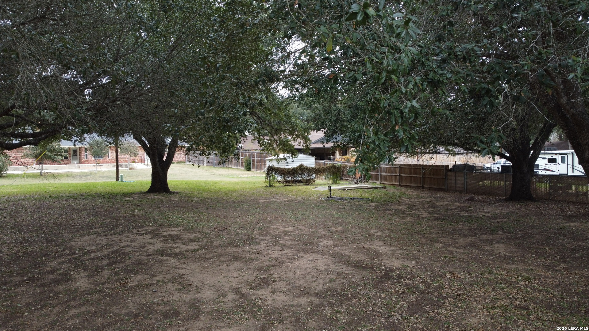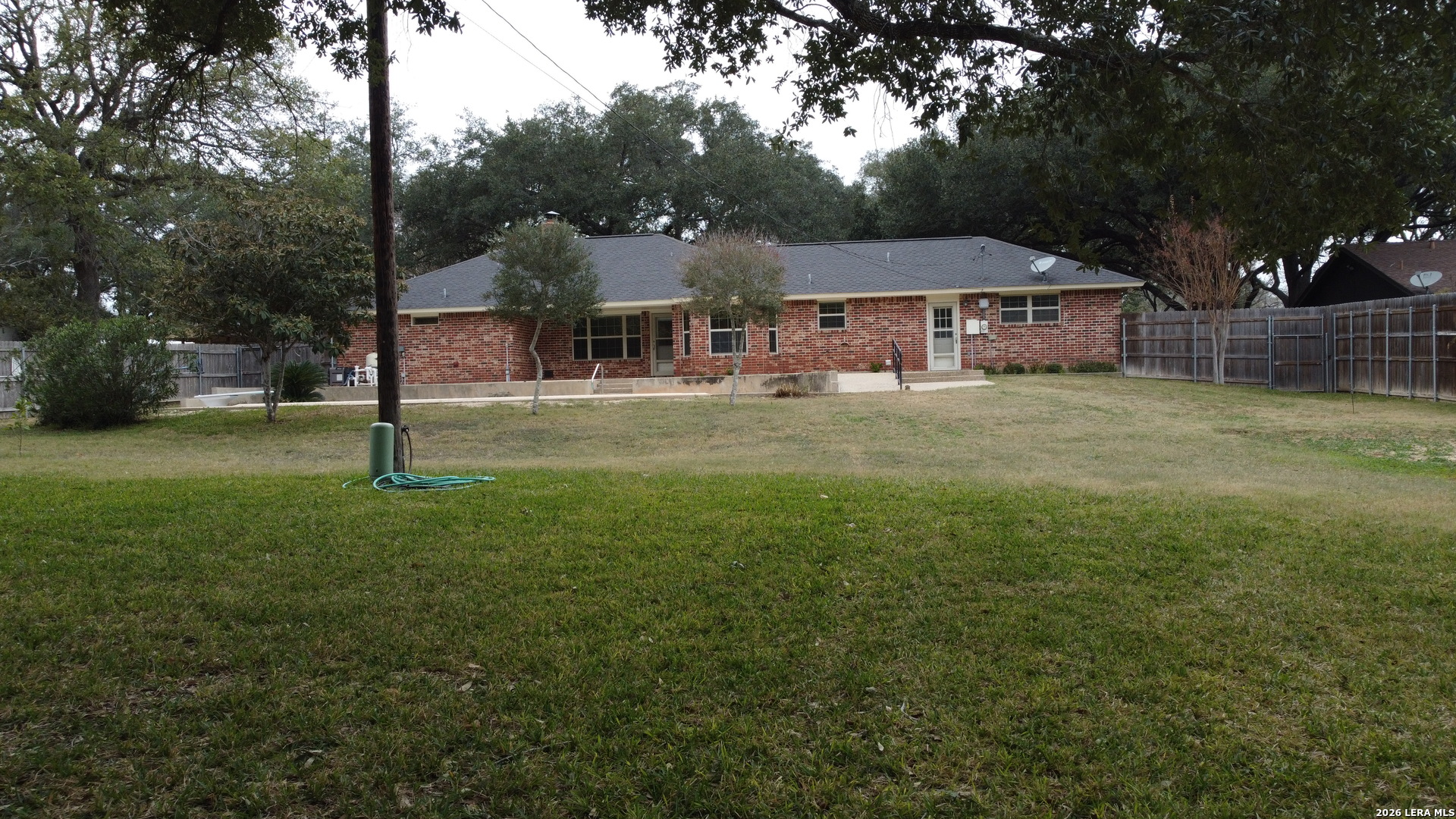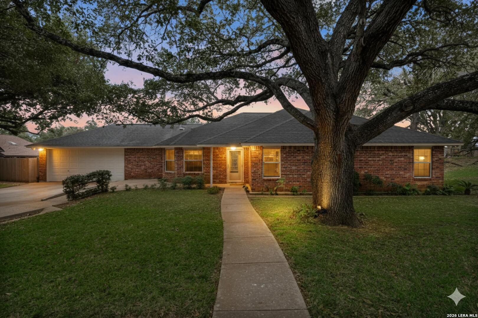 Welcome to 604 Elm Street with it's massive Live Oak treed lots at the edge of Floresville. One large tree in the front yard and 7 more in the rear yard area, Conveniently located to downtown and the movie theater and to all of Floresville via Hospital Boulevard (FM 97), less than 1 mile to the Floresville City River Park and the Floresville Event Center on FM 97! The home features 3 bedrooms and 2.5 bathrooms, a dining room and separate breakfast area overlooking the inground Pool and adjoining hot tub! This listing has two .36 acre lots, one fronting on FM 97 and the other fronting Elm Street and has massive Live Oak trees to cool the home in the summer time heat. The home features upgraded baseboards, crown molding, wainscoting, Oak flooring, custom Oak cabinetry, tile kitchen back splash, ceramic flooring, a kitchen pass through to the living room, a corner, Brick wood burning fireplace with a gas starter, a UV Black light in the AC system to reduce the effects of mold for those sensitive to mold & a Wi-Fi, programmable thermostat. A new gas water heater was installed recently and the Low-E windows were installed in 2016. The garage has an insulated door with a keypad on the outside, a large storage closet and a separate exterior door leading to the rear yard. The laundry room has a utility sink in a cabinet for presoaking, if needed. Recent tile work in the bathroom tub surround's complement all of the upgrades added over time to this home. Pride of ownership and craftmanship show throughout the home. The rear yard is complete fenced with wood, privacy fencing & chain link fencing with lattice work added to the fence for privacy. There is a garden area, a small shed for storage, double gates to FM 97, allowing for the storage of extra vehicles underneath the trees. The home features natural gas cooking, gas water heat and gas water heater. The exterior of the home is practically maintenance free as all four sides of the home are brick.
