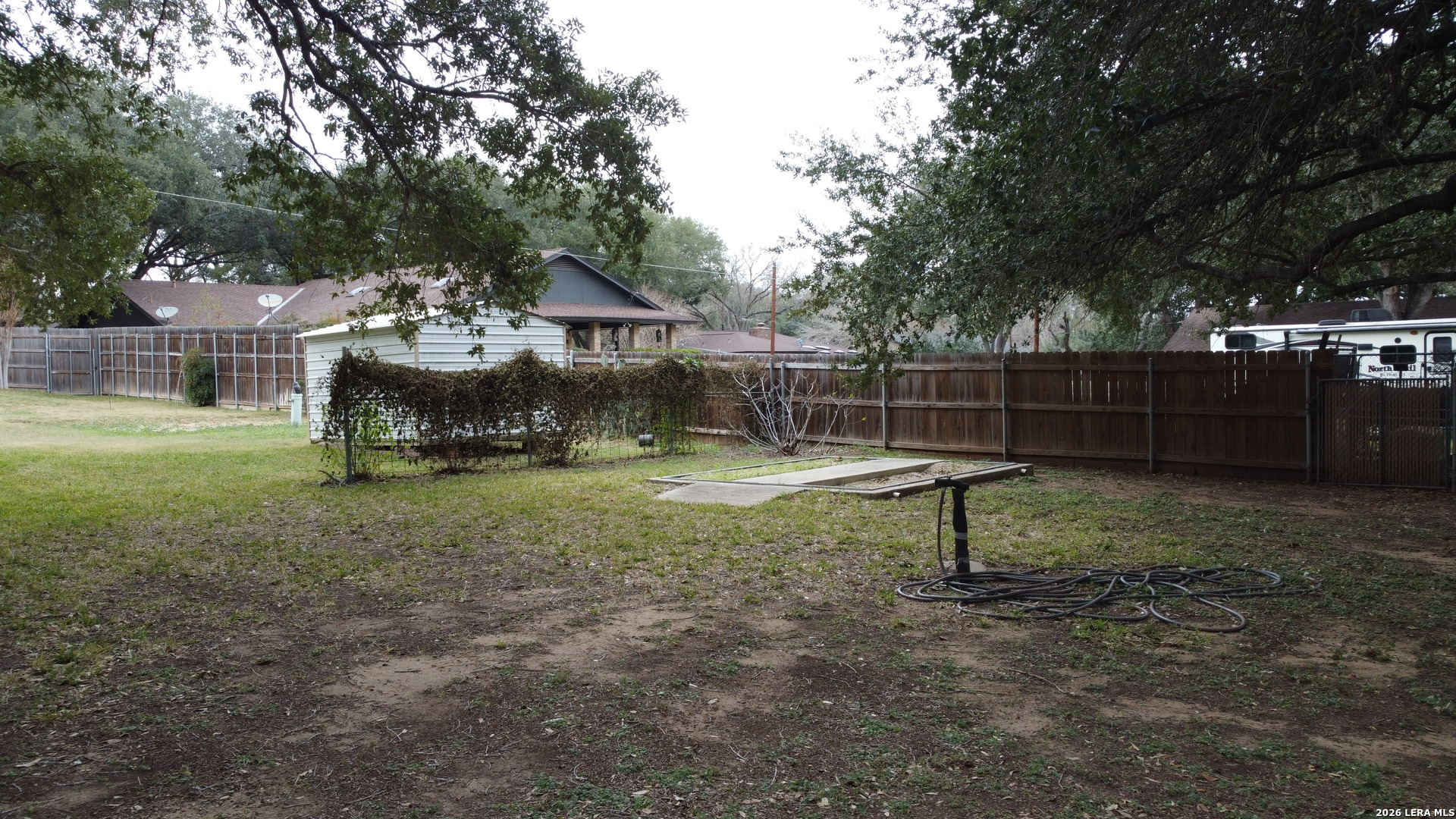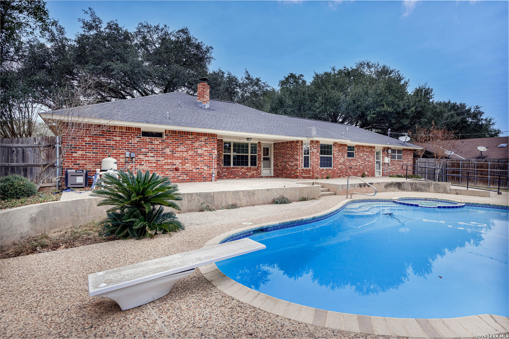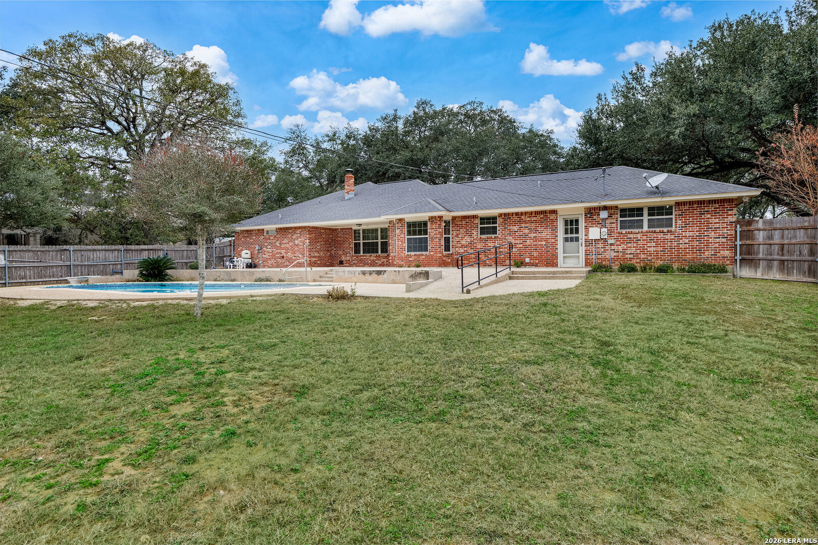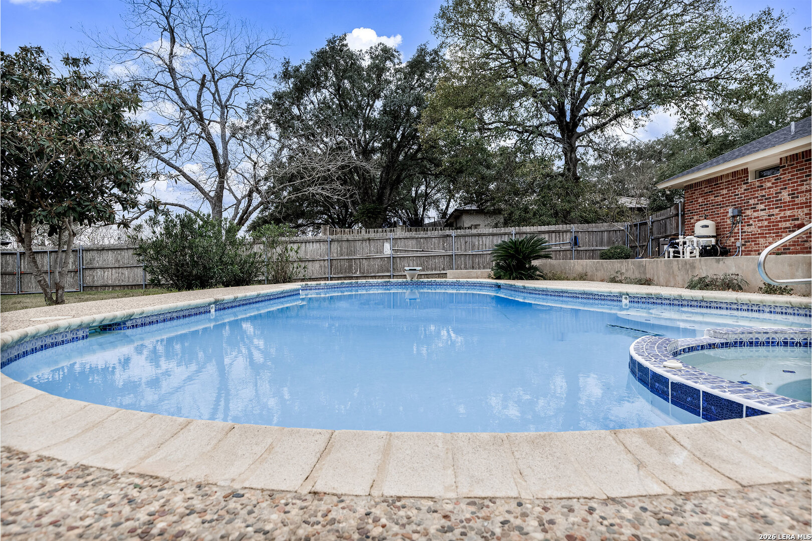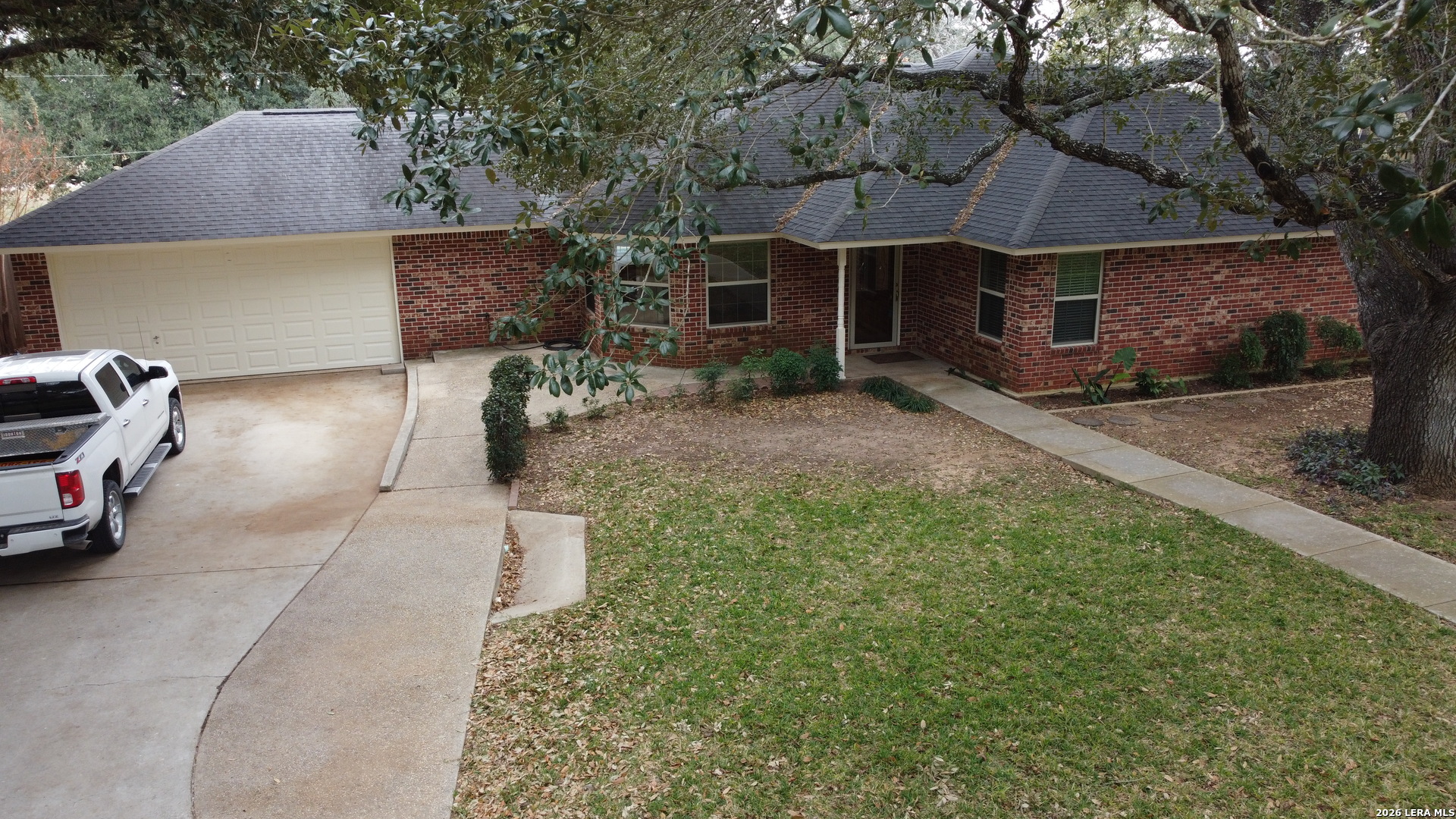 Welcome to 604 Elm Street with it's massive Live Oak treed lots at the edge of Floresville. One large tree in the front yard and 7 more in the rear yard area, Conveniently located to downtown and the movie theater and to all of Floresville via Hospital Boulevard (FM 97), less than 1 mile to the Floresville City River Park and the Floresville Event Center on FM 97! The home features 3 bedrooms and 2.5 bathrooms, a dining room and separate breakfast area overlooking the inground Pool and adjoining hot tub! This listing has two .36 acre lots, one fronting on FM 97 and the other fronting Elm Street and has massive Live Oak trees to cool the home in the summer time heat. The home features upgraded baseboards, crown molding, wainscoting, Oak flooring, custom Oak cabinetry, tile kitchen back splash, ceramic flooring, a kitchen pass through to the living room, a corner, Brick wood burning fireplace with a gas starter, a UV Black light in the AC system to reduce the effects of mold for those sensitive to mold & a Wi-Fi, programmable thermostat. A new gas water heater was installed recently and the Low-E windows were installed in 2016. The garage has an insulated door with a keypad on the outside, a large storage closet and a separate exterior door leading to the rear yard. The laundry room has a utility sink in a cabinet for presoaking, if needed. Recent tile work in the bathroom tub surround's complement all of the upgrades added over time to this home. Pride of ownership and craftmanship show throughout the home. The rear yard is complete fenced with wood, privacy fencing & chain link fencing with lattice work added to the fence for privacy. There is a garden area, a small shed for storage, double gates to FM 97, allowing for the storage of extra vehicles underneath the trees. The home features natural gas cooking, gas water heat and gas water heater. The exterior of the home is practically maintenance free as all four sides of the home are brick.