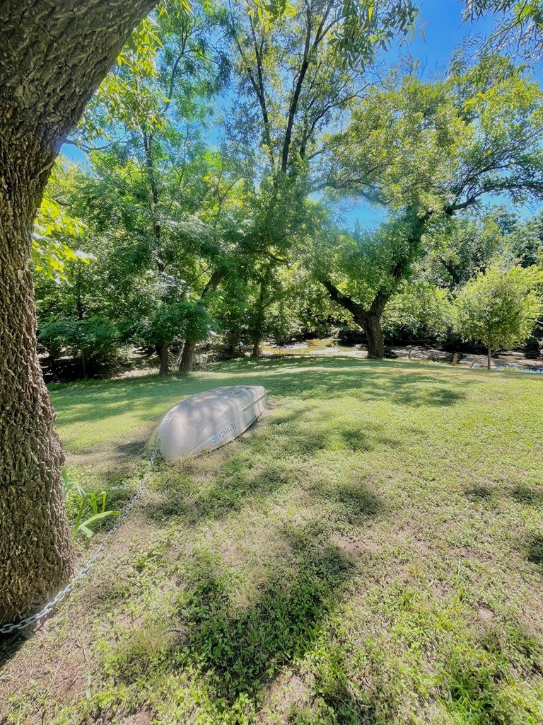 Tranquil, meticulous home nestled on peaceful Flag Creek! This home features 3 bedrooms & 2 1/2 baths with the primary suite on the bottom floor. Off the primary suite is a cozy sun room where you can take in all the breathtaking views of Flag Creek & the park like nature setting that surrounds this beautiful home! Imagine walking out your back door to fish, wade your feet in the water or just sit &soak up the quiet Hill Country evenings as you sit around the fire pit! The .95 ac property featuring the home, also comes with the additional 1.14 property across the creek totaling the entire 2.1 ac estate & may be purchased separately. This one is a must see!