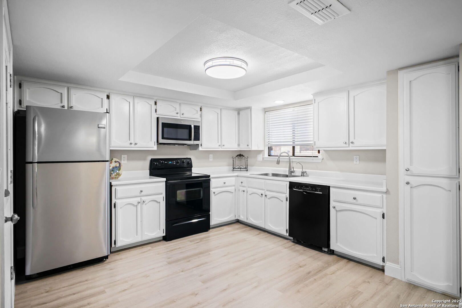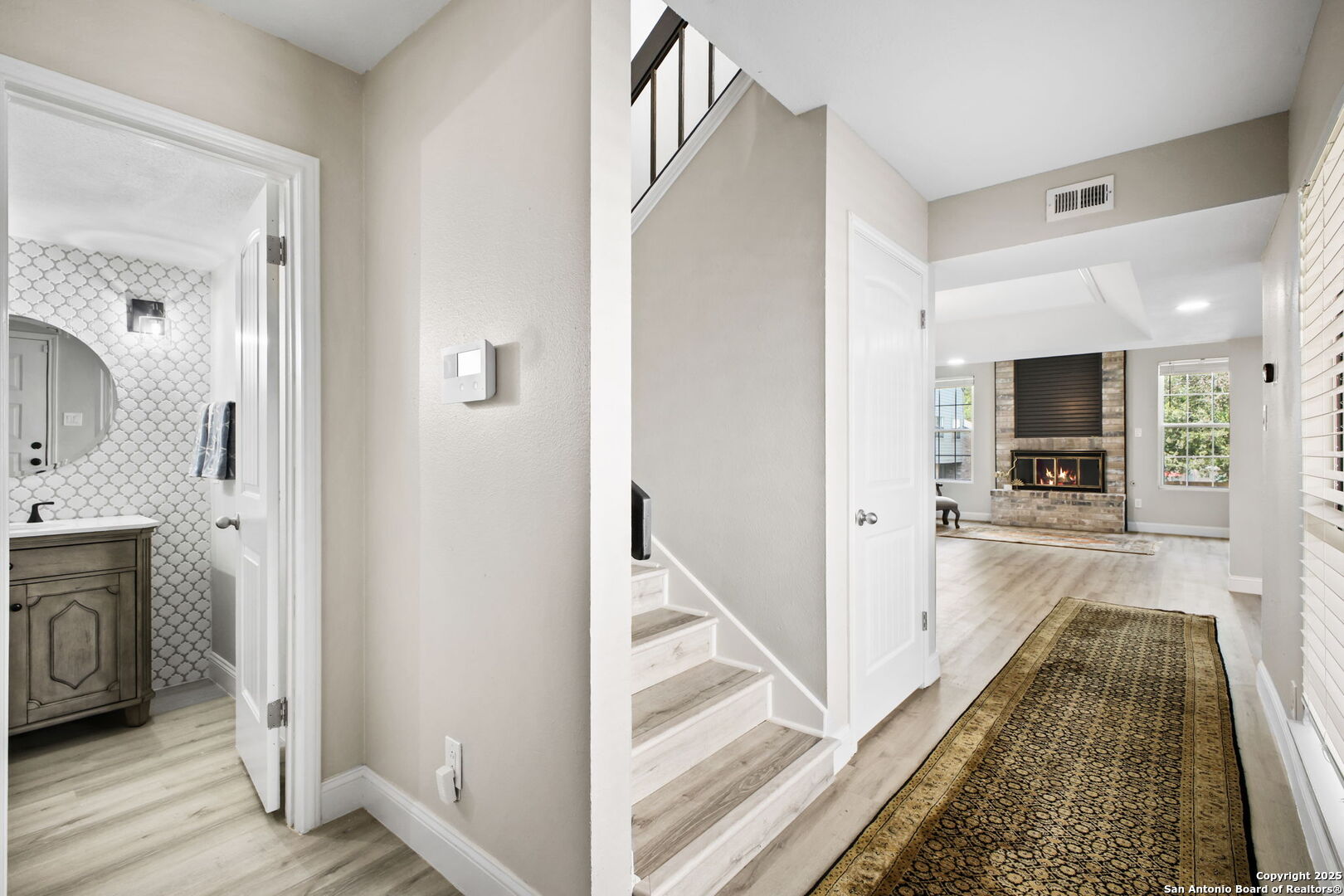 Welcome to 6041 Glen Heather at The Retreat at Glen Heather! This beautifully updated 3 bedroom, 2.5 bath townhouse offers 1,568 sq. ft. of stylish living space in one of San Antonio's most convenient locations. Situated on a zero lot line for low-maintenance living, this home is packed with modern updates, turn-key features and a 1 year old HVAC unit for peace of mind. The exterior has been refreshed with a new coat of paint. Step inside and you'll also find fresh interior paint, updated vinyl flooring, and energy-efficient LED lighting throughout along with a gas/log burning fireplace. The spacious bottom floor layout includes an inviting living area and a fully remodeled half bath. All updated ceiling fans and fully equipped with all kitchen appliances. Washer and dryer will also convey with the property as a plus! As well as it's own private 2 car-garage and driveway for extra parking. Upstairs, you'll find three generously sized bedrooms, including a relaxing owner's suite with a private bath. Retreat at Glen Heather offers excellent amenities covered by the HOA, including pool access, sports court, and front yard lawn cutting-so you can enjoy the perks of homeownership without the extra work. Perfectly positioned near several hospitals in the Medical Center, UTSA, and a wide array of dining and shopping options, this turnkey townhome combines modern updates with unbeatable convenience.