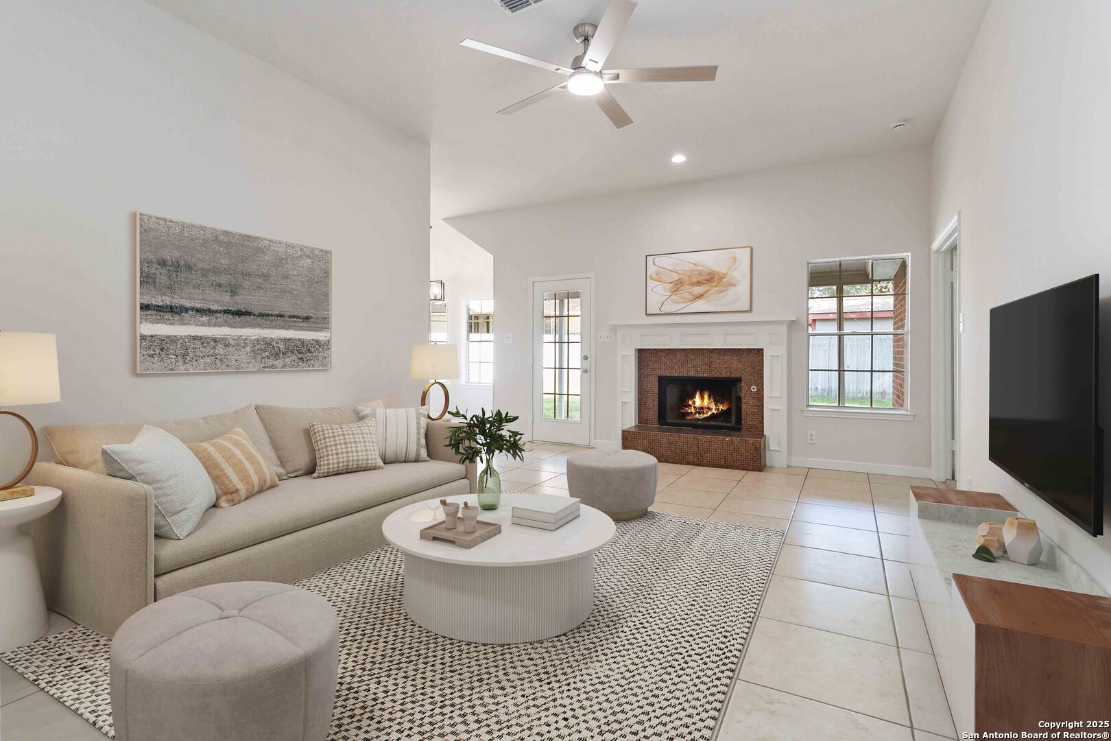 Just Renovated & Move-In Ready! This 3 bed, 2 bath, 1,622 sq. ft. home shines with fresh paint, new fixtures, updated flooring, and quartz counters in the primary bath. New attic insulation and duct work installed March 2025. Enjoy a cozy fireplace, light-filled living spaces, two dining areas, and a 2-car garage on a quiet cul-de-sac. Conveniently located near USAA, UTSA, the Medical Center, shopping & top Northside schools-this one feels brand new!