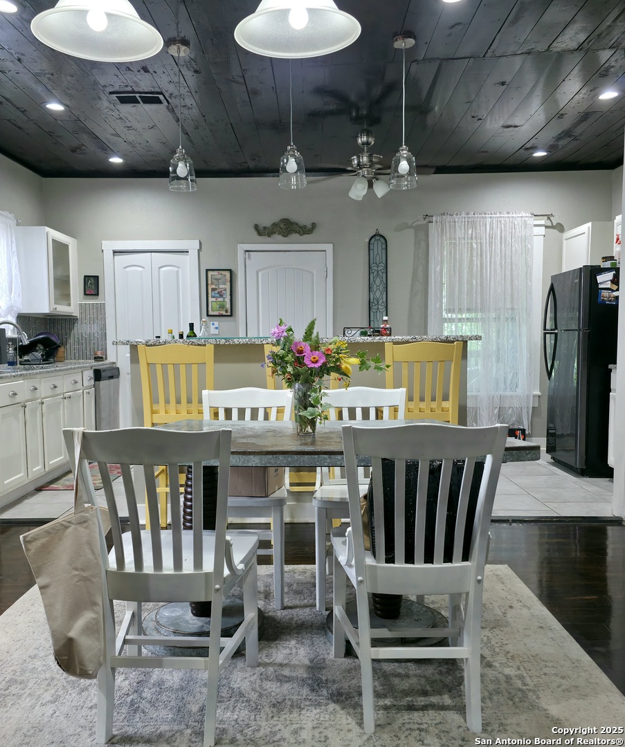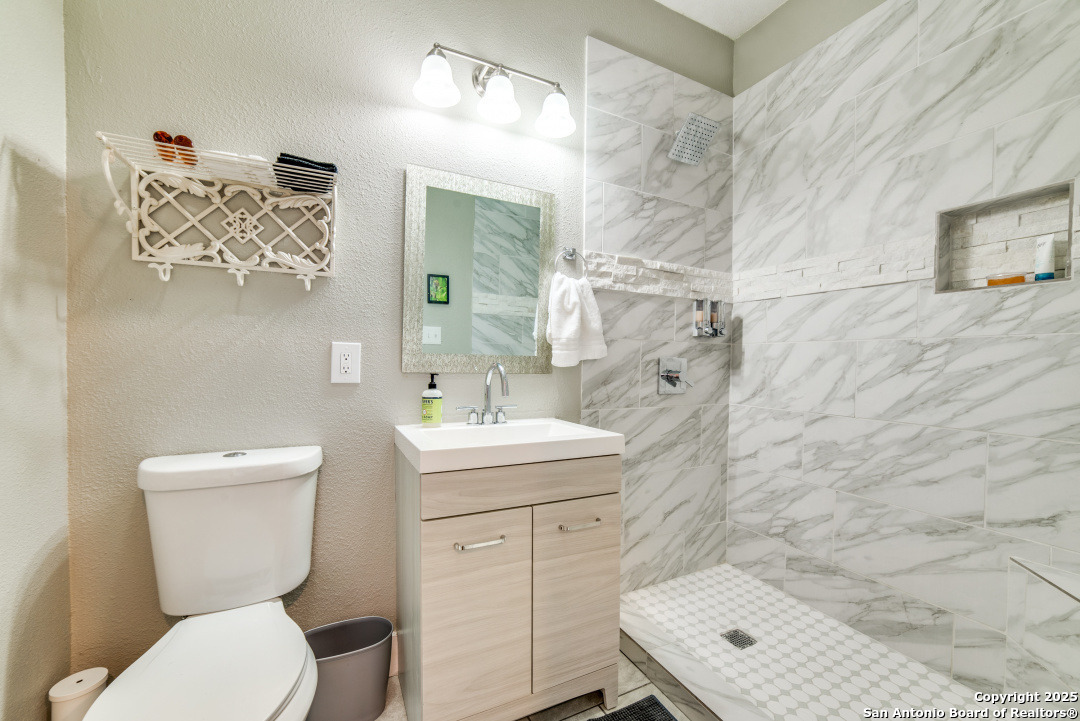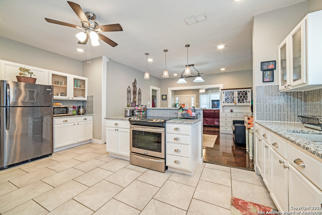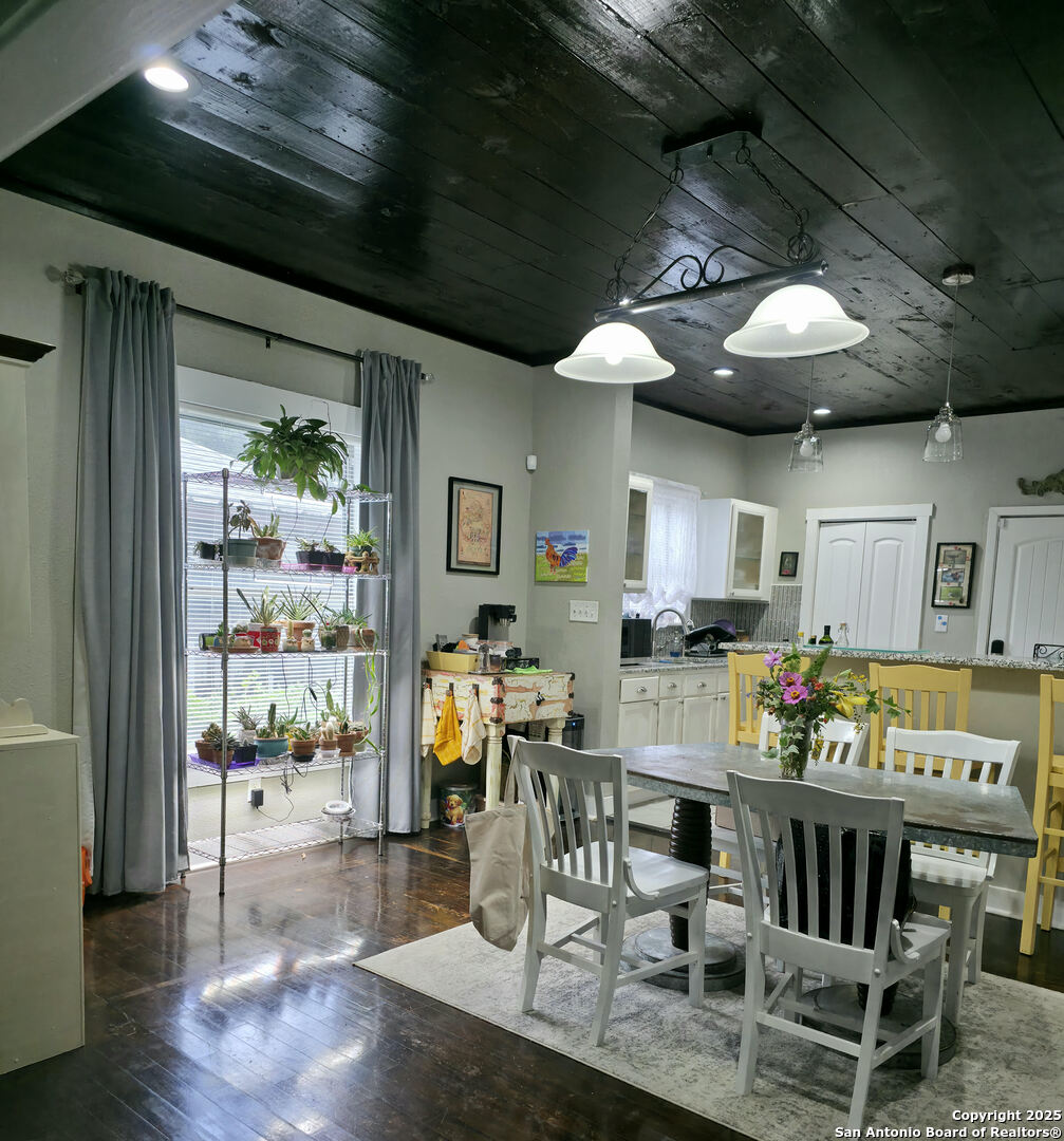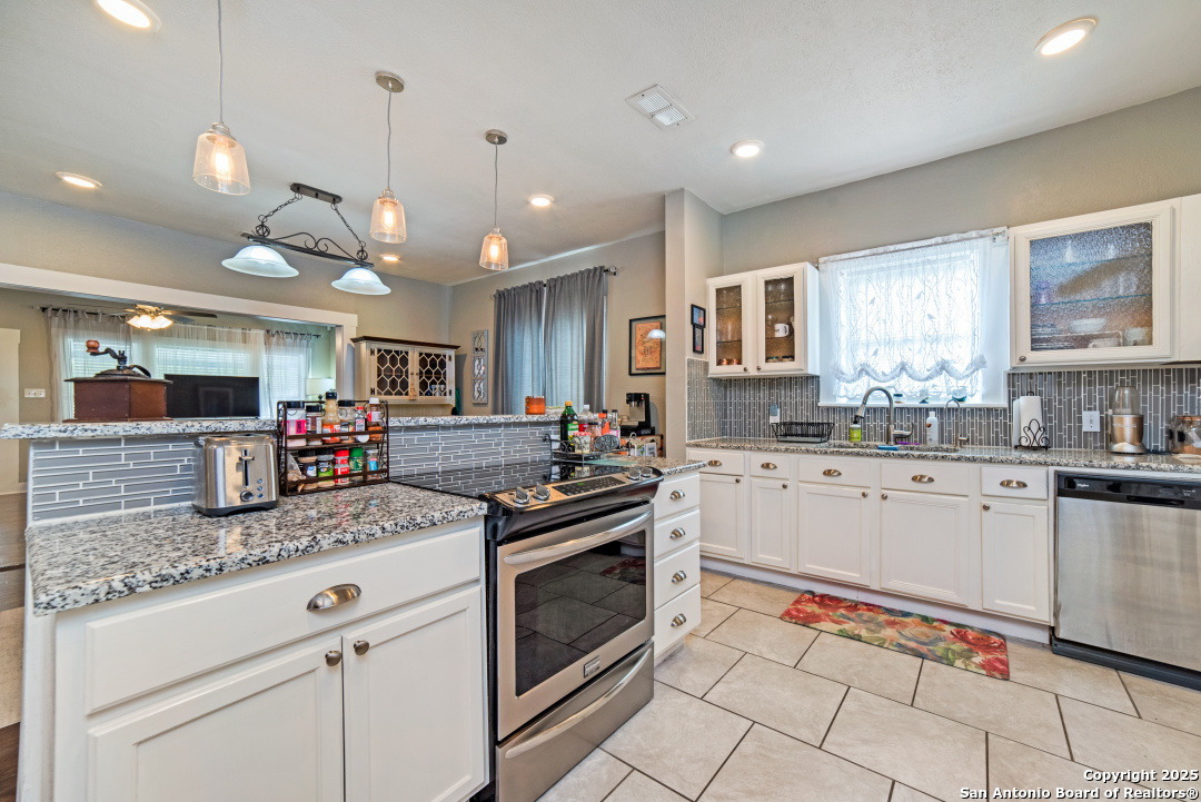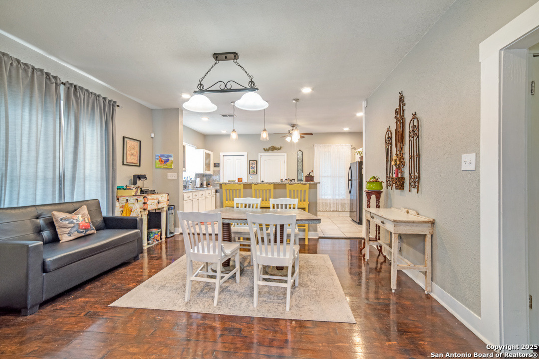 Welcome to Clark Bungalow! Move-in ready 1940s bungalow in the Denver Heights subdivision, part of the SA Community Revitalization Program. This home offers great curb appeal with an oversized front porch and inviting charm. Bright, open floor plan ideal for entertaining. Kitchen includes granite countertops, tile backsplash, breakfast bar, and stainless steel appliances-refrigerator w/filtered ice maker, stove w/convection oven, professional-grade microwave, and dishwasher. Utility room features energy-efficient washer and dryer plus a large-capacity purification system is also a filtration system. and reverse osmosis system (installed 2018). All mentioned appliances convey. Home features 9 ft ceilings, natural light, shiplap accents, and ceiling fans throughout. Roof, attic insulation, and flooring updated in 2018. Ring Alarm Security System with keyless entry and exterior lighting. Back door leads to a large covered deck (built 2020) for outdoor relaxation or entertaining. Yard includes garden beds within a Certified Wildlife Habitat-great for sustainable living. Easy access to I-10 and I-35. Minutes from AT&T Center, Convention Center, Alamo, Riverwalk, The Pearl, museums, parks, and St. Phillips College. Nearby shopping, dining, and VIA bus stop. Additional Notes: Extensive weatherization project completed in 2024 and a new, 5-ton heat pump condenser installed in 2025. Previously operated as a licensed short-term rental. Furnishings/decor available for purchase (info upon request). Oversized lot zoned for multi-family development. RN-4