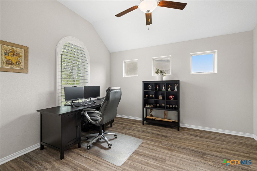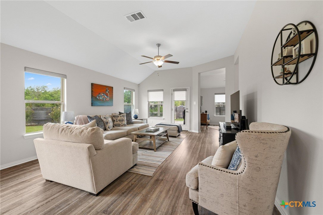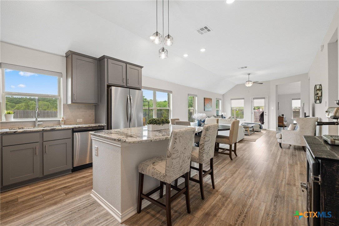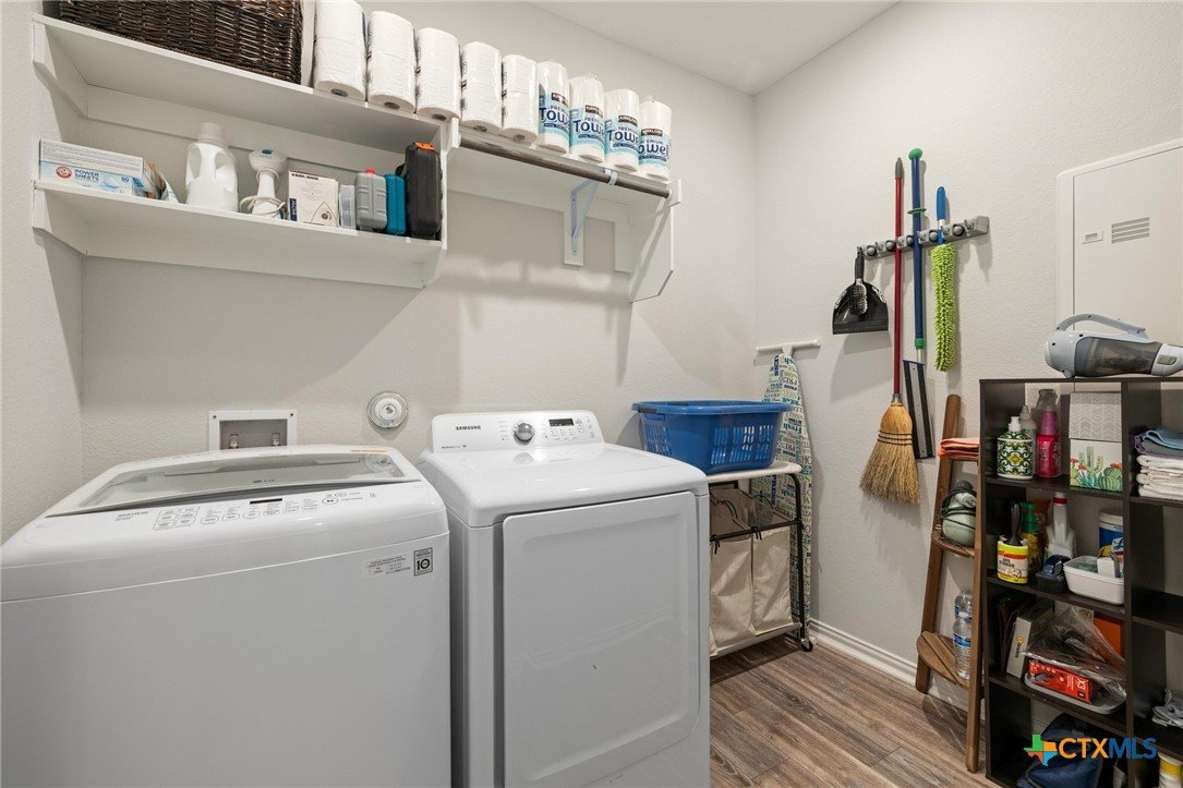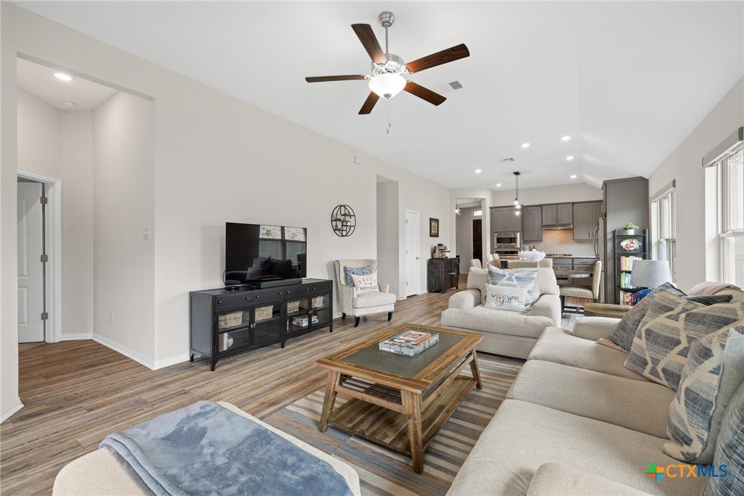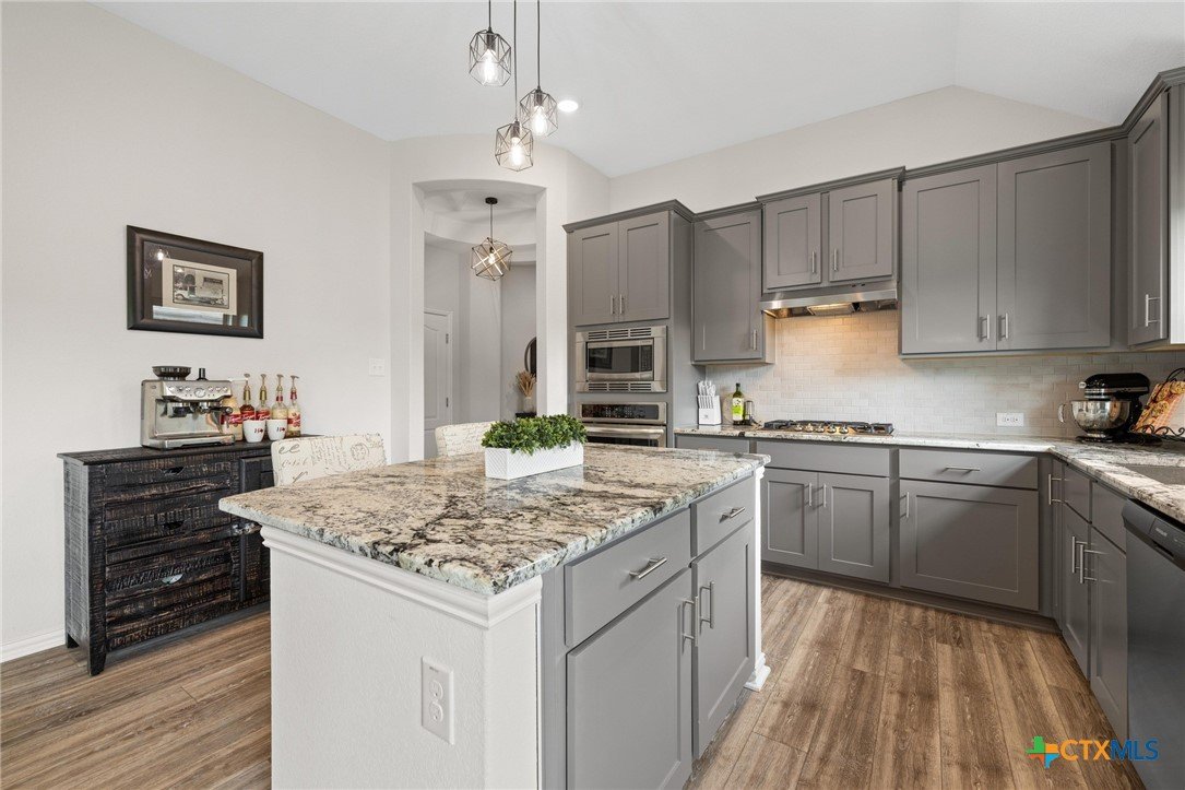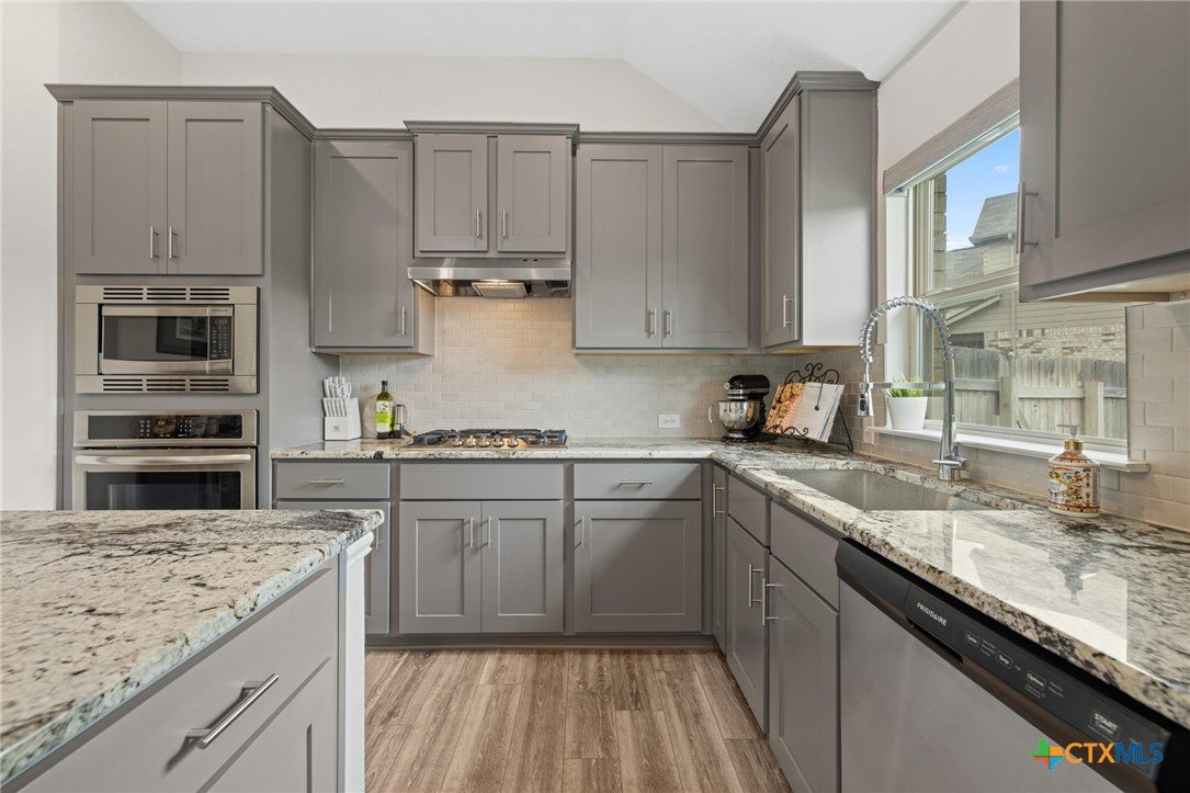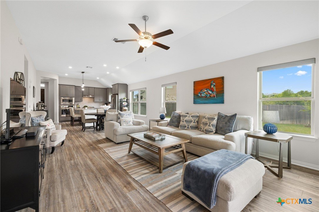 Welcome to this beautifully maintained 1-story, 3-bedroom, 2-bath home in the desirable Brooklands subdivision! Spanning 2,020 sqft, this home offers a thoughtfully designed open floor plan with modern finishes and a layout that adapts to many lifestyles. Step inside and be greeted by a striking rotunda foyer, a unique architectural feature that sets the tone for this exceptional home. The spacious living area is filled with natural light, seamlessly flowing into the chef-inspired kitchen, which boasts sleek gray cabinets, stainless steel appliances, stunning granite countertops, a large island, and built-in oven and microwave—perfect for both casual meals and entertaining. Enjoy Luxury Vinyl Plank flooring throughout the main living areas, office, and bonus room, with plush carpet reserved for the bedrooms for added comfort. The primary suite is a serene retreat, offering ample space and a spa-like en-suite bath. Two additional bedrooms provide room for family or guests. Need flexibility? This home includes a dedicated home office and a bonus room—ideal for a game room, fitness space, or second office. The oversized lot features a huge backyard with a covered patio, perfect for outdoor gatherings, gardening, or simply relaxing. Plus, the extended driveway and 2.5-car garage provide plenty of parking and storage. Conveniently located within walking distance to both the elementary and middle schools. This home also offers easy access to the new SE Loop in Hutto, making for a quick commute to downtown, the airport, and major tech hubs. The Samsung plant is just 10 minutes away. HEB and the Stone Hill Shopping center are just quick drive down the road. Don’t miss out on this meticulously maintained Brightland Homes, Laurel floor plan—a perfect blend of style, space, and convenience!