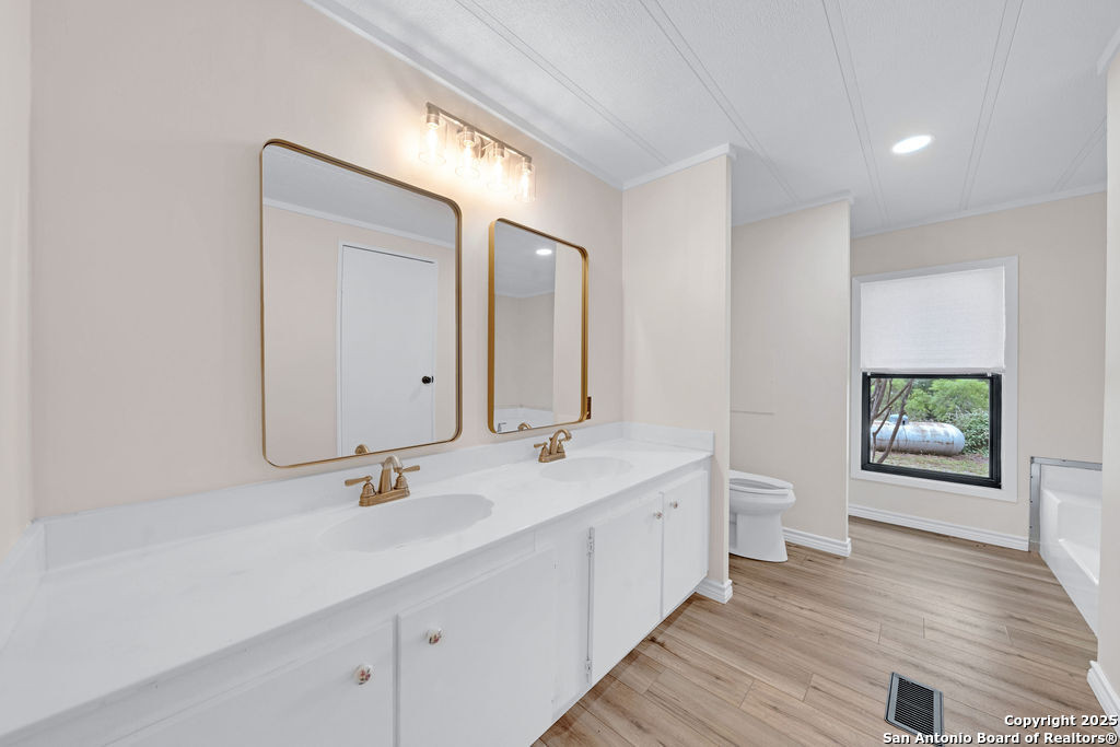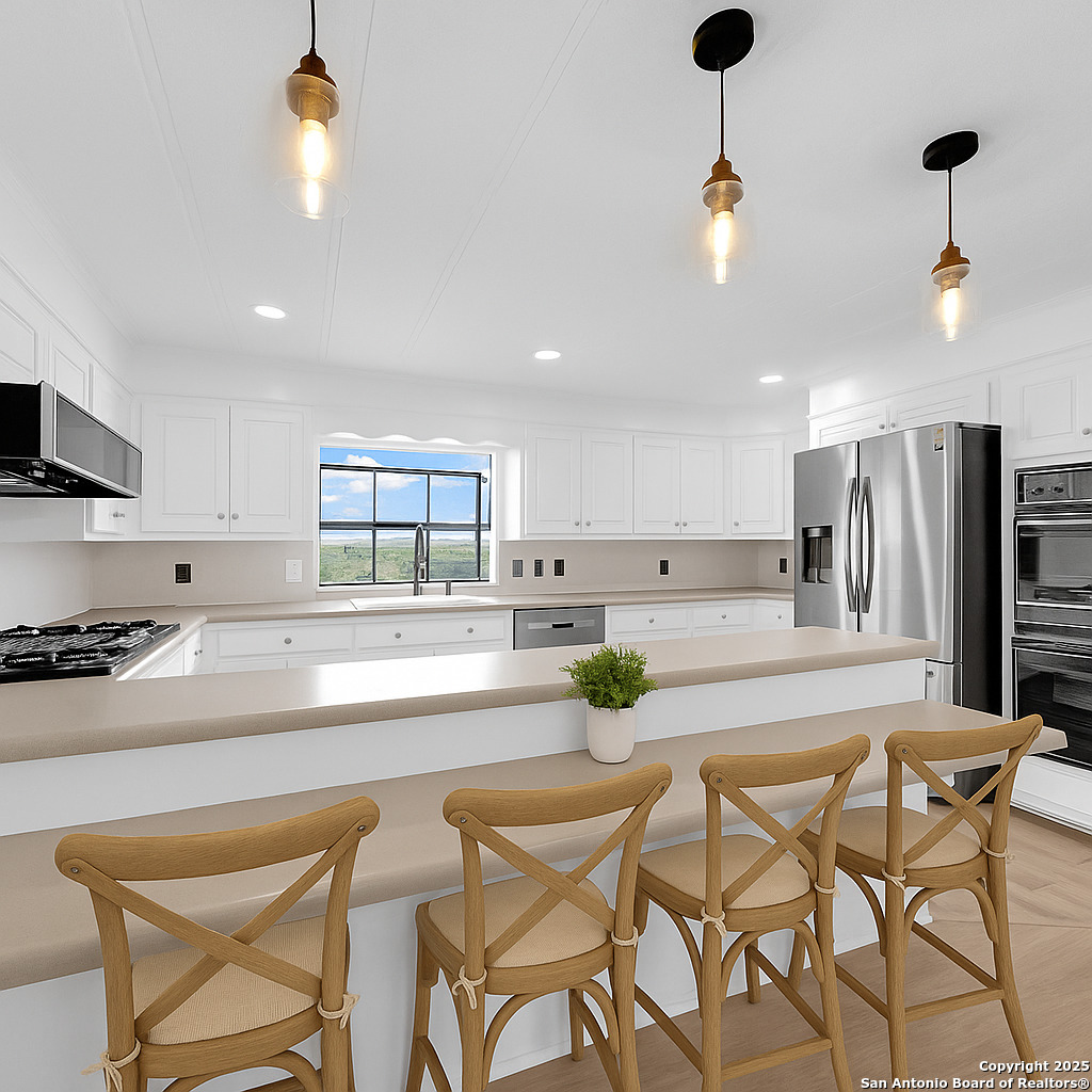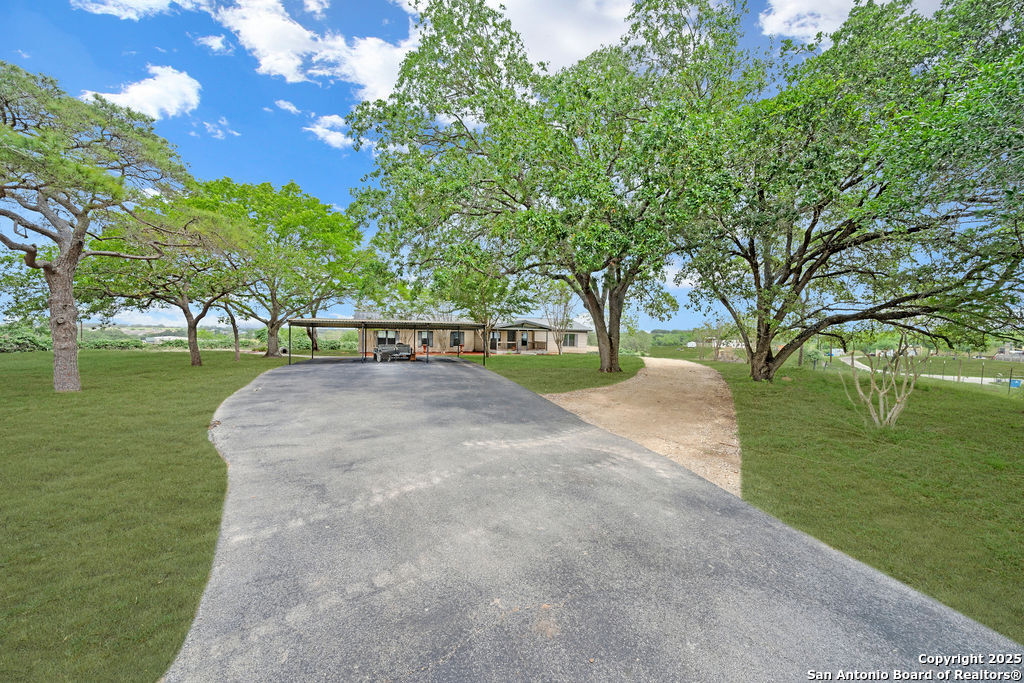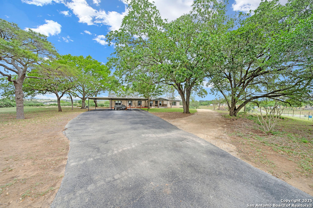 Welcome home to this beautifully remodeled 5-bedroom, 3 bath with modern farmhouse vibes, perched high on a picturesque hill and surrounded by breathtaking, mature live oak trees. Set on 1.6 serene acres, this rare property offers the best of both worlds - a peaceful, country lifestyle with unbeatable convenience, just minutes to downtown Floresville and only 30 minutes to San Antonio. From the moment you arrive, you'll fall in love with the inviting curb appeal, brand-new landscaping, and the timeless beauty of the land itself. A spacious 3-car covered carport provides plenty of room for vehicles, toys, or even a workshop space - all framed by wide-open Texas skies. Step inside to an airy, open floor plan designed for modern living. Every inch of this home has been thoughtfully updated, blending classic farmhouse charm with sleek, contemporary touches. Stylish accents, warm wood look tones, and designer light fixtures create a cozy-yet-polished atmosphere, while oversized windows flood the home with natural light. The living room, dining area, and kitchen flow seamlessly together, perfect for everyday life and entertaining alike. The kitchen is a dream - featuring stylish cabinetry, light countertops, a breakfast bar island, and plenty of storage space for all your culinary needs. The primary suite offers a private retreat, complete with a beautifully updated ensuite bath, while four additional bedrooms provide space for family, guests, or a home office setup. Step outside and enjoy the wide-open space that's ready for your personal touch - whether you envision a future pool, garden, play area, or simply a quiet place to sit and take in the sunset. Towering live oaks provide natural beauty and shade, creating the perfect backdrop for outdoor living year-round. Properties like this - with a fully remodeled home, acreage, and prime location - are nearly impossible to find. Don't miss your chance to own this slice of Texas paradise!