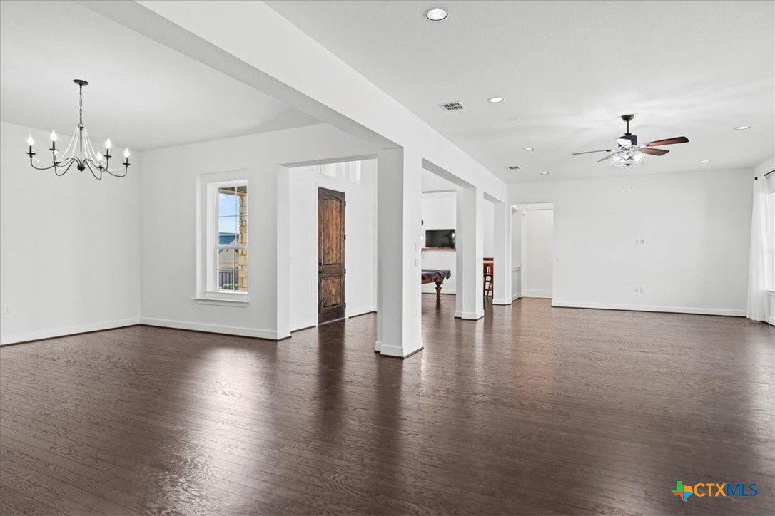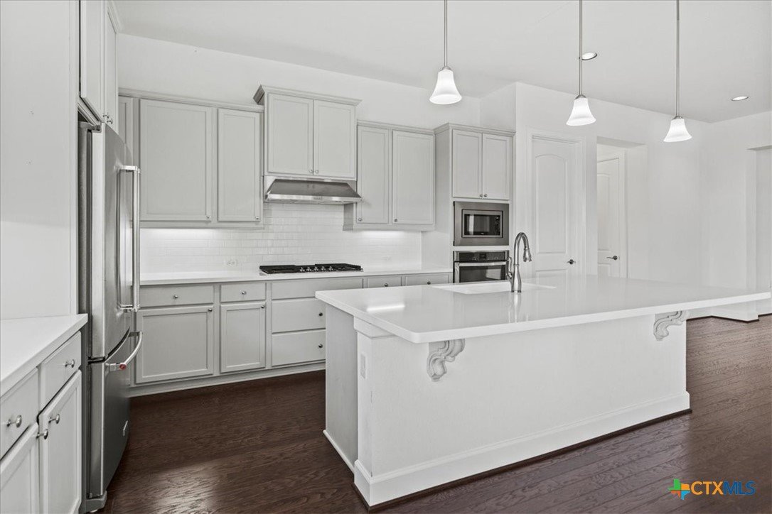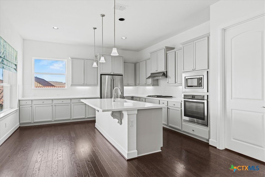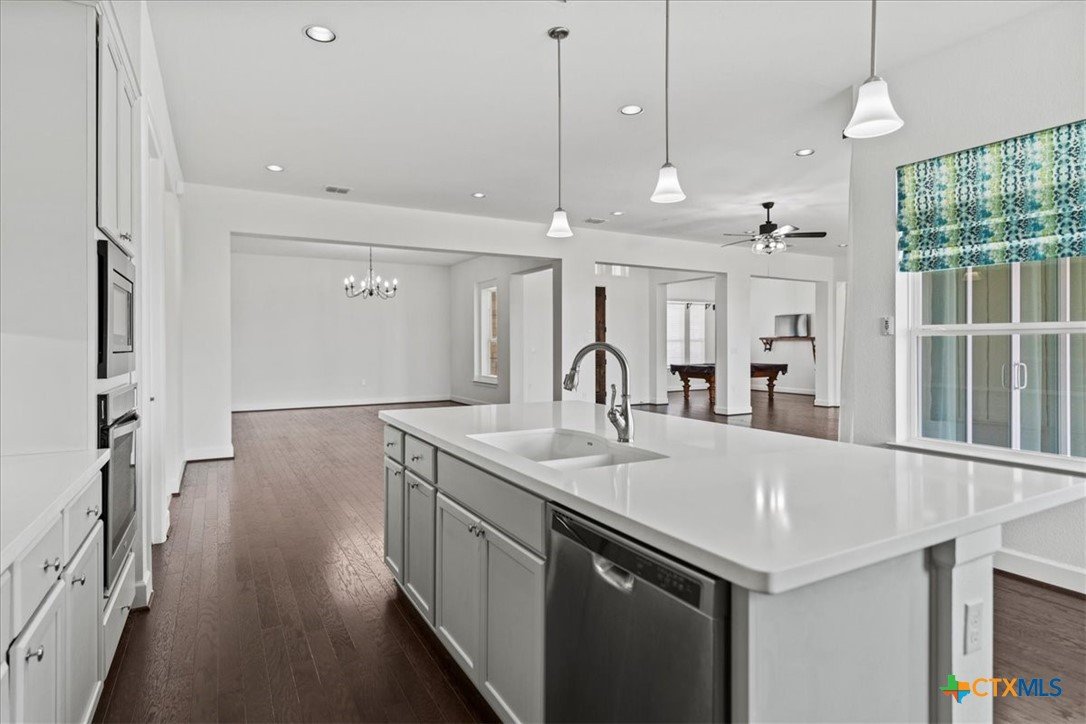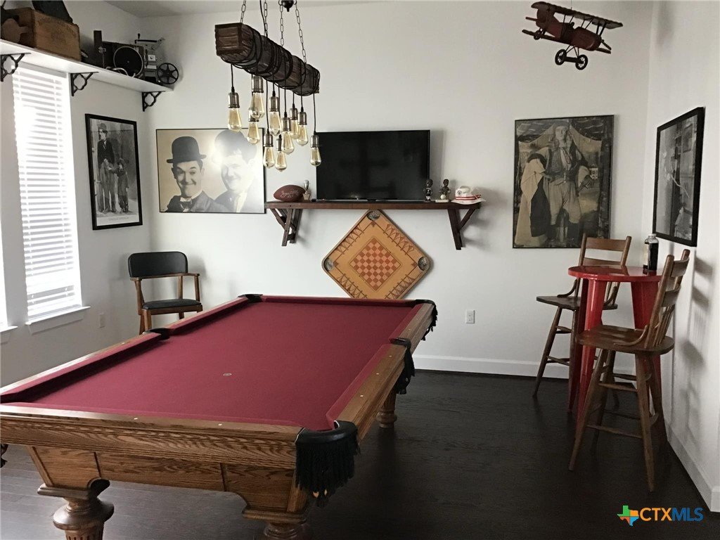Motivated Seller! Priced nearly $100K below the identical floor plan next door that sold for $949K in June, this incredible home in Kissing Tree offers unbeatable value in one of Central Texas’s premier 55+ communities. Located just a short walk from the pickleball courts and driving range, this move-in-ready home sits elevated on a .3-acre corner lot with standout curb appeal, featuring a blend of limestone and board-and-batten siding and a modern front entry with iron handrails. Inside, you’ll find 3,398 sq ft of beautifully maintained space, including a large bonus room, formal dining area, and an open-concept living room filled with natural light from oversized windows and sliding glass doors that open to a covered back patio with extended decking and recessed lighting—perfect for sunset views. The kitchen is a dream, offering white quartz countertops, a center island, light grey shaker-style cabinets, stainless steel appliances, and rich hardwood floors, along with a walk-in pantry and an expansive butler’s pantry for exceptional storage. The 3-car garage provides even more space for hobbies or storage, and the pool table can be included in the sale. Beyond the home, Kissing Tree delivers a true resort-style lifestyle with an 18-hole golf course, indoor lap pool, outdoor resort pool, bocce and pickleball courts, Tarbox & Brown restaurant, Independence Hall live music venue, and a Biergarten—plus a full calendar of events that make it easy to meet new friends and stay active. Don’t miss this chance to own a spacious, stylish home where every day feels like a vacation!