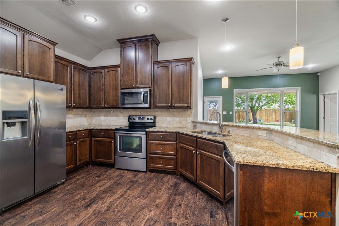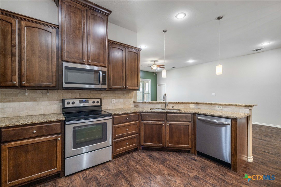 Welcome to this charming, move-in ready home in the Highland Hills Subdivision, featuring 3 spacious bedrooms, 2 bathrooms, and a versatile study. The open-concept layout offers a seamless flow, perfect for both everyday living and style. Inside, you’ll find an open living, kitchen, and dining area that flows easily—great for comfort or entertaining. The kitchen features granite countertops, plenty of cabinet space, and a functional breakfast bar. The primary suite is set up with a private bath, double vanity, and walk-in shower. The additional bedrooms are well-sized, and the office gives you flexibility for work, kids, or a second living space. Enjoy outdoor living under the covered patio overlooking a generously sized backyard with room for pets, play, or future additions. Mini-split systems have been installed for efficient, zoned cooling throughout the home.