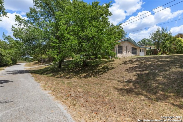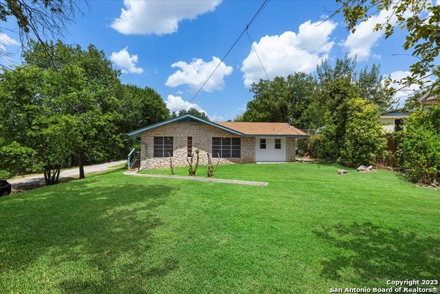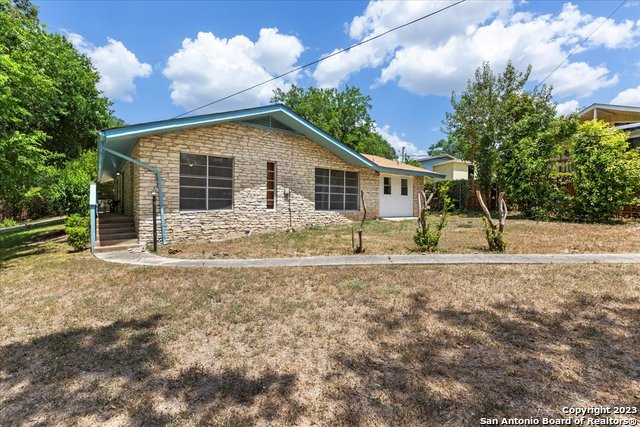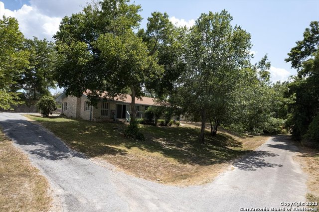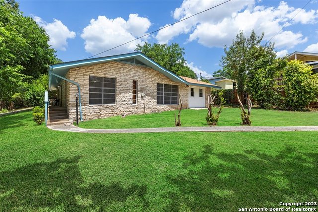 Charming all masonry 3/2 home on over a 1/2 acre in Blanco actually has an alternate drive if you choose to use it. Built in the late 1970's, the classic construction ensures durability and timeless appeal. It features open kitchen and breakfast area into large living area with Fireplace. All of this boasting a stunning lot overlooking the State Park, peek through the trees, there is the Blanco River! Nestled on a cul-de-sac, this oasis provides a sense of privacy and seclusion, it is truly a captivating home that you can call home. Take time to walk around and explore this over 1/2 acre. PRICE CHANGE AND FRESH PAINT AND FLOORING, TOO.
