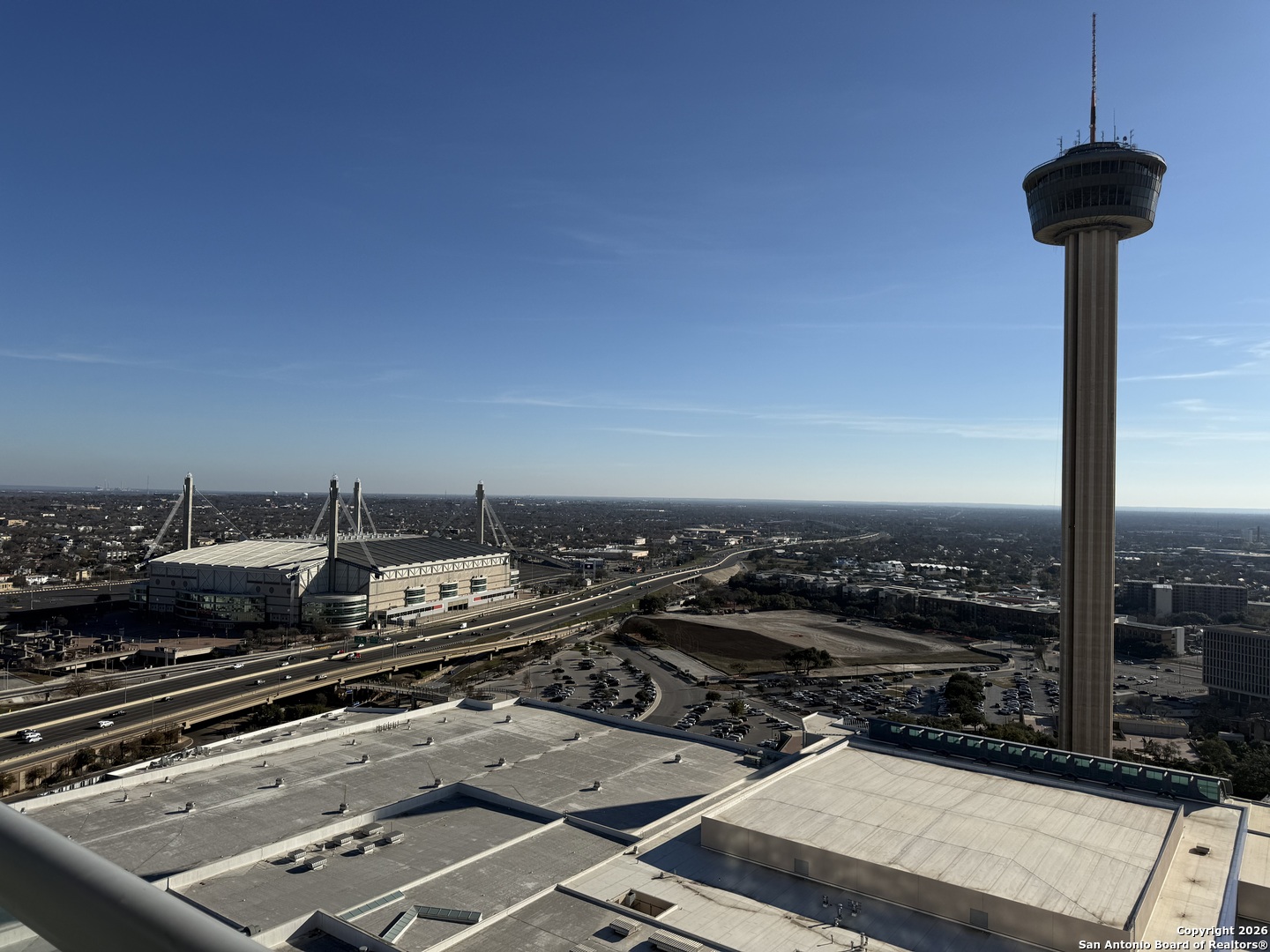26th-floor high-rise with stunning city views of the Alamodome and Tower of the Americas.Perched on the 26th floor, this exceptional high-rise residence showcases sweeping city views of the Alamodome and the iconic Tower of the Americas. Floor-to-ceiling windows flood the space with natural light while framing a dynamic skyline that transforms beautifully from day to night. The open-concept layout offers a seamless flow for modern living and entertaining, complemented by sleek finishes and a clean, contemporary design. The kitchen opens to the living area, allowing you to enjoy the views from every angle. The bedroom serves as a peaceful retreat above the city, while the well-appointed bathroom features modern details and quality craftsmanship. From sunrise to sparkling city lights, this home delivers an elevated urban lifestyle. Ideally located and set high above it all, this 26th-floor residence offers a rare opportunity to enjoy iconic San Antonio views with the convenience and sophistication of high-rise living.