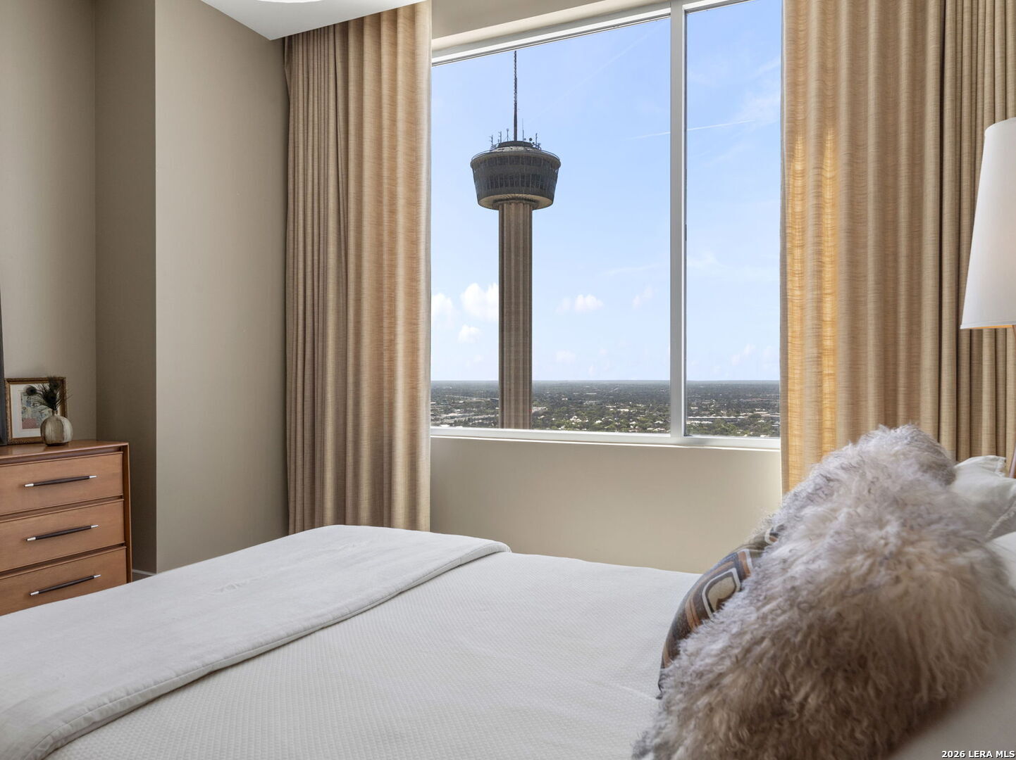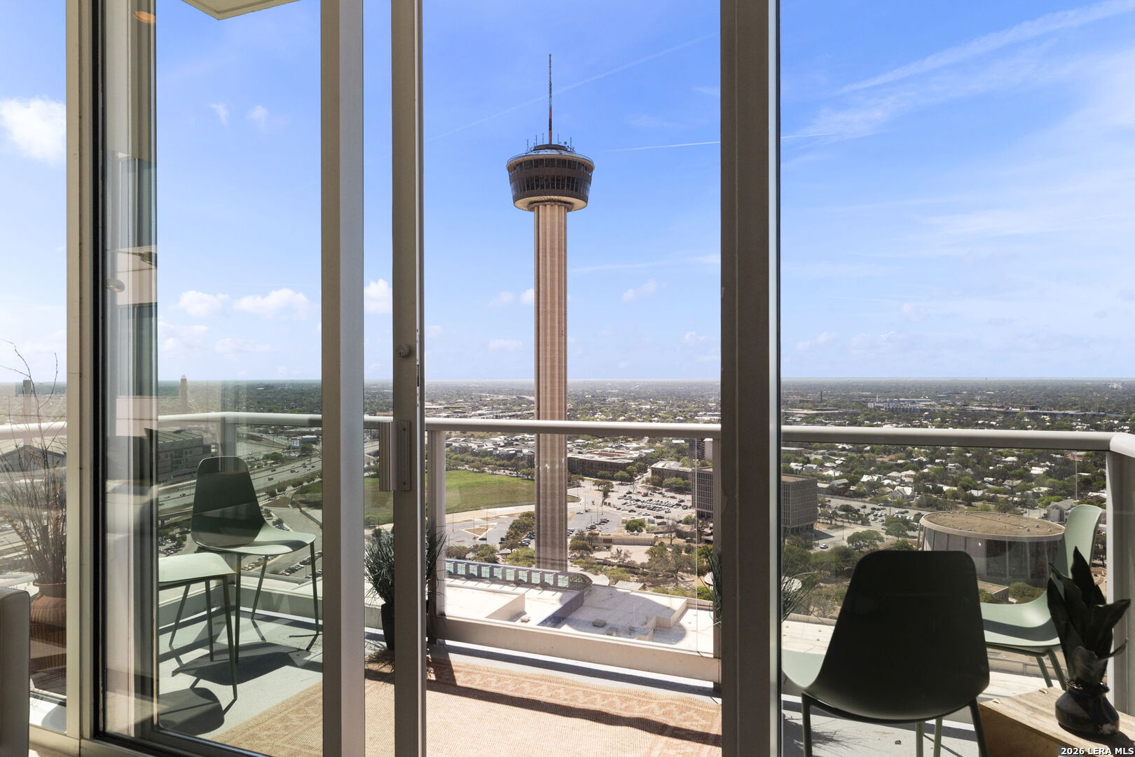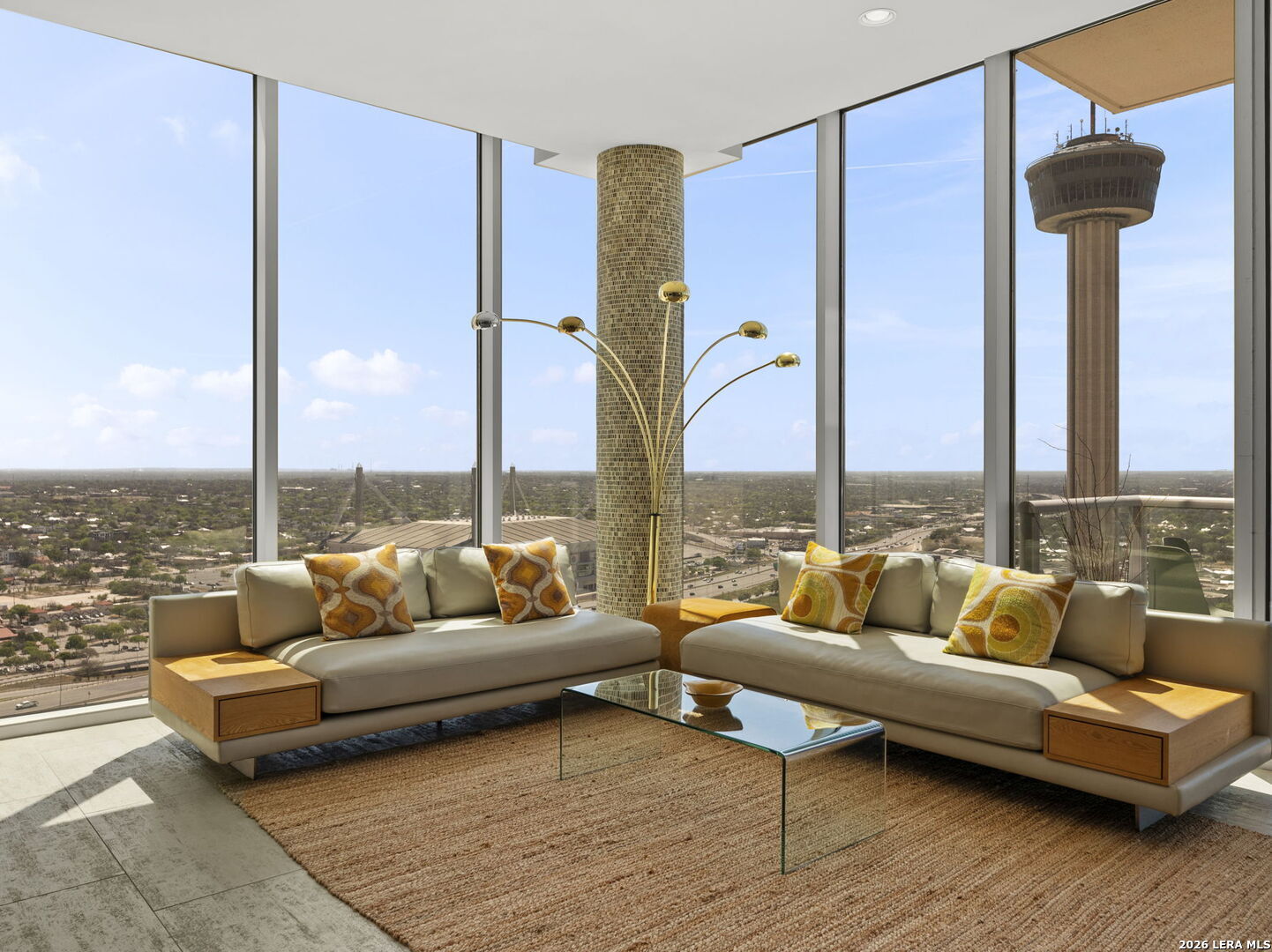 REFRESHED LISTING - enhanced with added buyer incentives, curated furnishings, and a renewed focus on turnkey living. Experience refined city living in this stunning 28th-floor residence at The Alteza Residences. Showcasing panoramic views of the Tower of the Americas and Hemisfair Park, this beautifully appointed condominium offers two bedrooms, two and a half baths, and a dedicated study, providing flexibility for today's lifestyle. Designed for lock-and-leave convenience, the residence includes 24-hour concierge service, two private parking spaces, and resort-style amenities including a pool and hot tub, all thoughtfully curated for comfort, security, and ease. With continued downtown growth, including the Spurs arena development, new restaurants, and luxury hotels, the location offers both vibrancy and long-term appeal. Select mid-century modern furnishings and curated kitchenware, including large and small appliances as well as elegant glassware will convey, creating a seamless, move-in-ready opportunity. Ideal for professionals, downsizers, or second-home buyers who value service, privacy, and location, this residence presents an exceptional opportunity to enjoy sophisticated high-rise living with remarkable views.