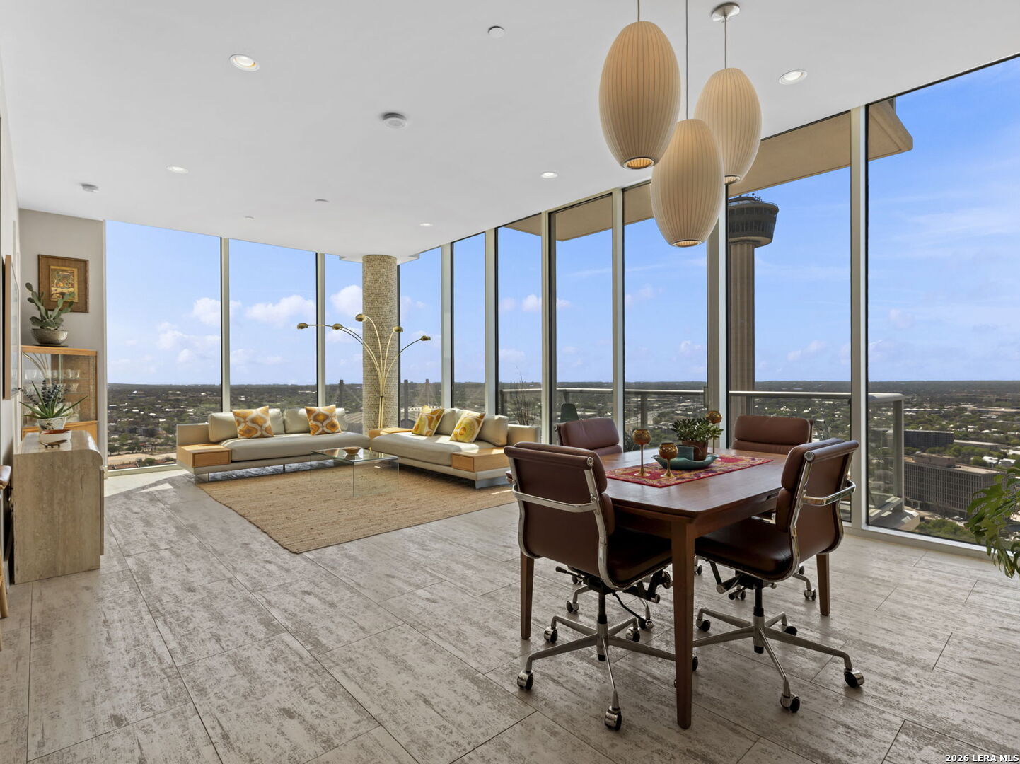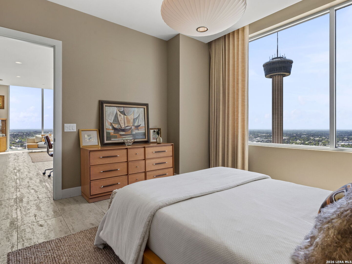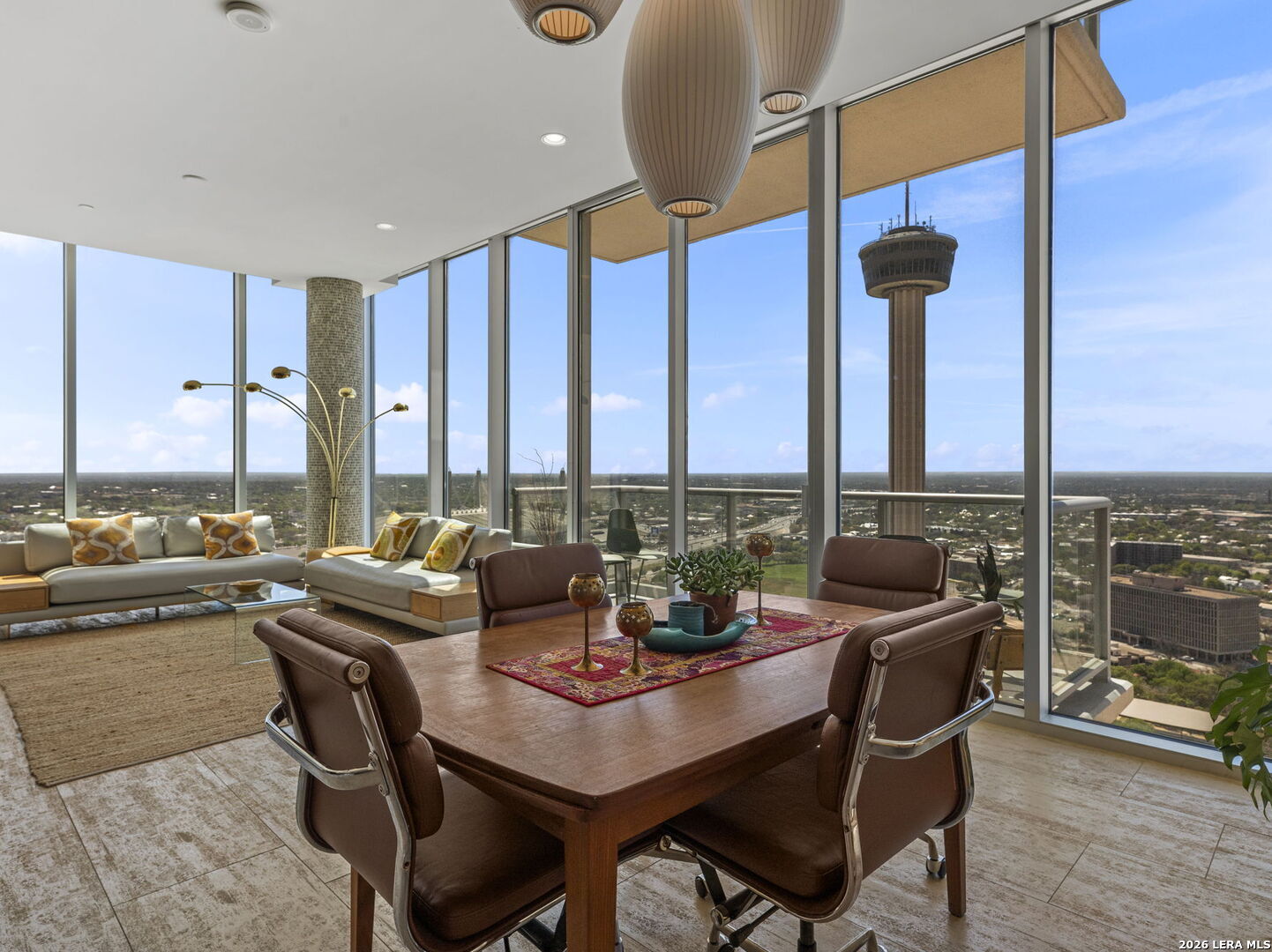 REFRESHED LISTING - enhanced with added buyer incentives, curated furnishings, and a renewed focus on turnkey living. Experience refined city living in this stunning 28th-floor residence at The Alteza Residences. Showcasing panoramic views of the Tower of the Americas and Hemisfair Park, this beautifully appointed condominium offers two bedrooms, two and a half baths, and a dedicated study, providing flexibility for today's lifestyle. Designed for lock-and-leave convenience, the residence includes 24-hour concierge service, two private parking spaces, and resort-style amenities including a pool and hot tub, all thoughtfully curated for comfort, security, and ease. With continued downtown growth, including the Spurs arena development, new restaurants, and luxury hotels, the location offers both vibrancy and long-term appeal. Select mid-century modern furnishings and curated kitchenware, including large and small appliances as well as elegant glassware will convey, creating a seamless, move-in-ready opportunity. Ideal for professionals, downsizers, or second-home buyers who value service, privacy, and location, this residence presents an exceptional opportunity to enjoy sophisticated high-rise living with remarkable views.