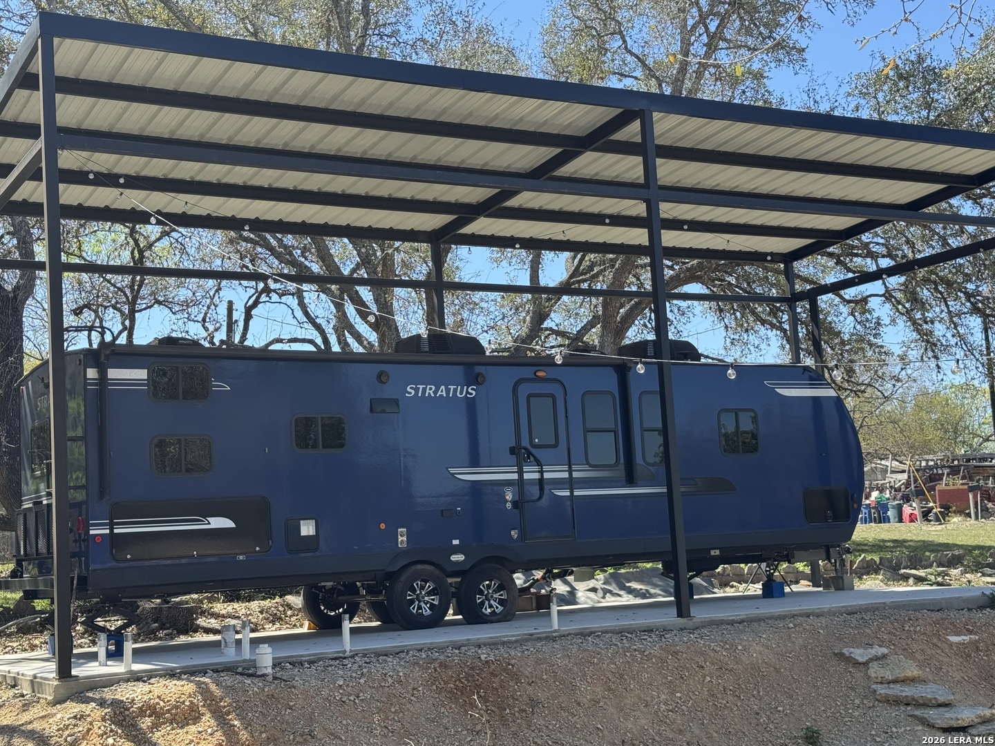 Rare opportunity to own a spacious corner lot just across the street from beautiful Canyon Lake in the highly desirable Astro Hills community on the south side of the lake. This oversized lot, just over half an acre, was created by combining two lots, offering added space and flexibility to build your ideal lake home, complete with potential amazing second-story lake views. Located just down the street from a convenient boat ramp, you'll enjoy easy access to fishing and year-round lake activities. The property is ready for development with a brand-new septic system already installed, along with water service through Texas Water and electricity through PEC. It also features an existing RV shelter with a concrete foundation, plumbing, electrical, and a durable metal roof, adding immediate functionality and value. This can easily be converted to a garage or a one bedroom with a loft. With no HOA restrictions, you have the freedom to build and use the property to fit your vision. Drive by and see it for yourself. Opportunities like this in Astro Hills are hard to find. Reach out to Patty to learn about the seller's exciting vision and ideas for a future build on this lot.