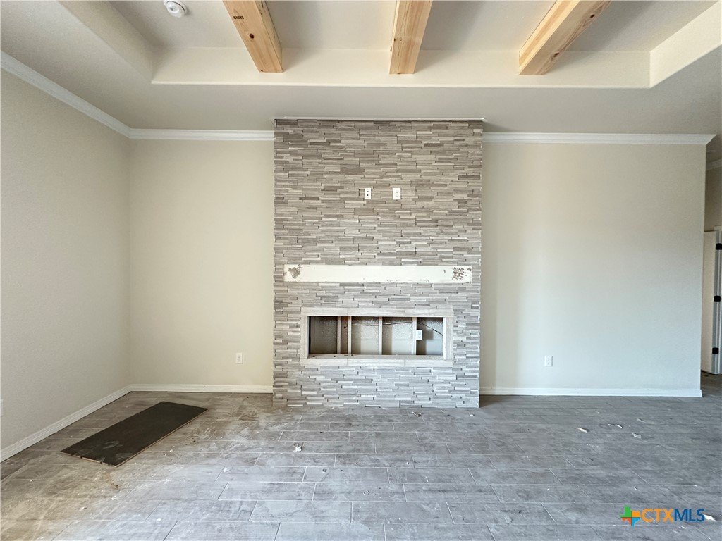 Discover a thoughtfully laid out design in the Nugget plan, offering 4 bedrooms, 2.5 bathrooms, a 3-car garage, and 2120 square feet of living space. The wood-beamed ceiling in the living room adds a touch of rustic charm, creating a cozy ambiance for relaxing with family and friends. And with an electric fireplace, you can enjoy the flickering flames year-round, adding an extra layer of comfort and elegance to your home. Cooking is a breeze with the upgraded kitchen featuring a gas cooktop, modern GE Profile appliances, soft-close cabinetry, and a custom vent hood. The spa-Like Master Bath is the epitome of relaxation. This space is designed to elevate your daily routine with features that go beyond the ordinary. From the vaulted ceilings, natural light, opposing vanities, dual-entry walk-in shower, and elegant garden tub, you will find the ultimate spot for relaxing and rejuvenation. Bella Terra is convenient to schools, shopping, restaurants, and BSW Hospital. Residents will enjoy the use of the community playground and swimming pool that is now open just in time for Summer!