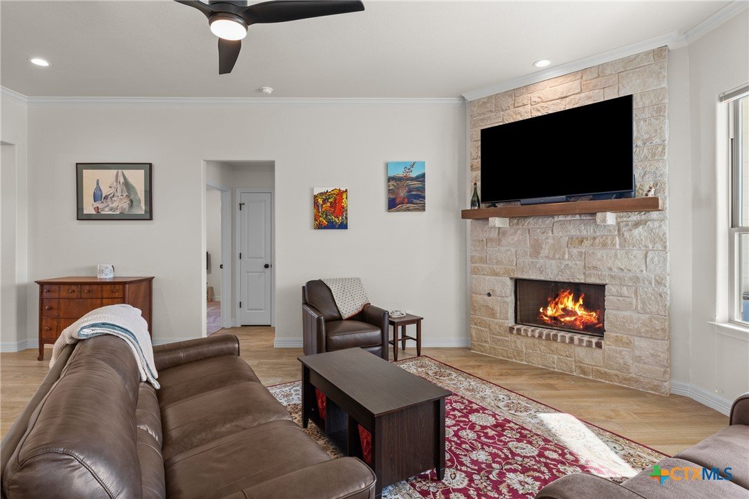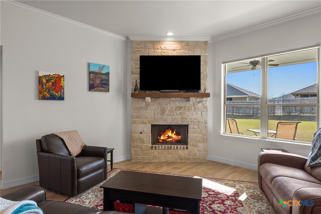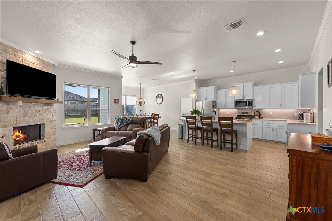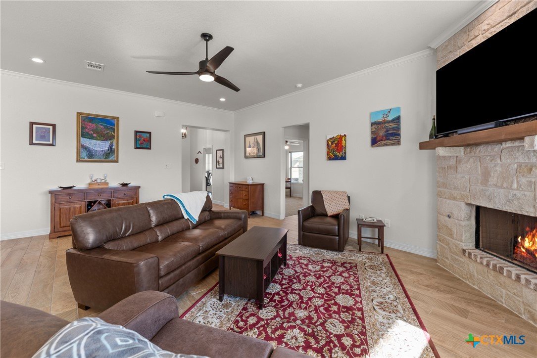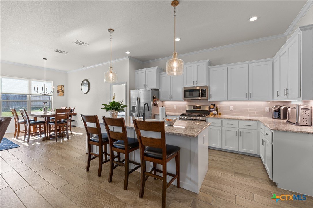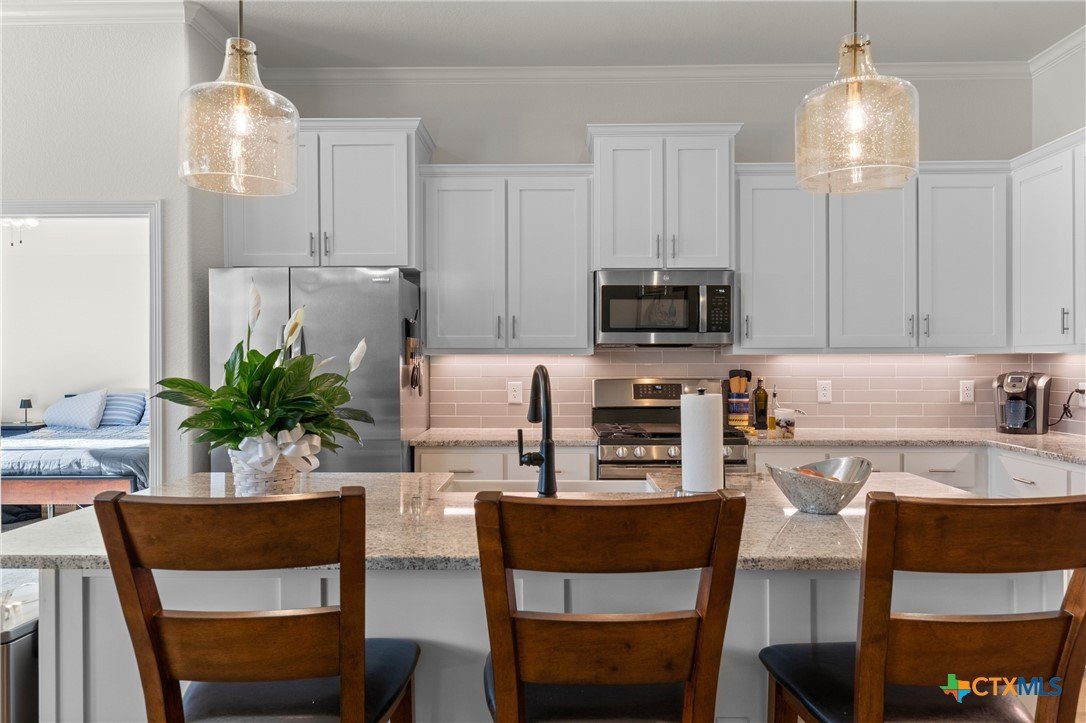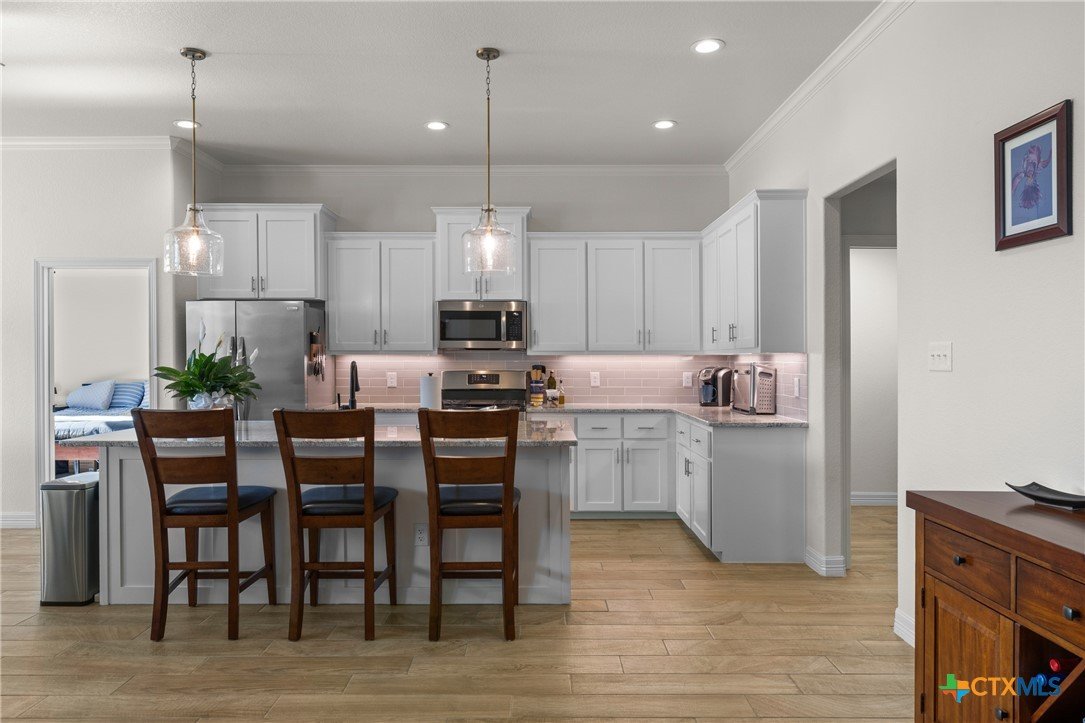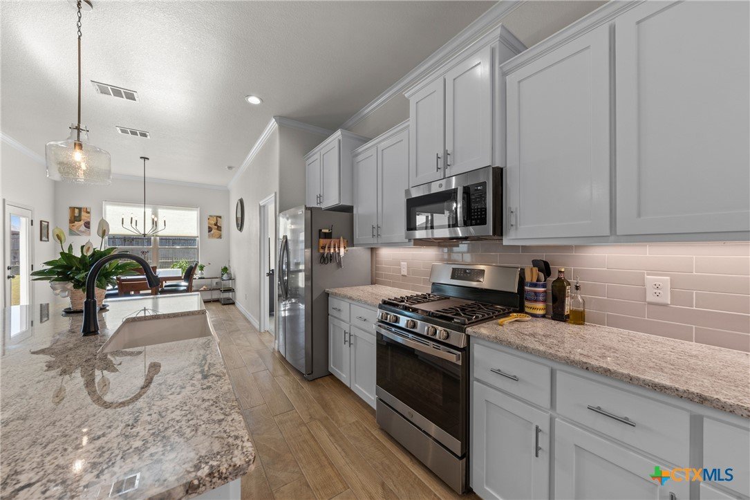 This Pristine 4 Bedroom 2.5 bath home is in the beautiful Bella Terra Subdivision off S 31st Street. This home is light, bright and open. Living room has a wall of windows facing east for the morning sun plus a corner fireplace with artificial gas logs. Kitchen has a large island and serving bar plus gas stove. Great work prep counter space for food preparation and cabinets plus a pantry provide everything necessary for excellent storage space for all of your kitchen necessities! Dining space is adjacent to the kitchen and large enough for a large table and chairs for entertaining. Primary Bedroom has a spacious bathroom with a walk-in shower; a soaking tub; 2 sinks for separate space and ample storage. Closet has pass through access to the laundry room for added convenience. Three additional bedrooms are split from the primary bedroom. Backyard faces east providing shade year around for your enjoyment and pleasure! 3 car garage with 2 garage door openers, full sod plus full sprinkler system. Exterior corner lights and a privacy fence. Rain gutters around home have been added. Cellular blinds with top down or bottom up access to windows in the bedrooms. Subdivision has park area and pool for residents. Close to VA, BS&W, and McLane Children's hospitals. Shopping and area restaurants are only minutes away! Must see property, that is move in ready for you!
