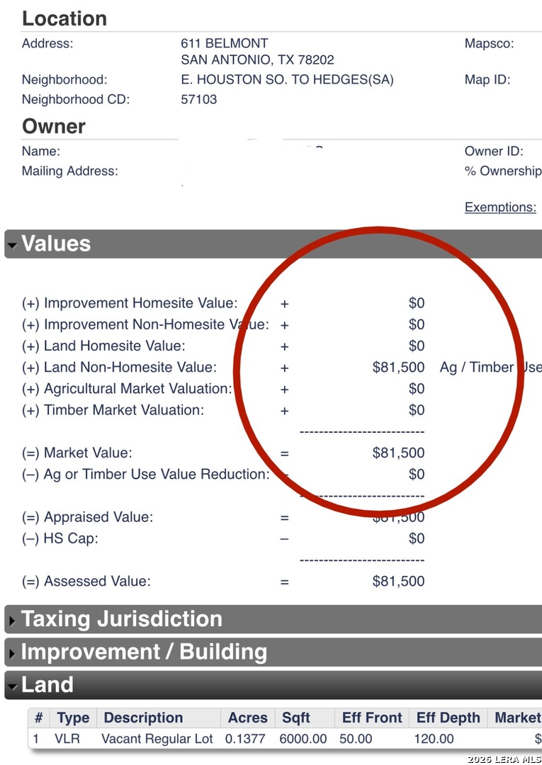 SPACIOUS LOT AVAILABLE IN AN ESTABLISHED AREA WITH ONLY MINUTES AWAY FROM FROST CENTER, ST. PHILIPS COLLEGE, RIVERWALK, LOCAL PARKS, RESTAURANTS AND MORE!