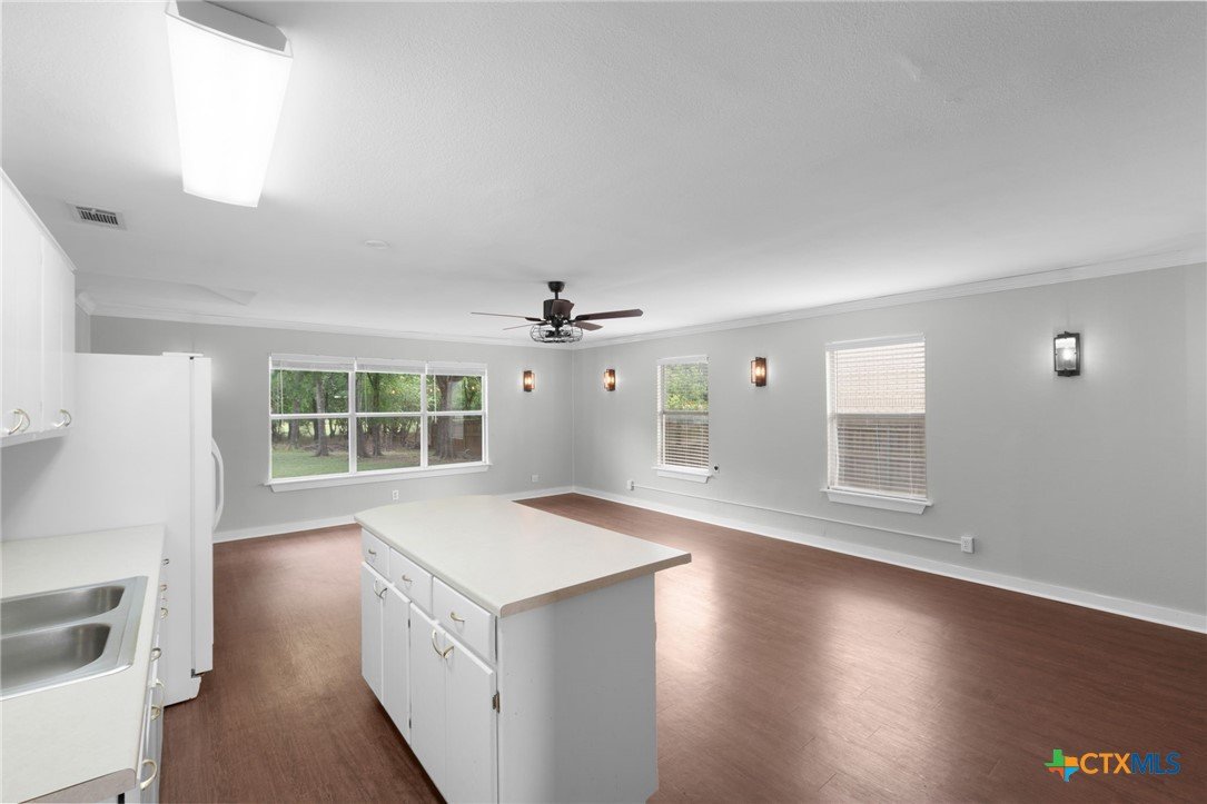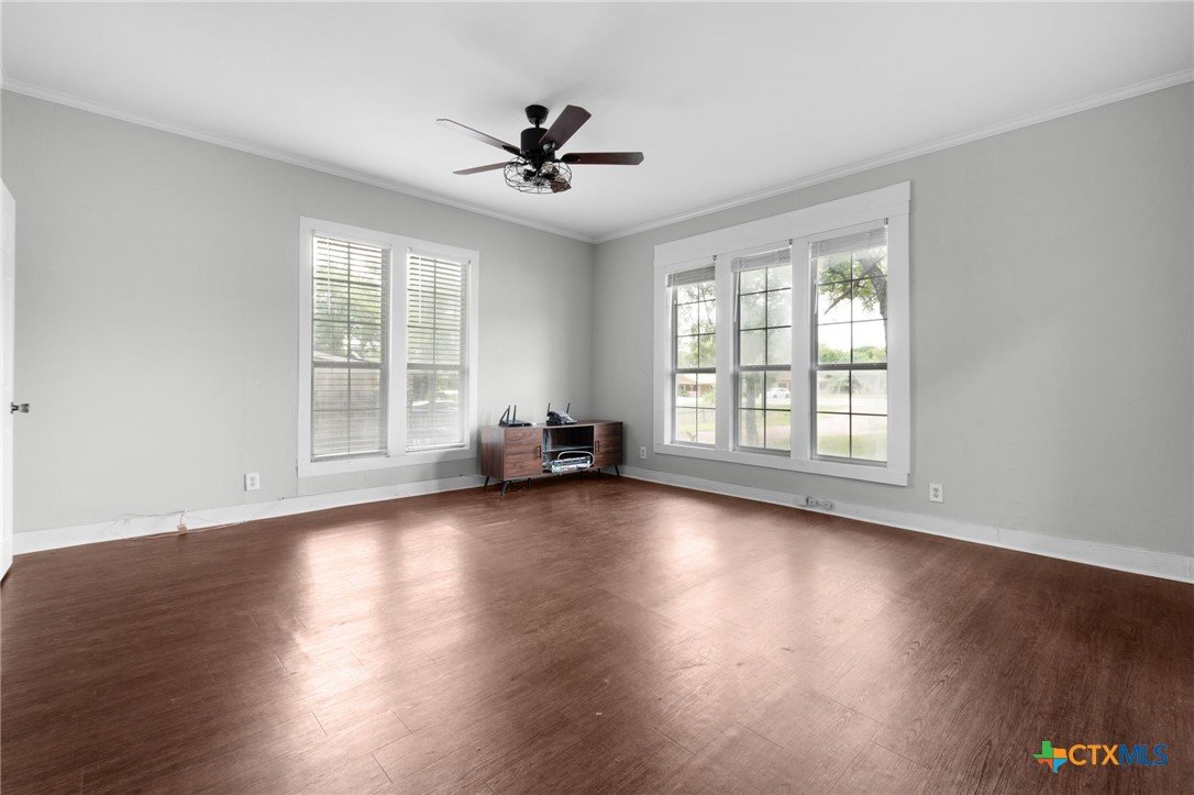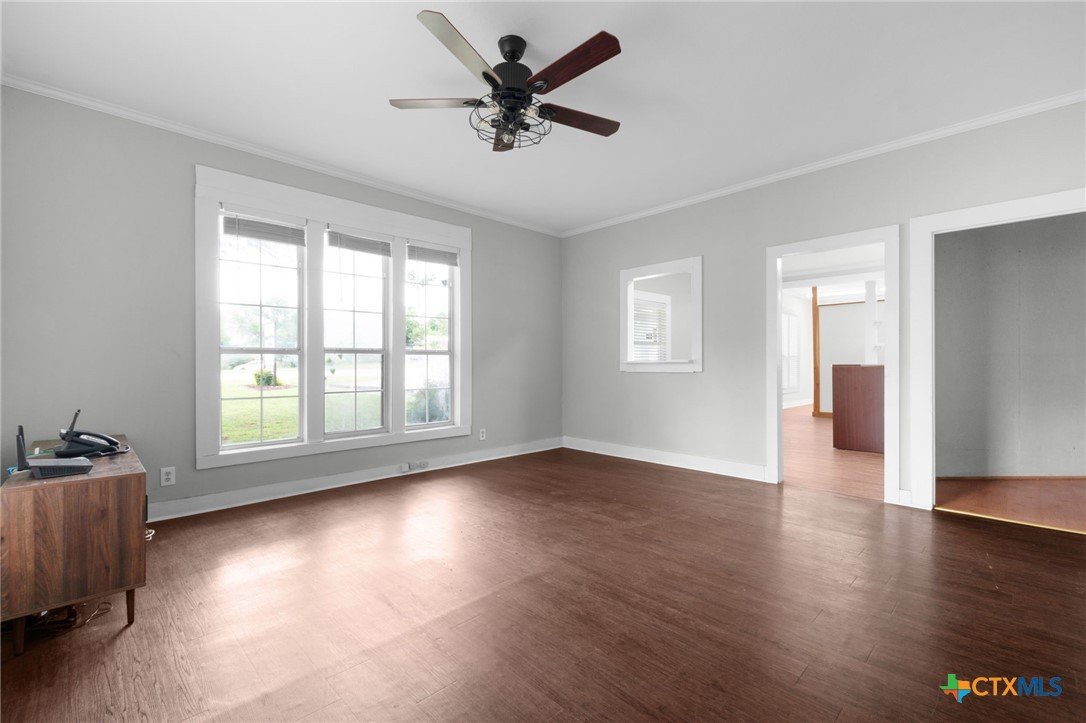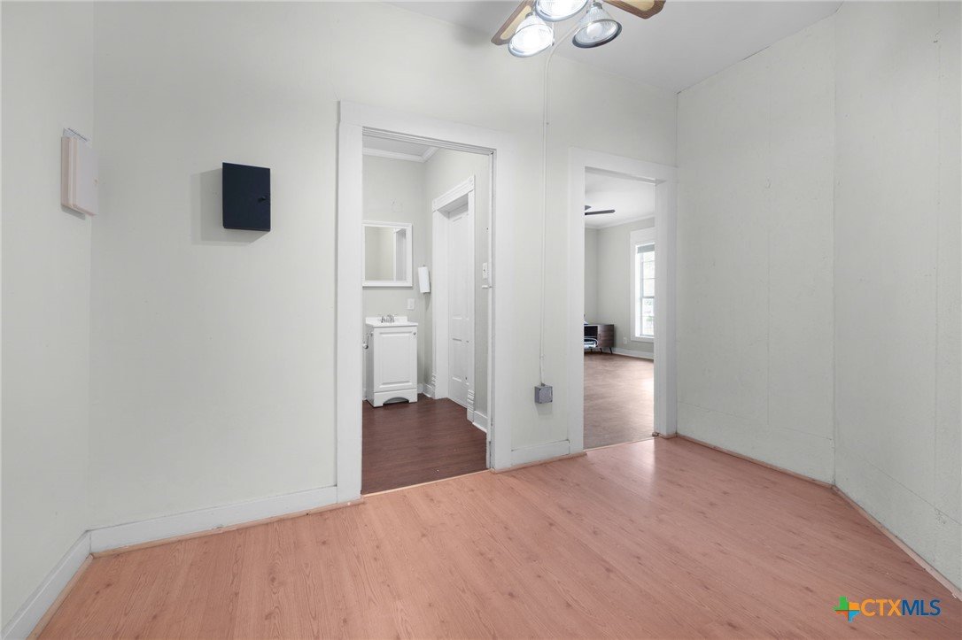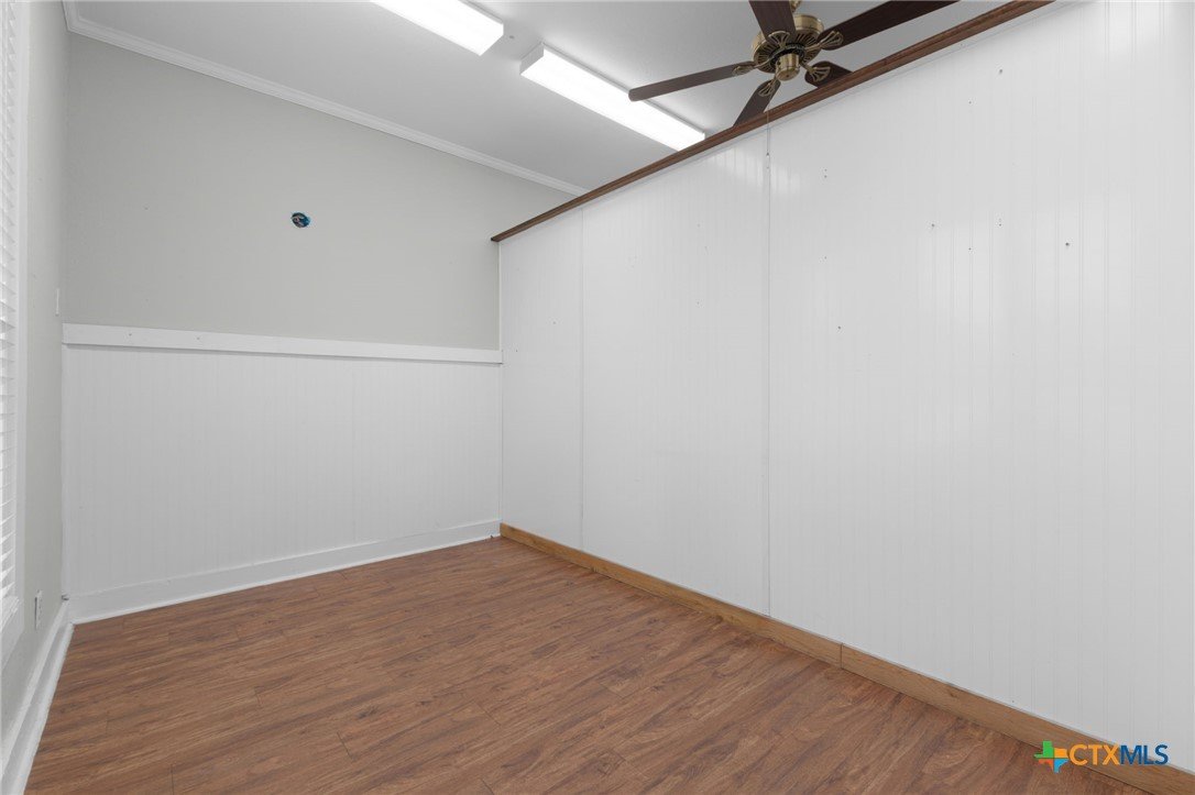 Versatile and well-maintained, this retail/office space offers a functional layout ideal for a variety of professional uses. Featuring a welcoming reception center, six private offices, two half bathrooms, a dedicated breakroom, and a spacious kitchen/conference/hospitality room with step-down access, this building is designed for productivity and comfort. Additional highlights include a copy center, file/storage room, and multiple closets for extra storage. The space is finished with painted wood walls and sheetrock, crown molding, 9-foot ceilings (except in the breakroom), ceiling fans, updated lighting, and AT&T Fiber Internet. Recent updates include fresh interior paint, updated light fixtures, and new flooring throughout. With four separate entrances and central electric heat and air, this property is move-in ready and primed for business.