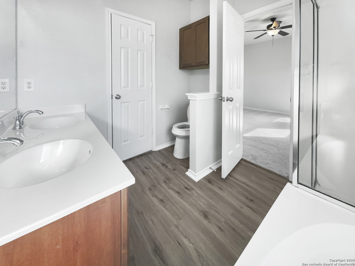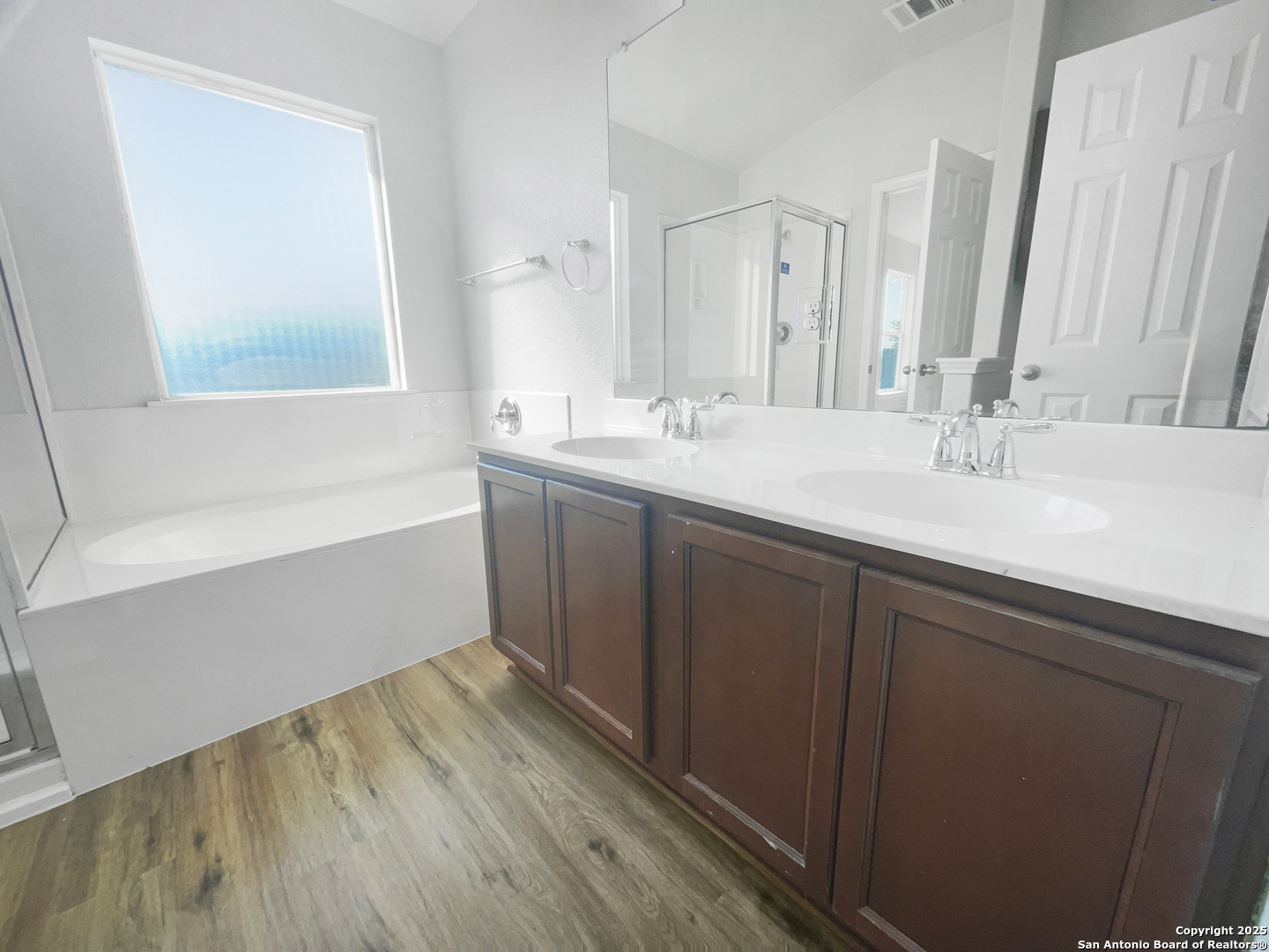 Welcome to this beautifully updated home. The interior boasts a fresh coat of neutral color paint, complemented by new flooring throughout the entire home. The kitchen is a chef's dream with an accent backsplash adding a touch of elegance. Retreat to the primary bathroom featuring double sinks, a separate tub, and shower for a spa-like experience. The exterior is just as impressive with a fenced-in backyard, perfect for privacy and a covered patio for outdoor enjoyment. This home is a must-see for those seeking a property. This home has been virtually staged to illustrate its potential.. Home comes with a 100-Day Home Warranty and a 7-Day Home Test Drive to move in 7 days early for free.